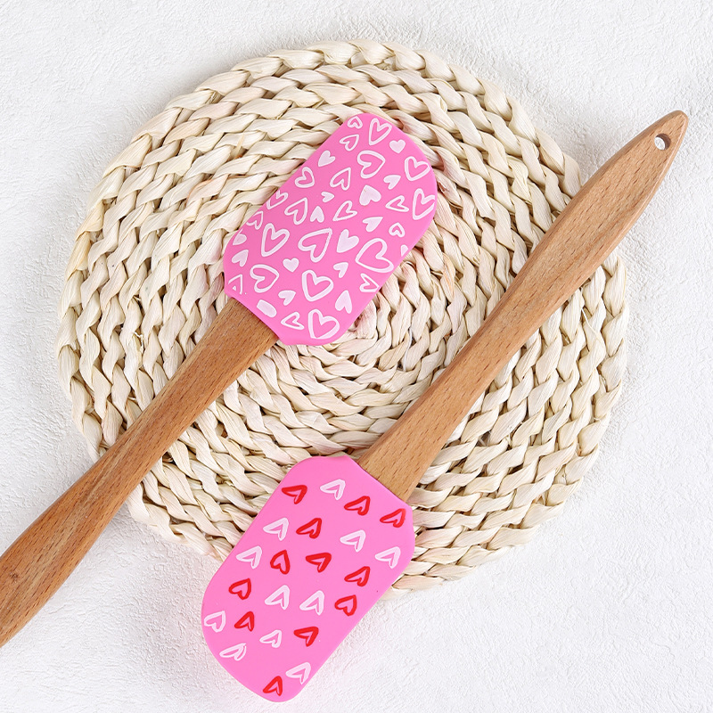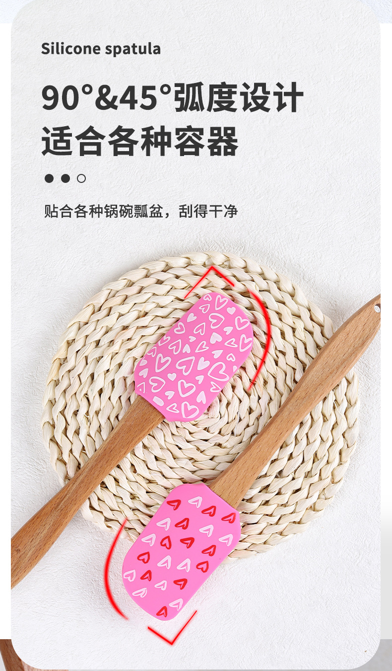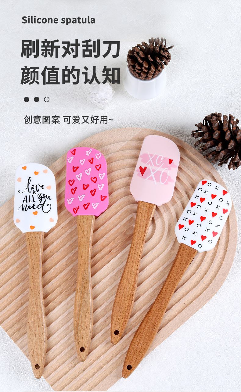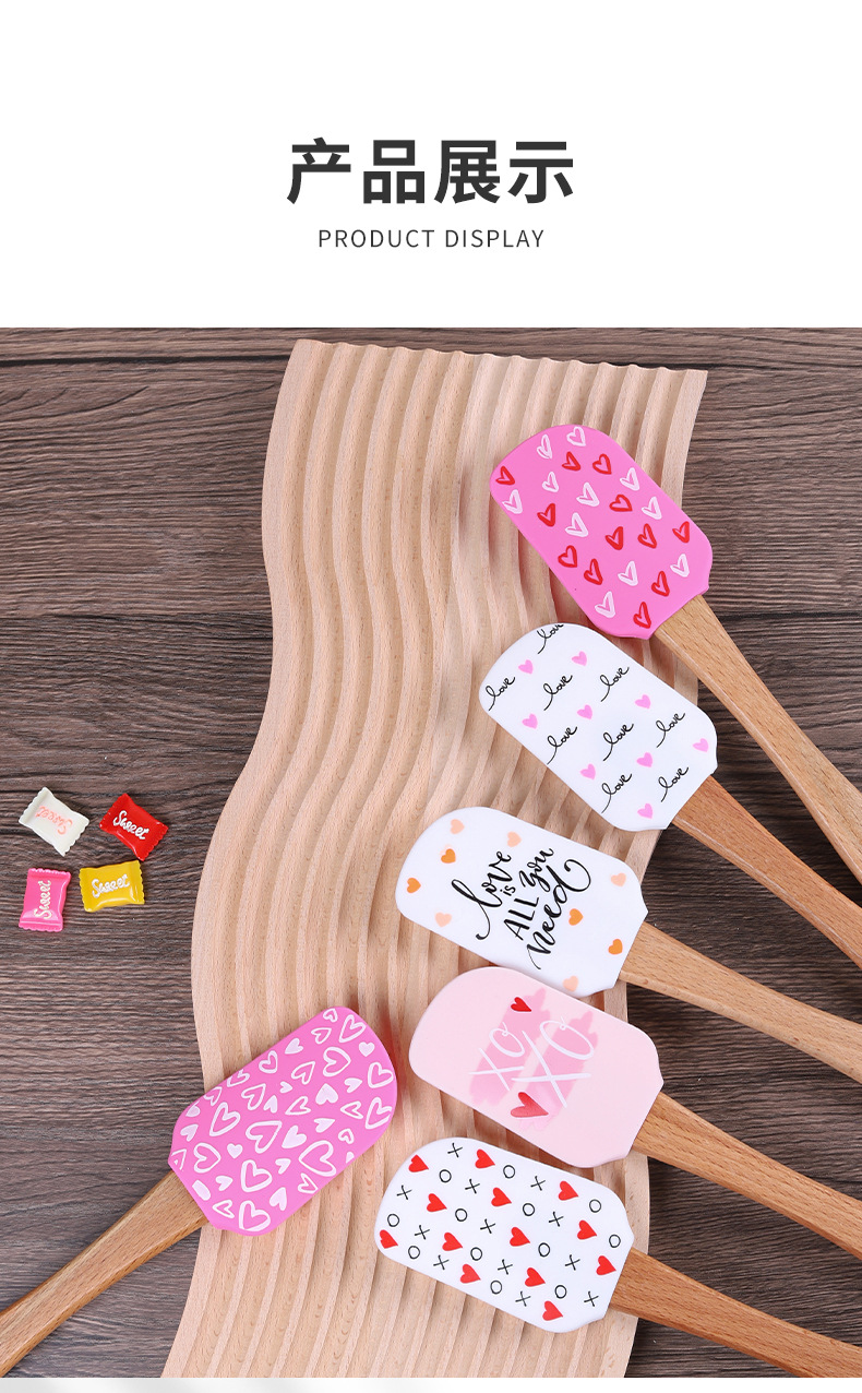 工厂现货家用烘焙硅胶奶油刮刀 粉色情人节奶油蛋糕抹刀烘焙刮刀