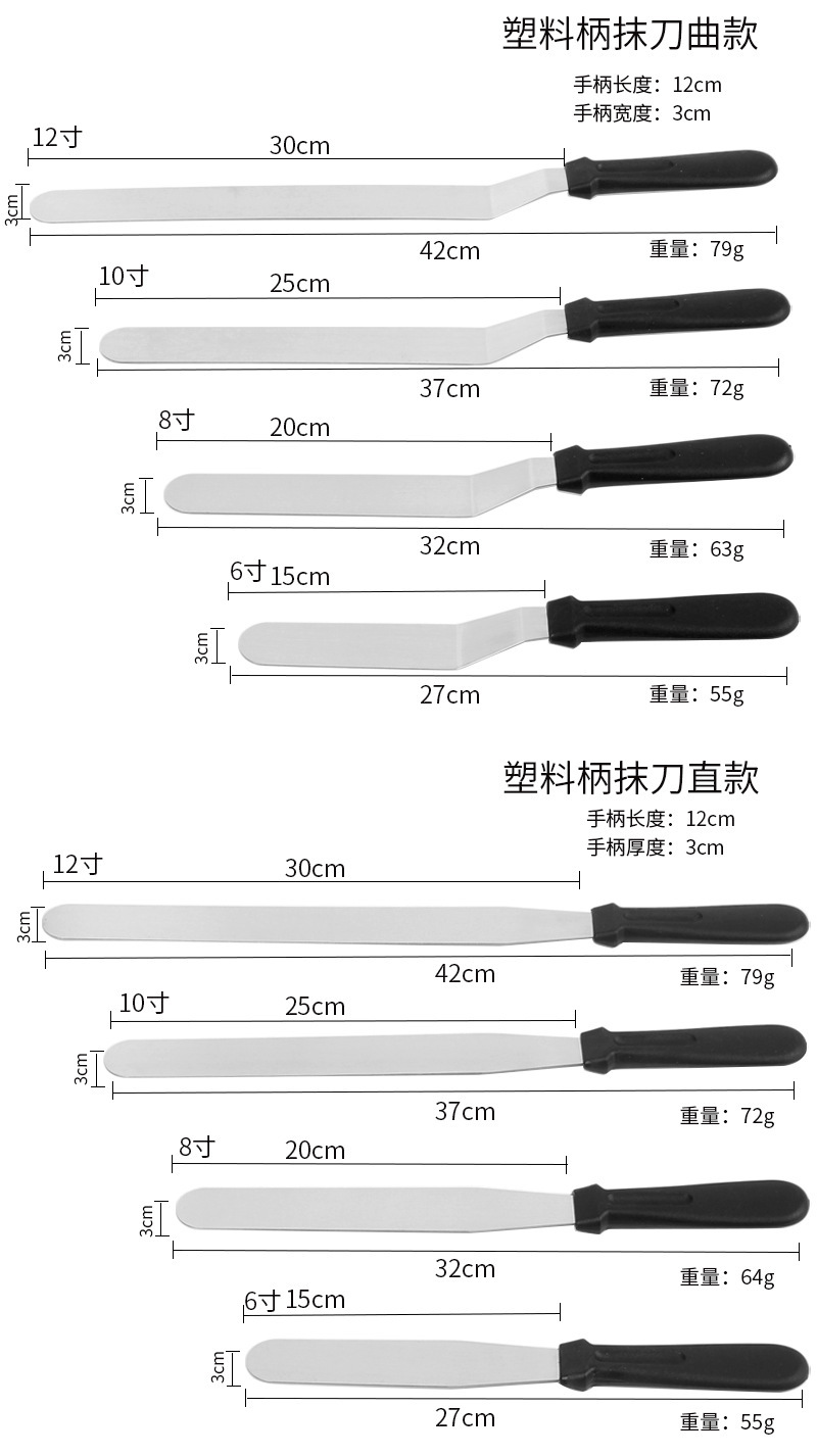 烘焙小工具不锈钢蛋糕奶油抹刀 7MM 6/8/10寸蛋糕裱花曲柄刮刀脱