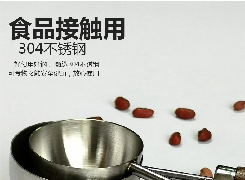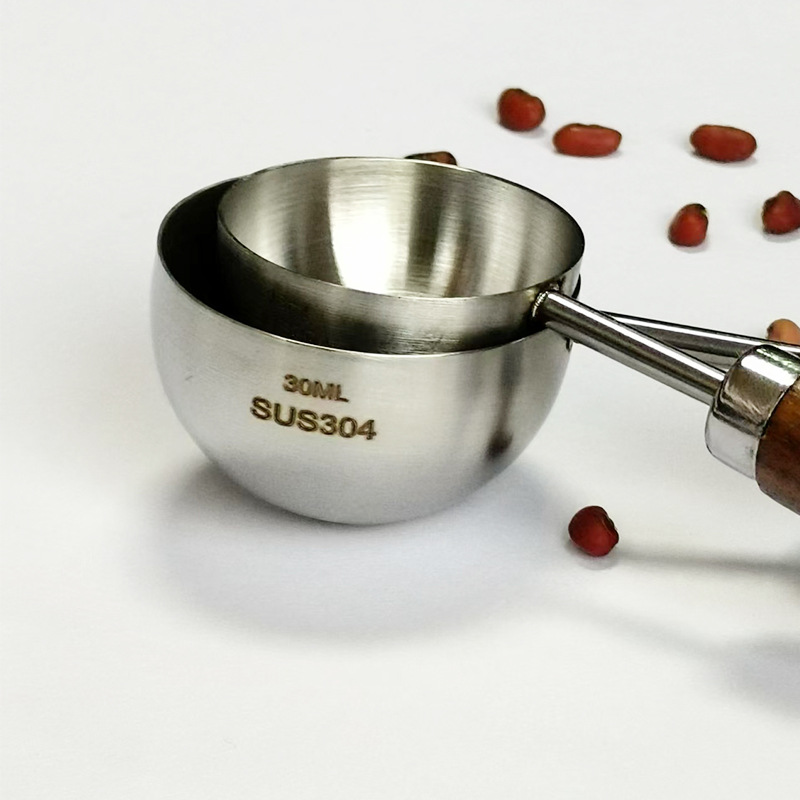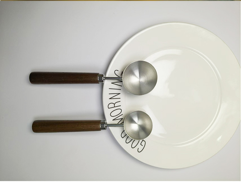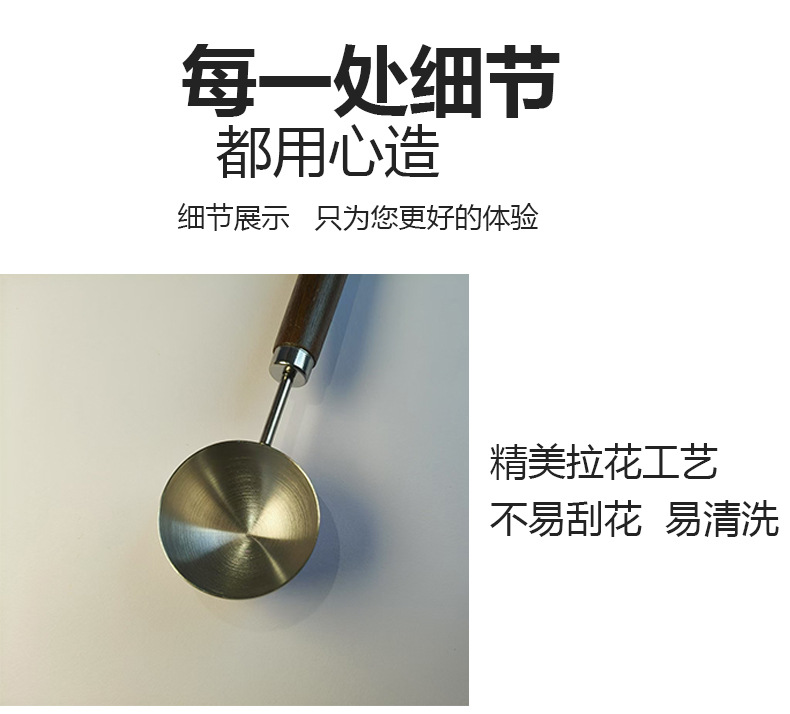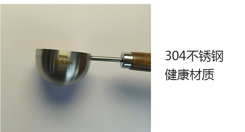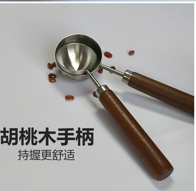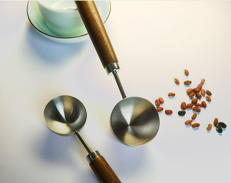 304不锈钢圆头咖啡量勺厨房烘焙工具胡桃木手柄咖啡豆奶粉量匙勺