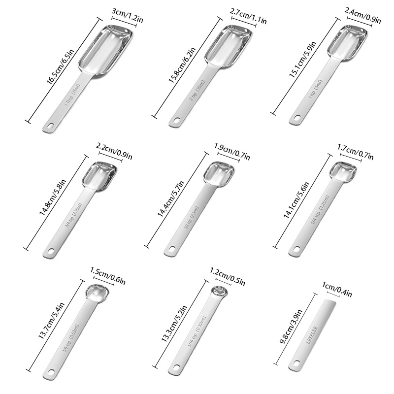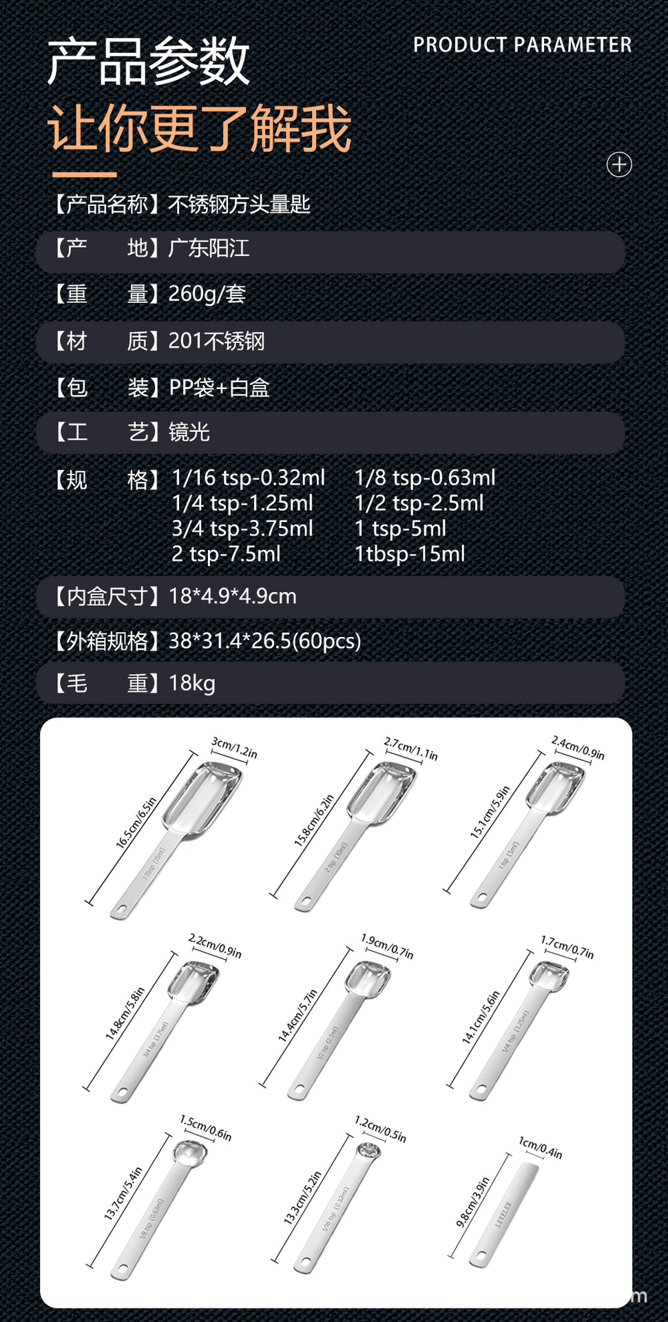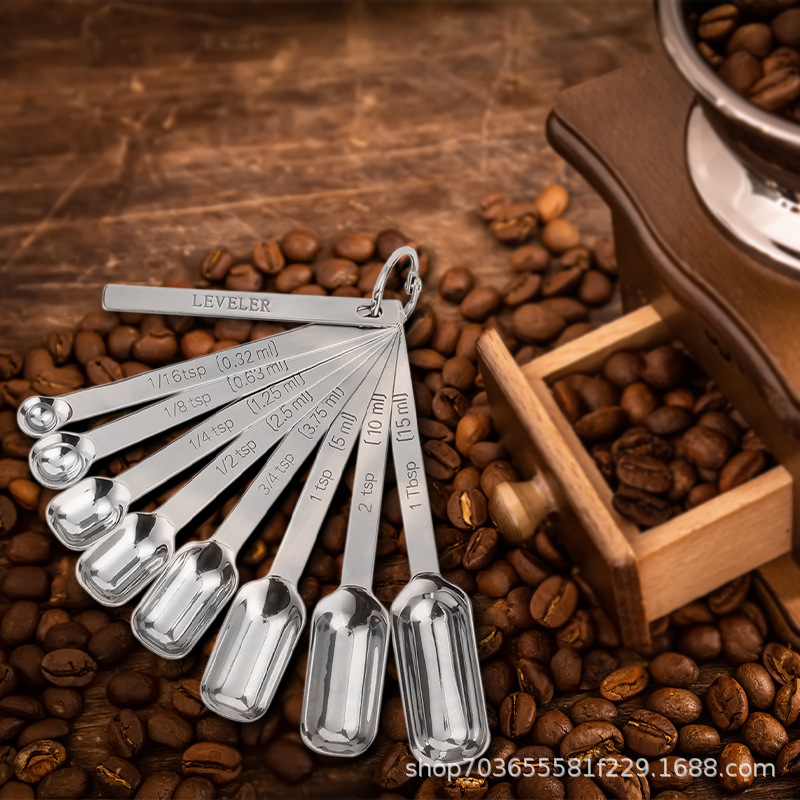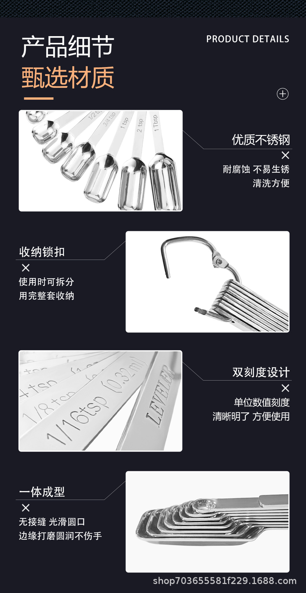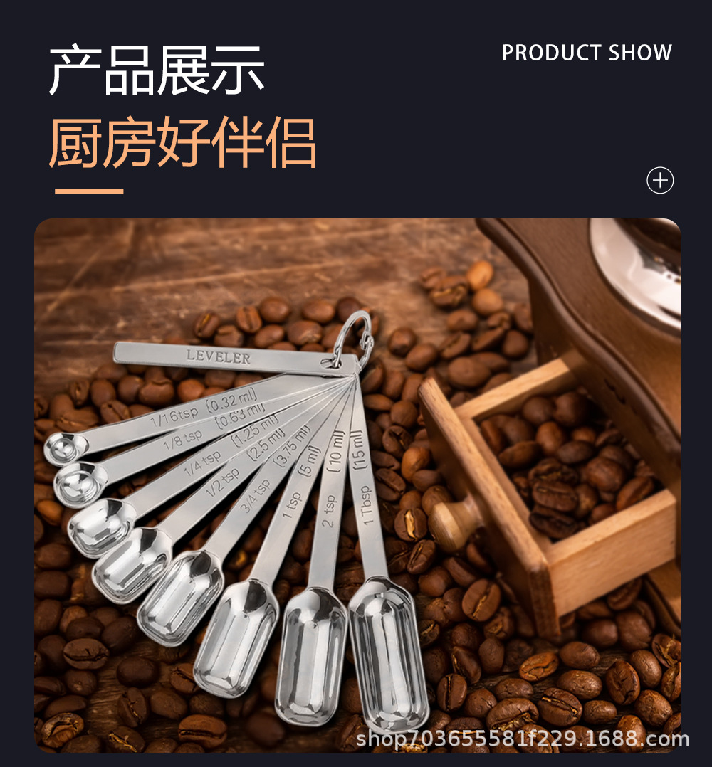 不锈钢量勺9件套带刻度调平器厨房调料量匙烘焙工具现货量勺量匙