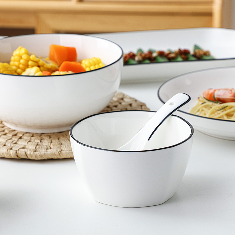 欧式家用简约小清新高颜值陶瓷碗盘碟勺筷家庭一人食组合餐具套装