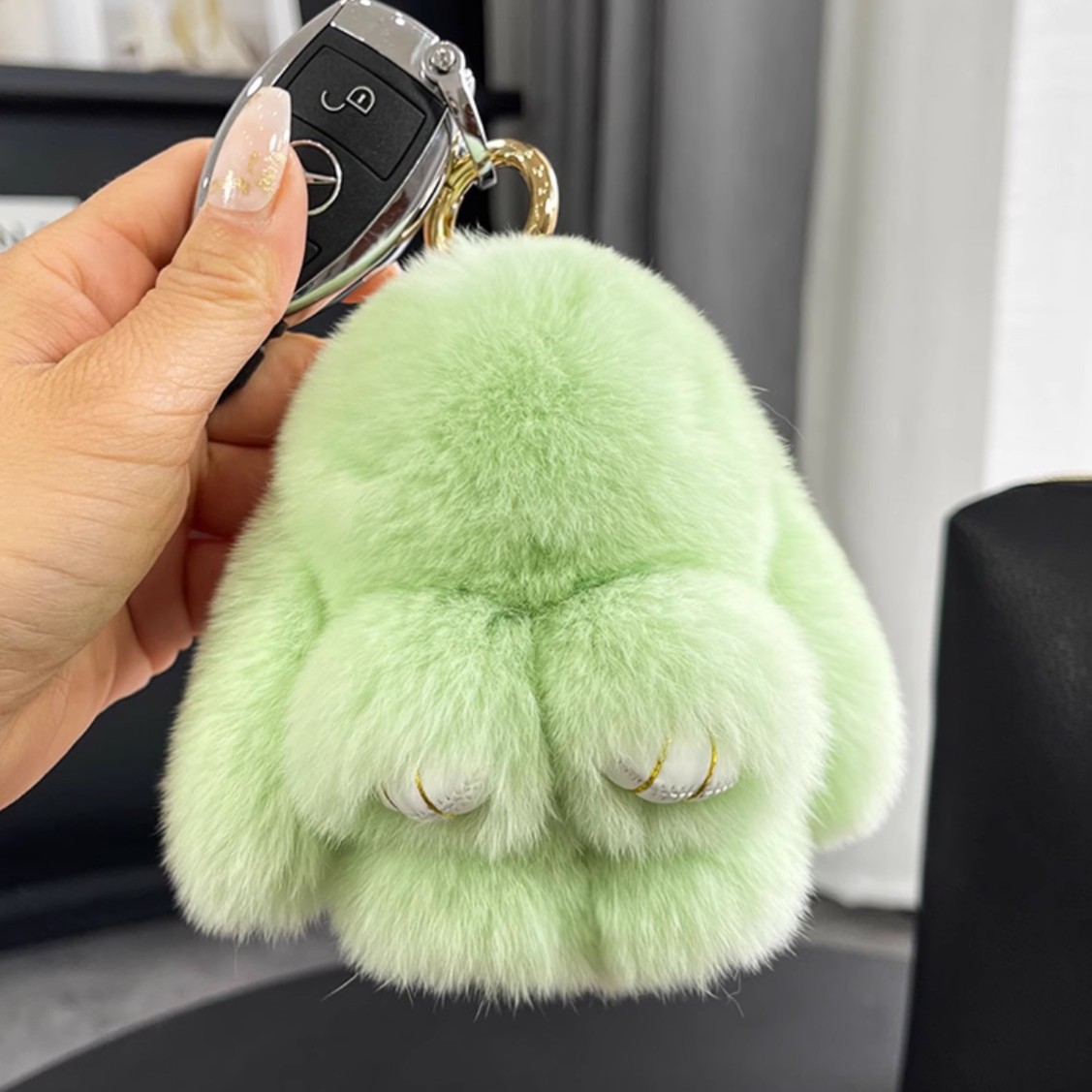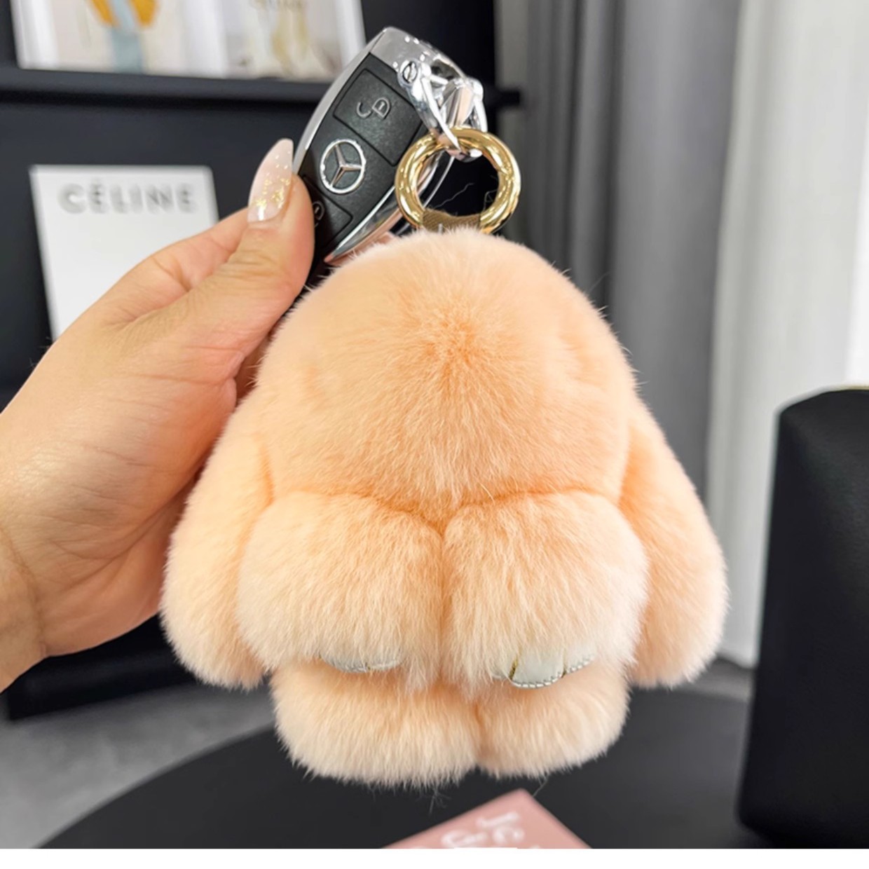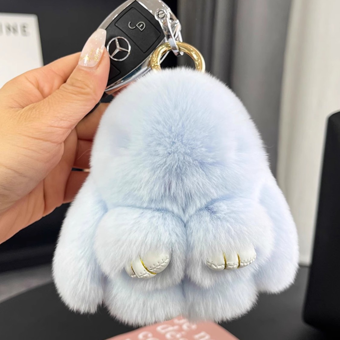 精品真皮真獭兔毛绒小兔子公仔手机挂件包包挂饰钥匙扣玩偶车挂坠