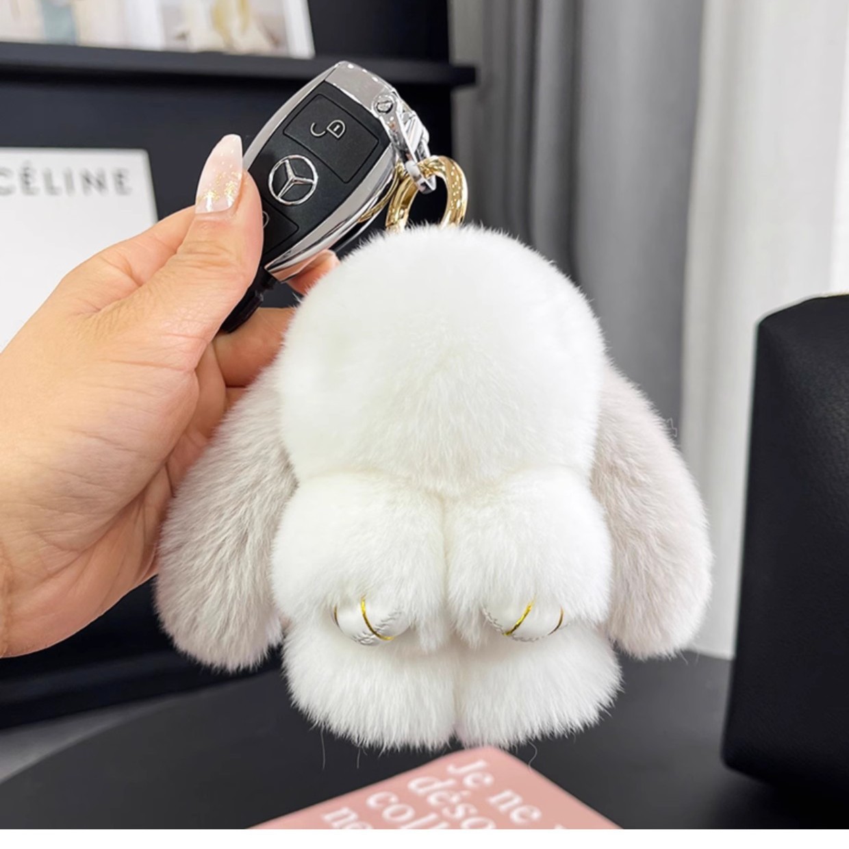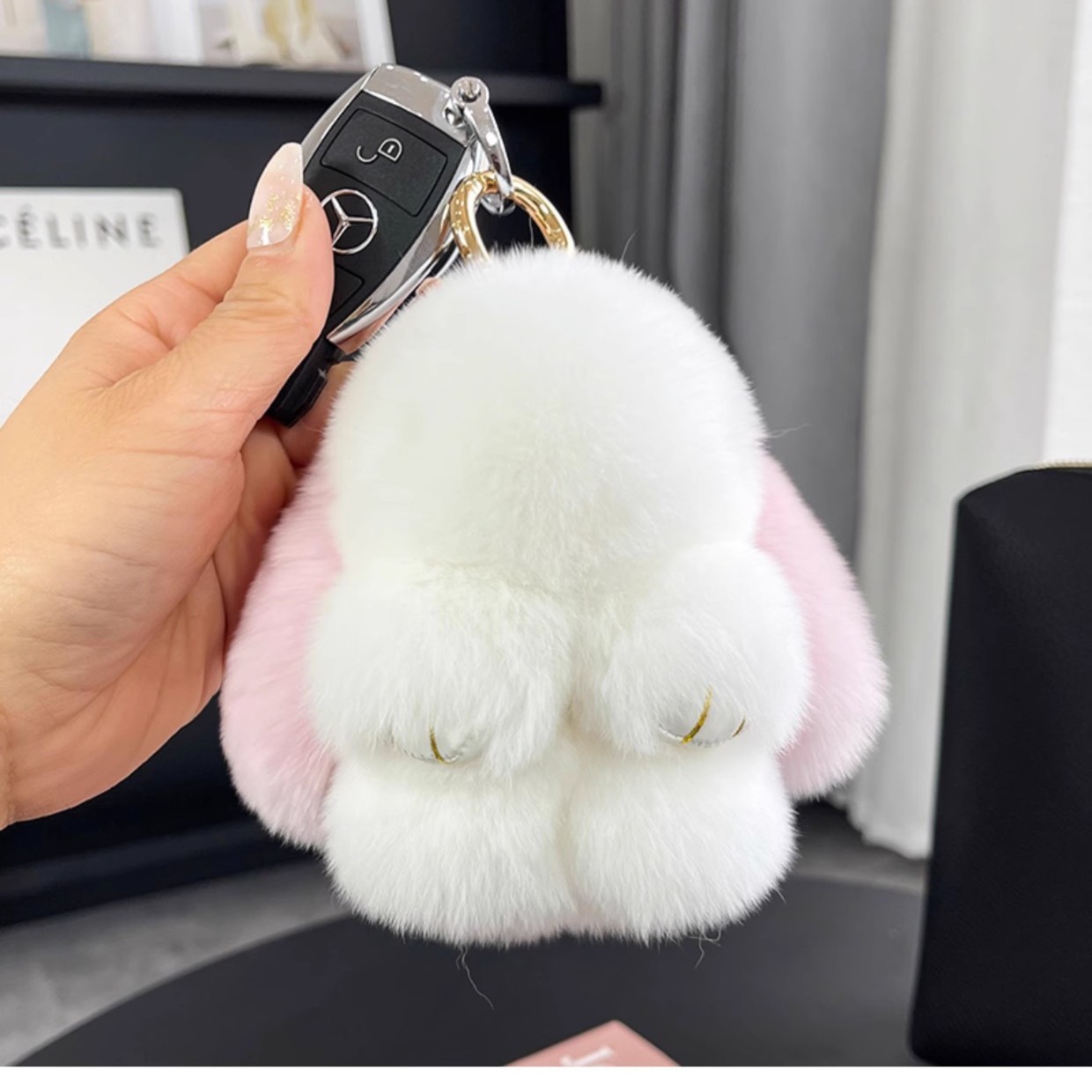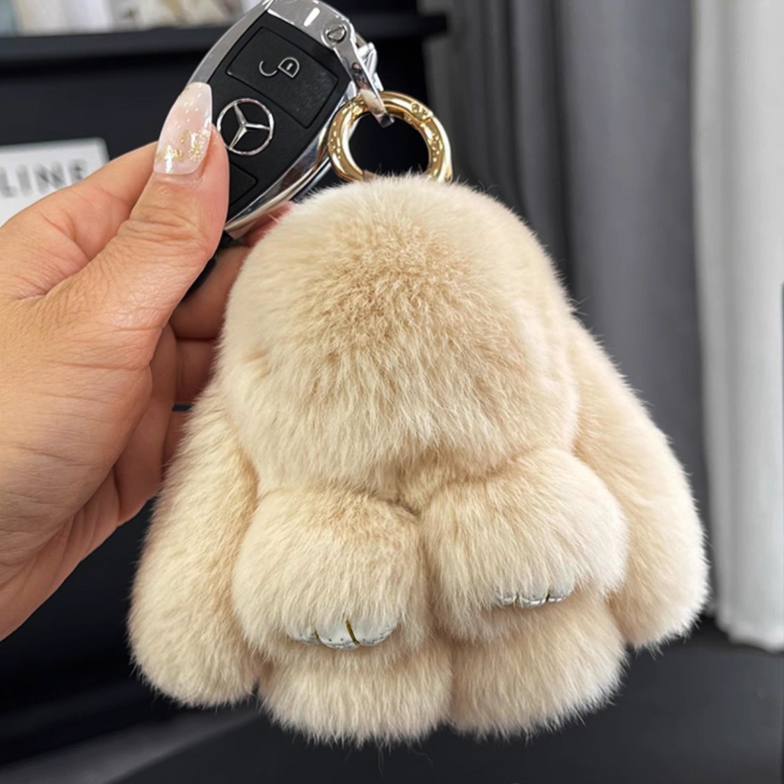 精品真皮真獭兔毛绒小兔子公仔手机挂件包包挂饰钥匙扣玩偶车挂坠