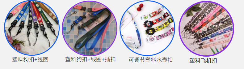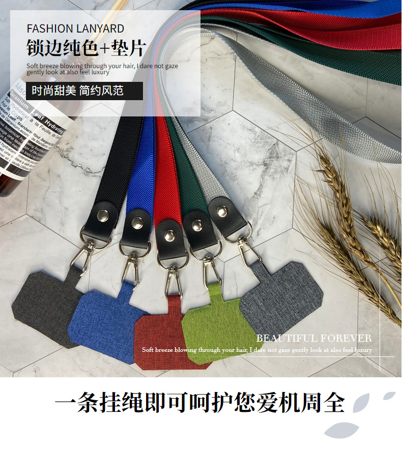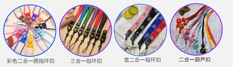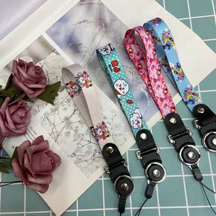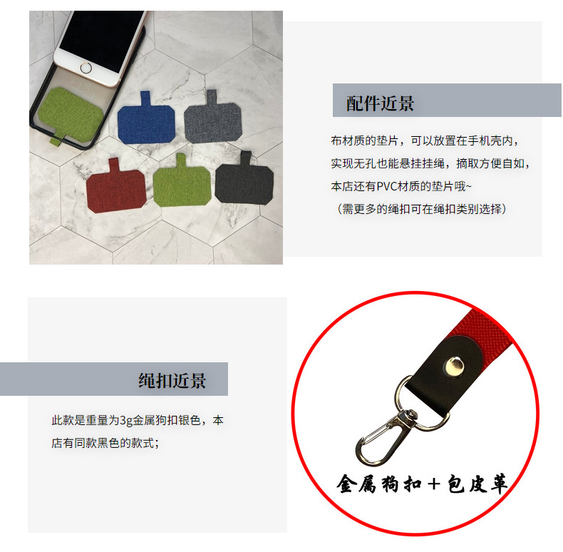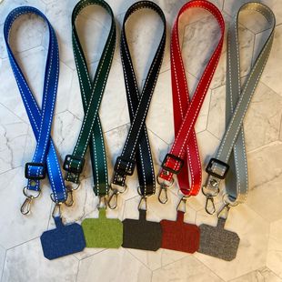 厂家批发手机壳彩色挂脖绳狗扣pu皮革挂脖绳扣可拆卸长绳