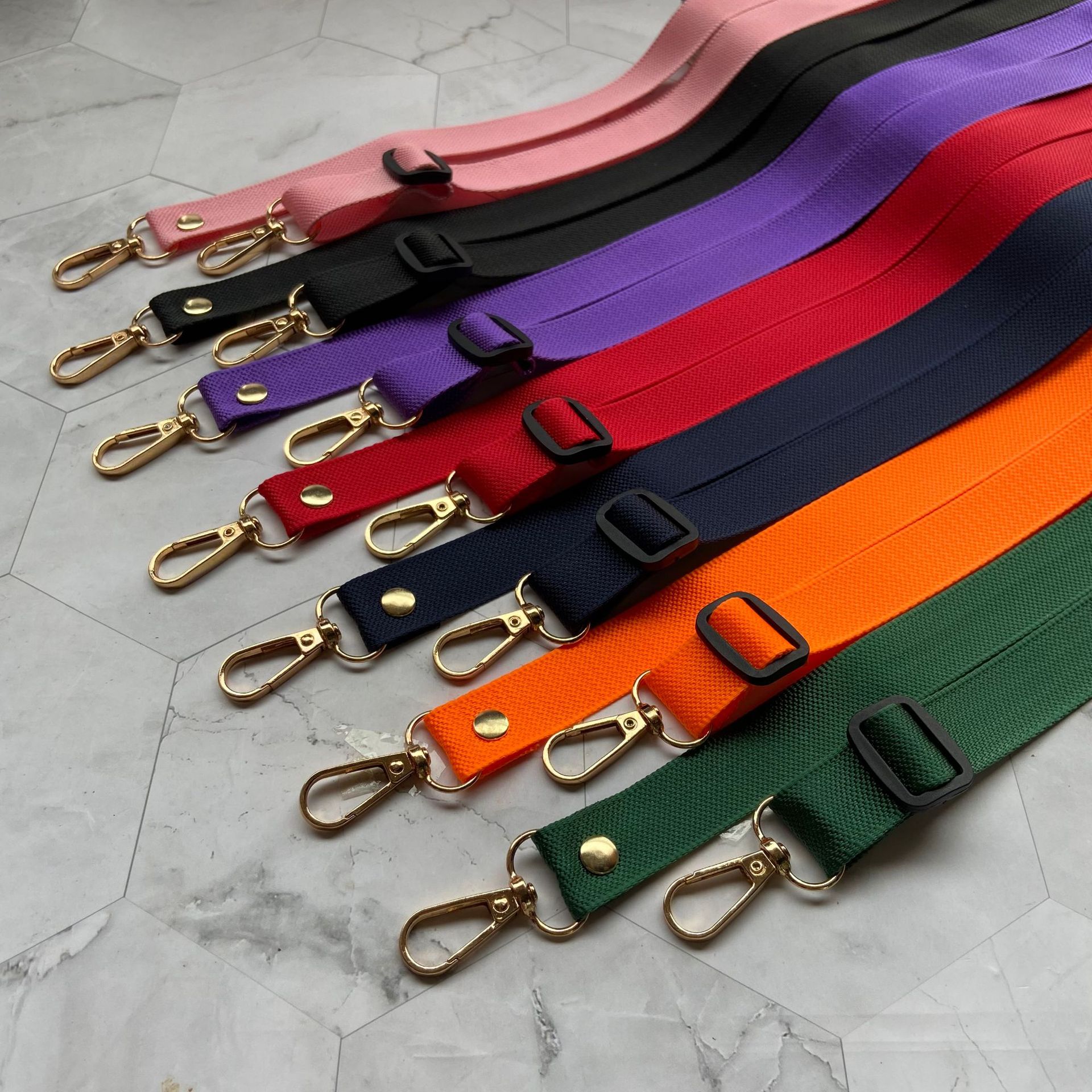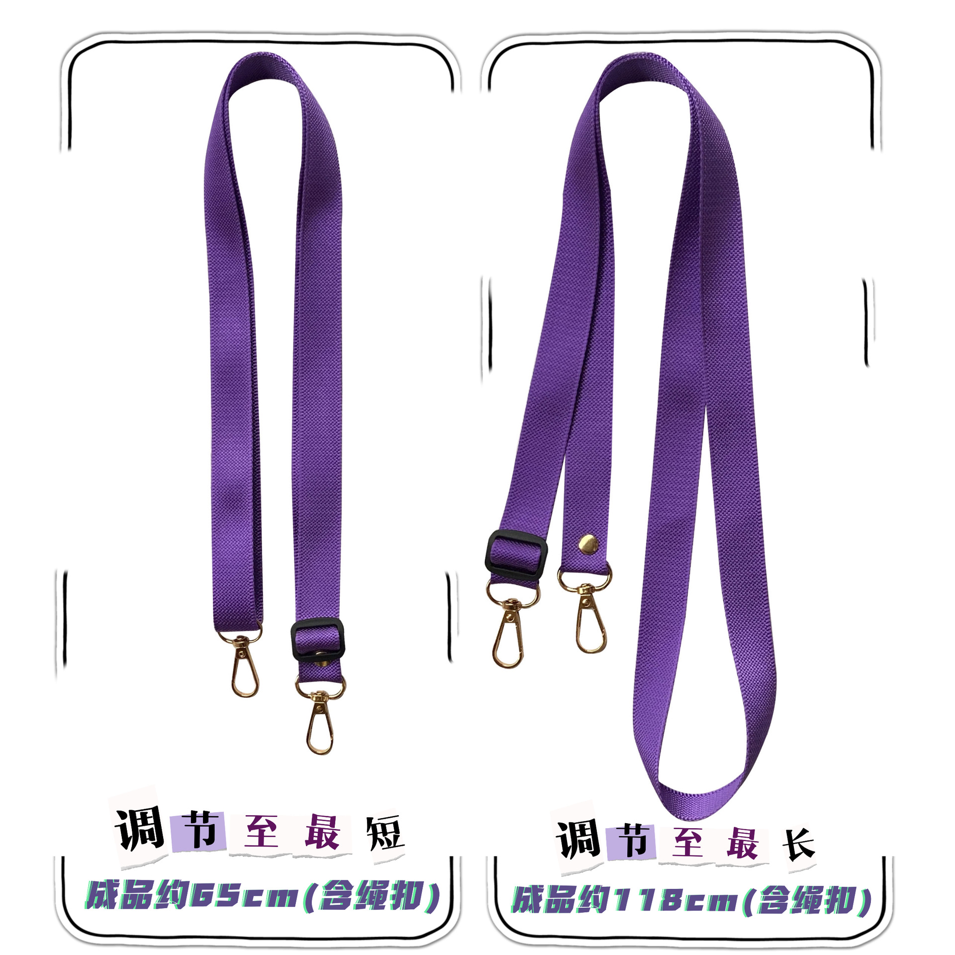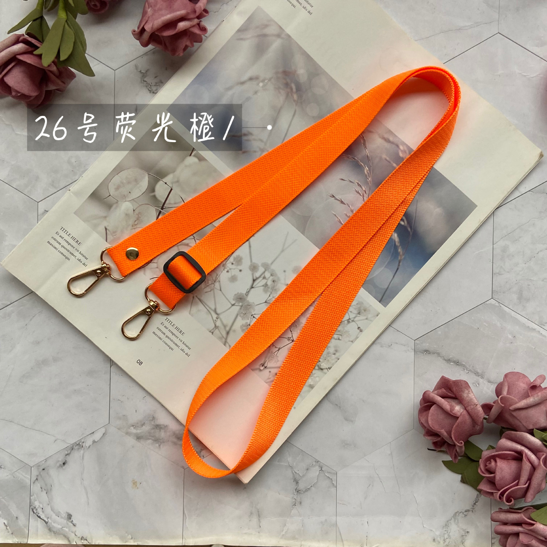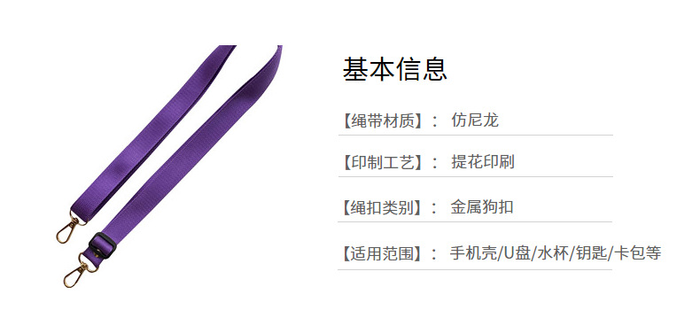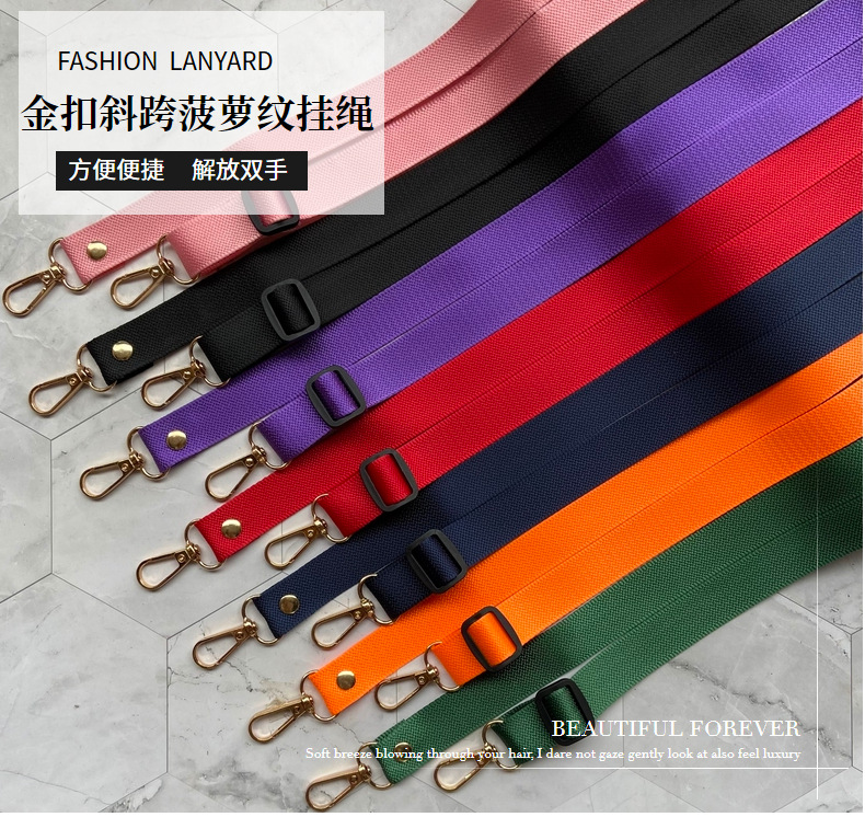尼龙菠萝纹纯色挂带斜跨式绳 双头金色板扣可调节手机挂绳长度