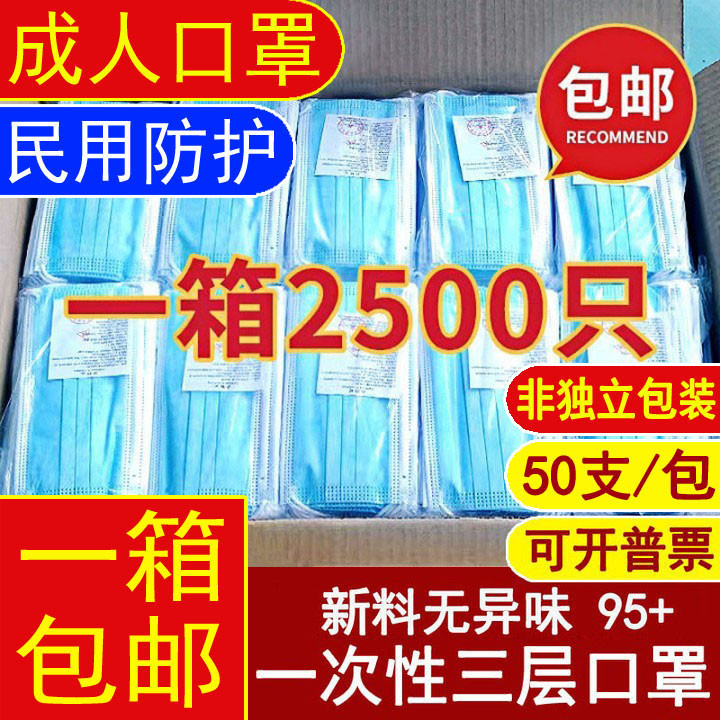一次性三层加厚成人蓝黑白色防护防粉尘包邮独立包装厂家批发口罩