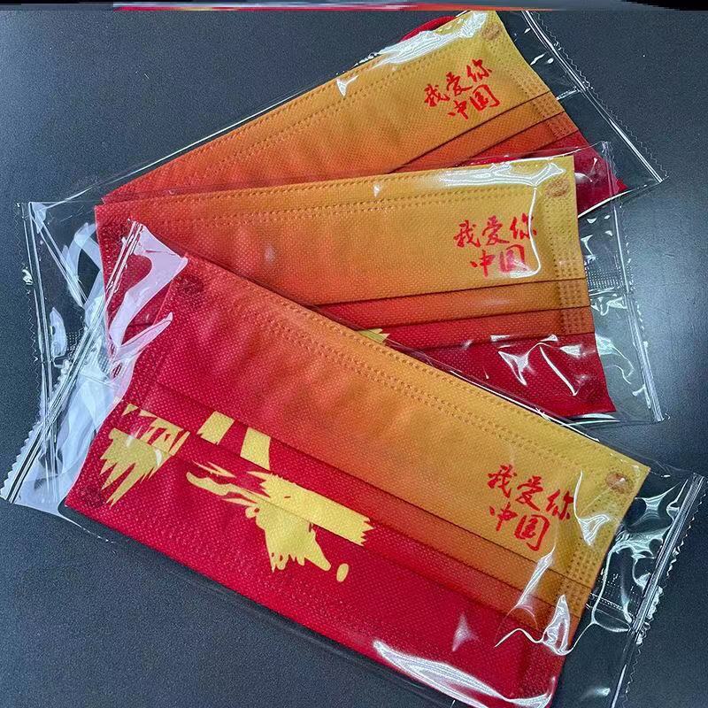 口罩一次性独立装成人儿童三层加厚中国红独立包装工厂店透气防尘