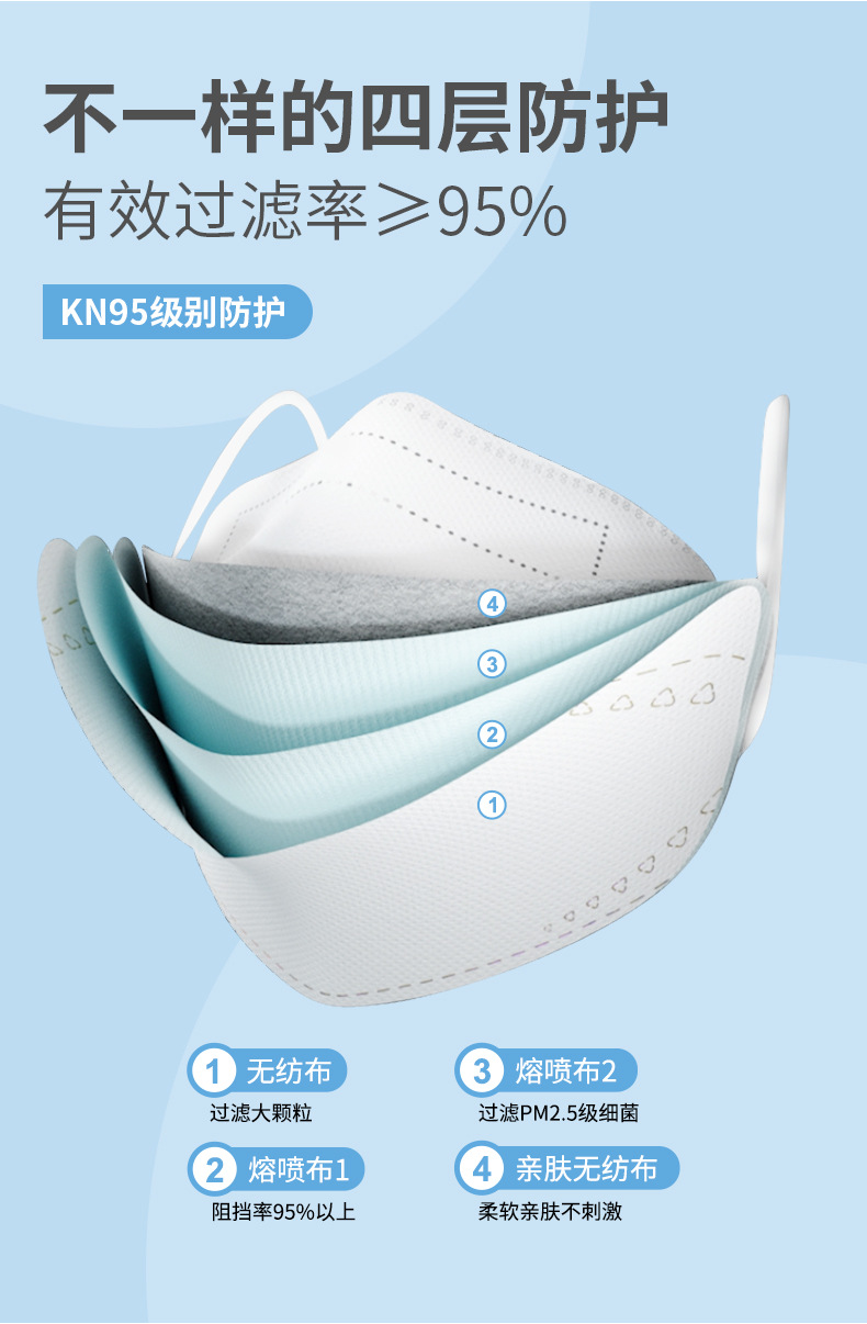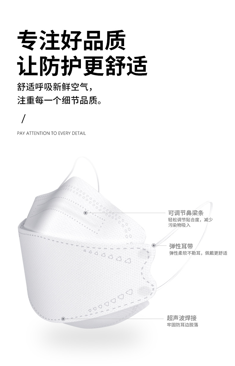 工厂柳叶形KF95成人face mask网红大人鱼形透气kn94立体口罩批发