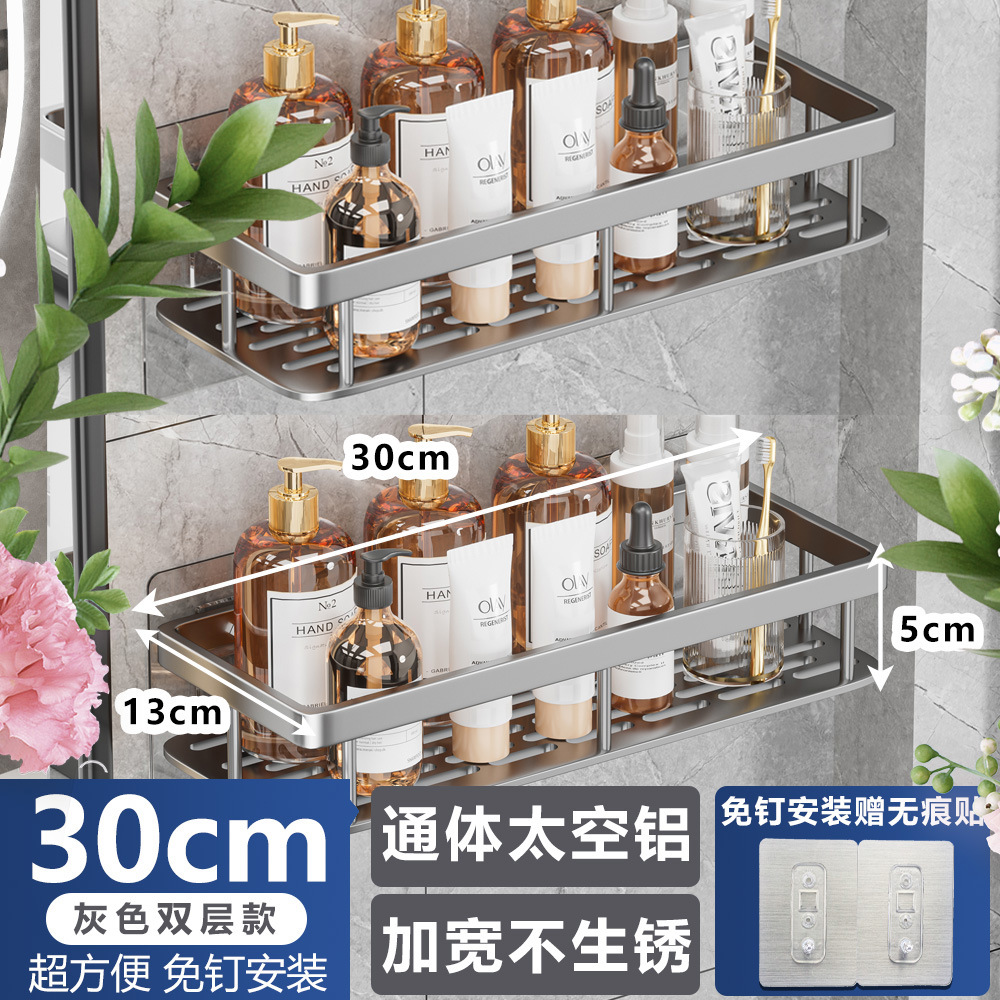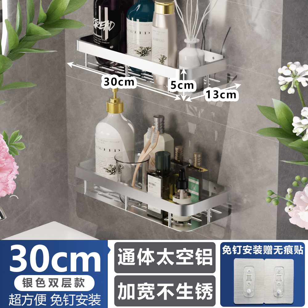 浴室置物架卫生间免打孔收纳架太空铝壁挂式四方篮厕所洗漱台架子