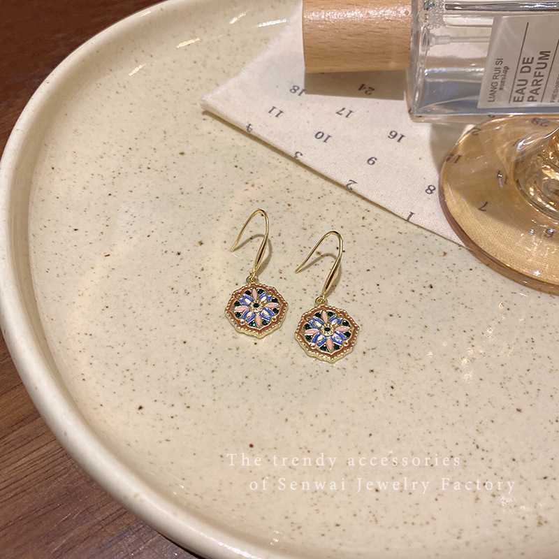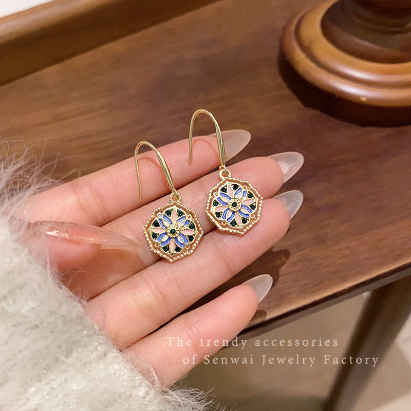 中古风金色莫奈花朵耳环女独特小众气质耳坠2025新款高级感耳饰品