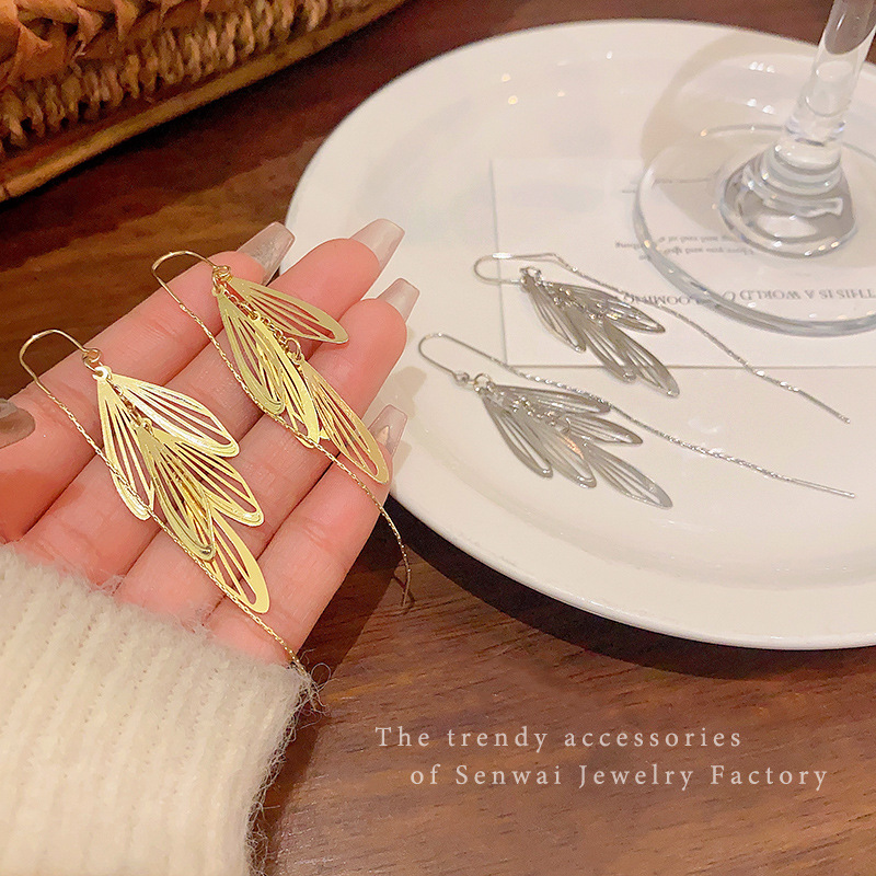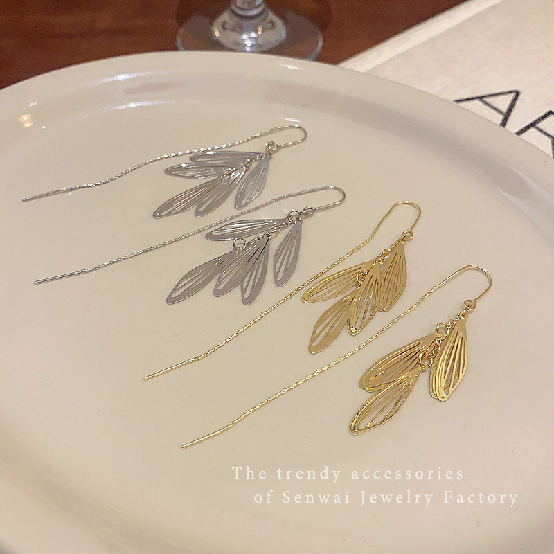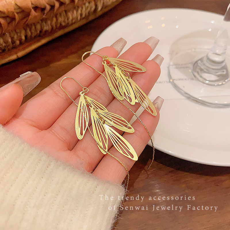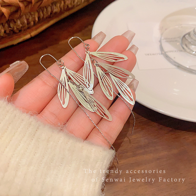 复古超仙翅膀流苏耳线女设计感小众百搭长款耳环方圆脸显瘦耳饰品