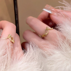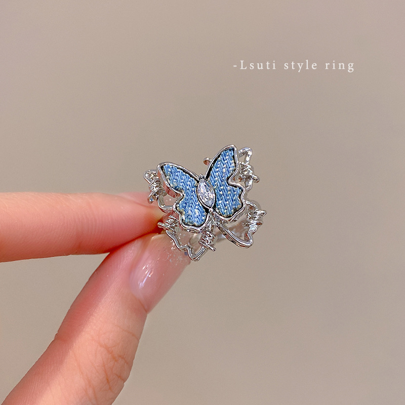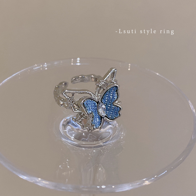 牛仔蓝蝴蝶开口戒指女生小众设计感甜酷风食指戒个性创意指环批发