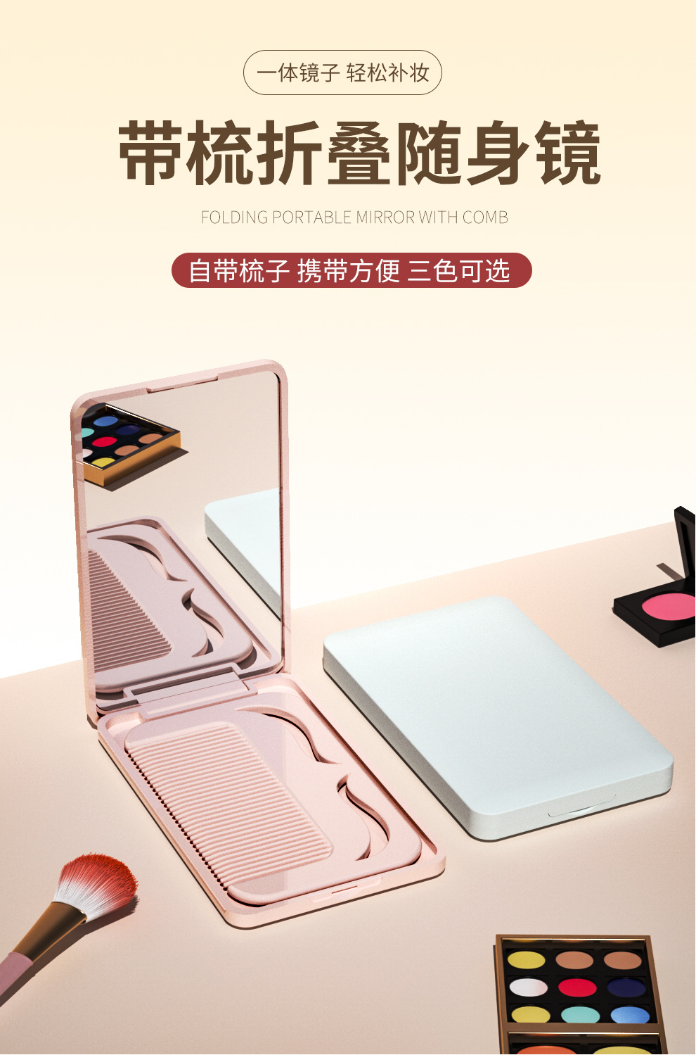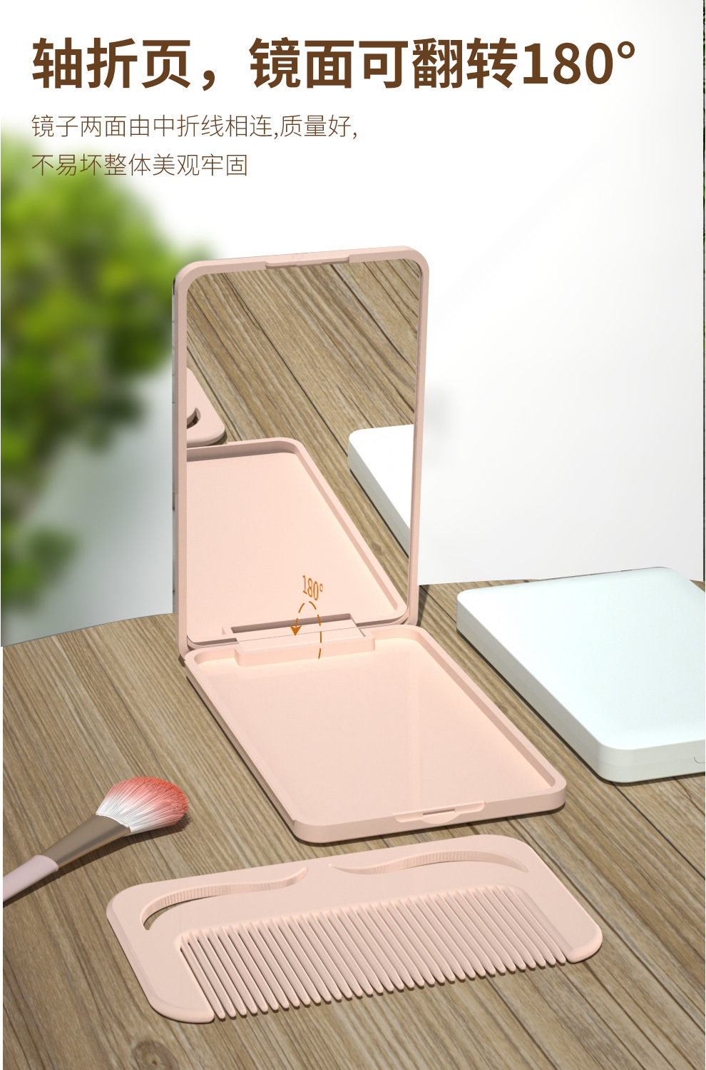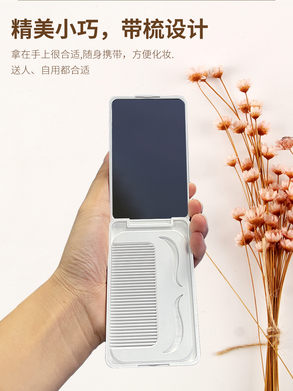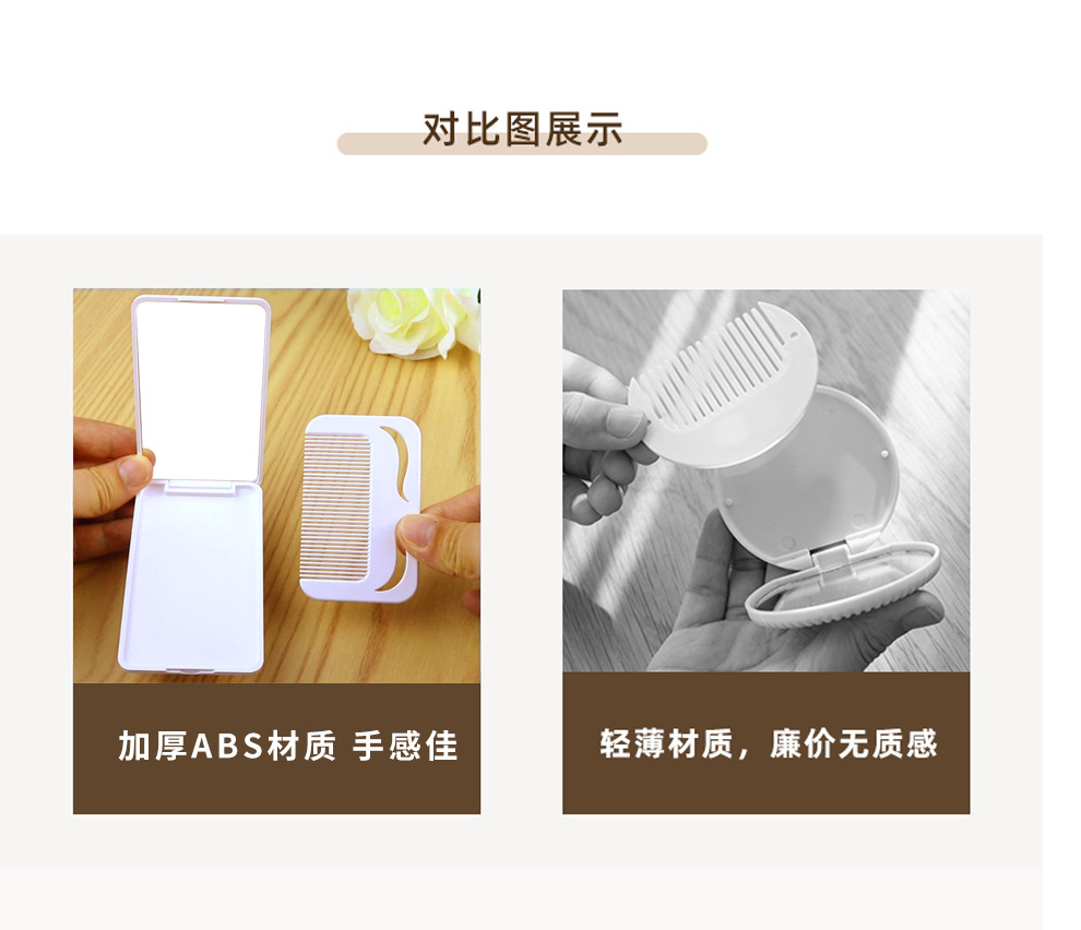 便携折叠化妆镜带梳子小镜子随身迷你手持镜子高级感定制跨境批发