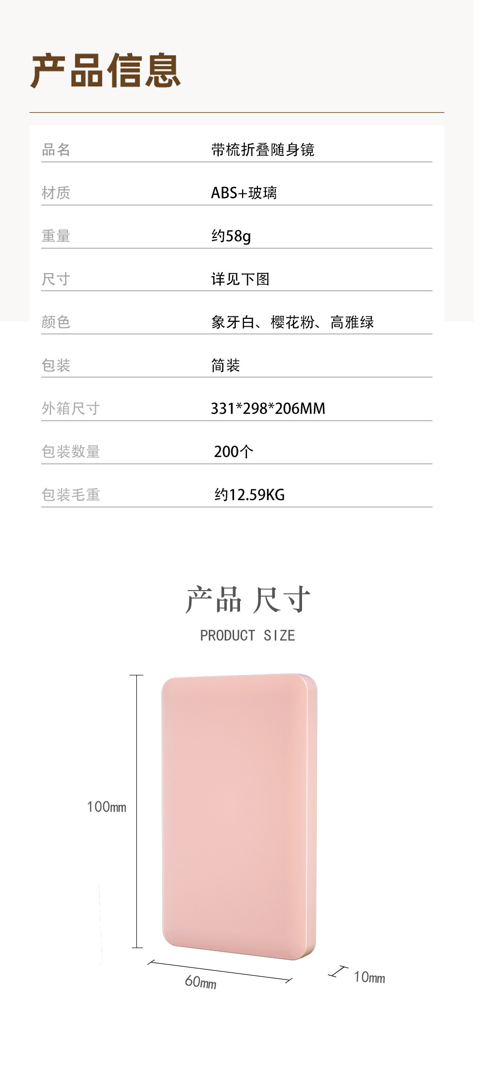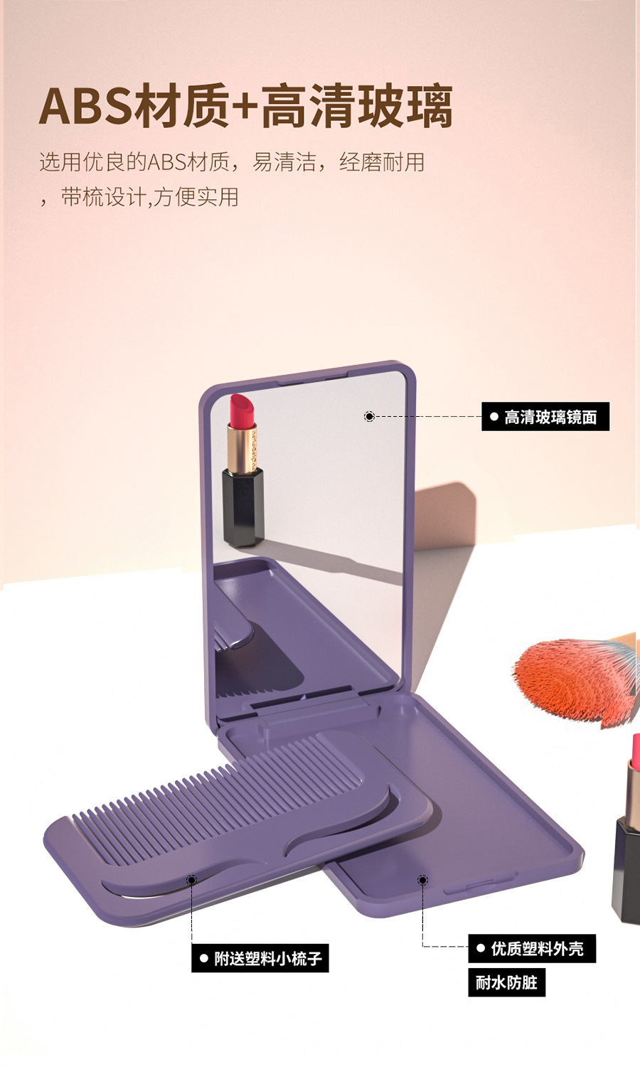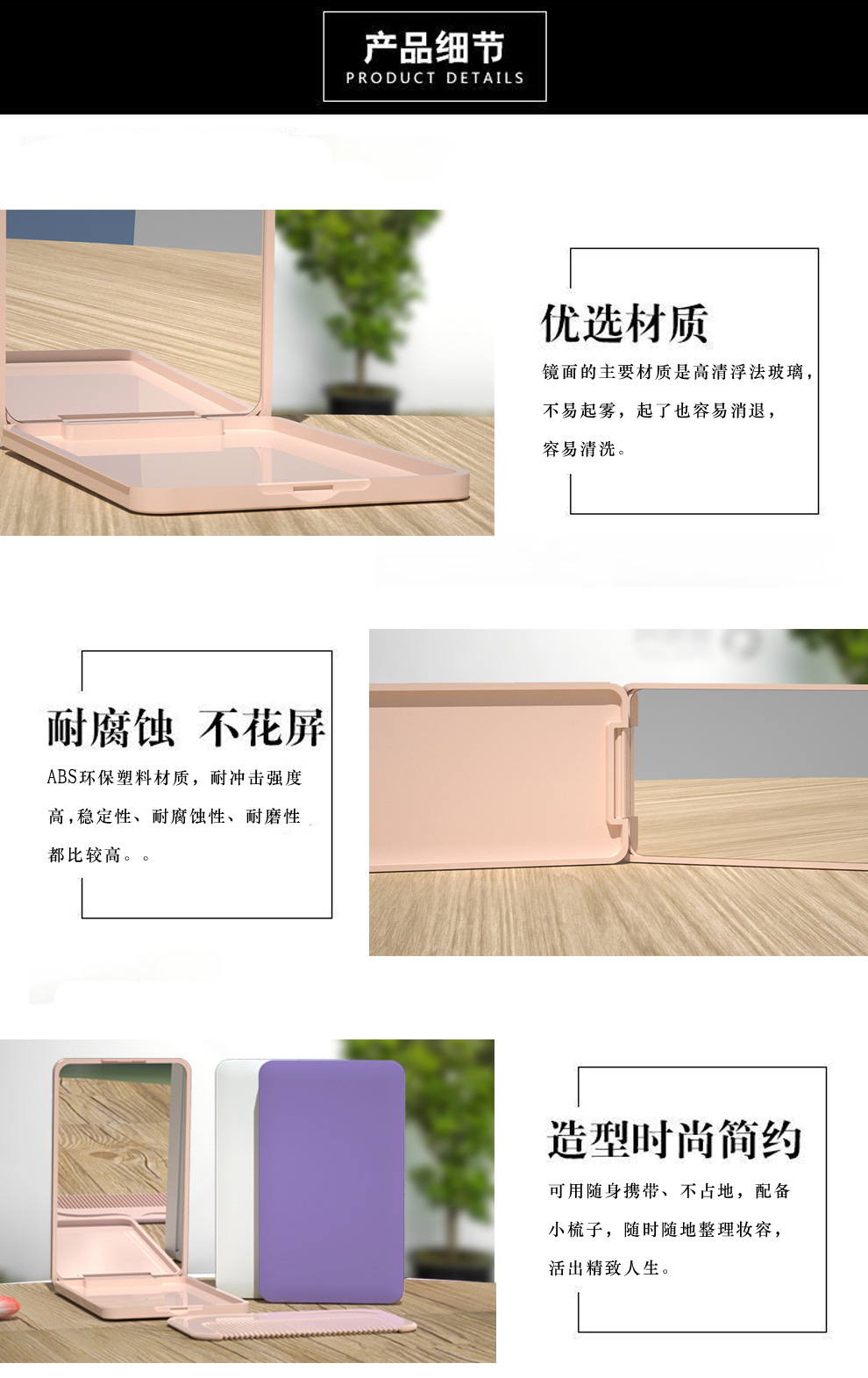 便携折叠化妆镜带梳子小镜子随身迷你手持镜子高级感定制跨境批发