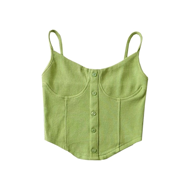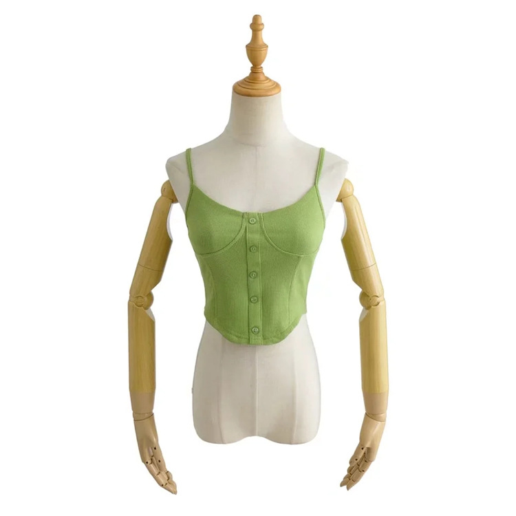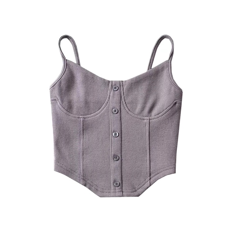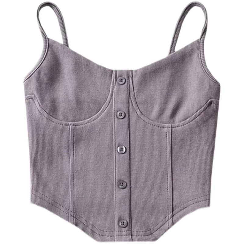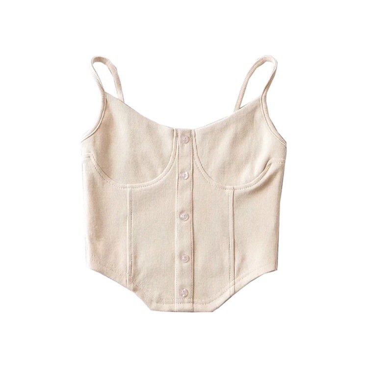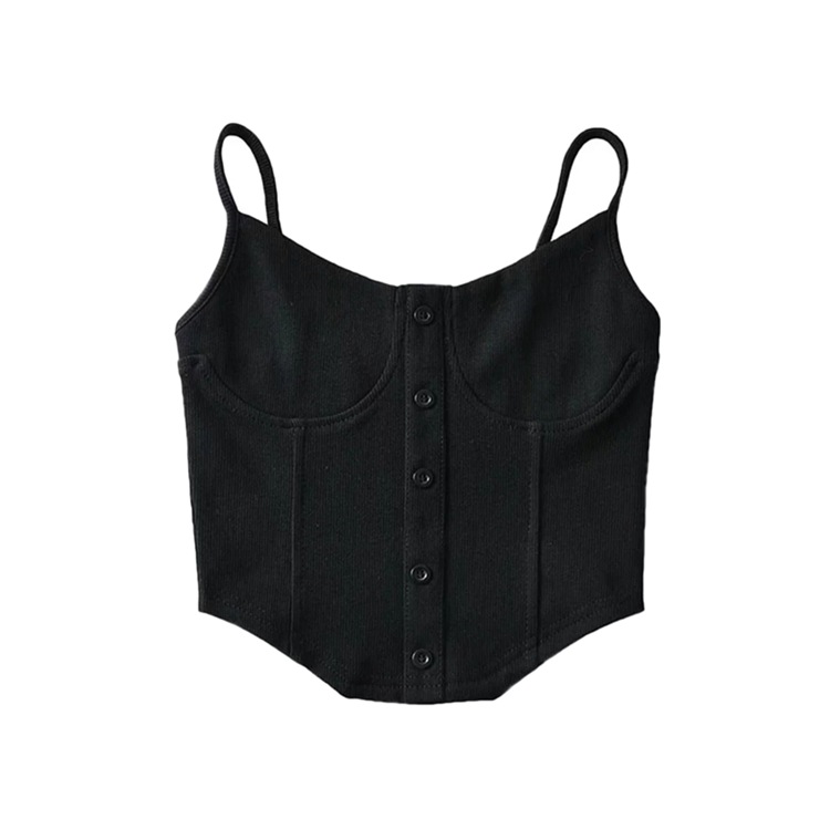 法式少女胸贴鱼骨单排纽扣装饰下摆不对称修身打底上衣吊带背心女