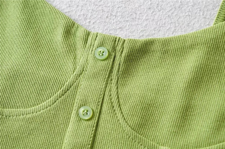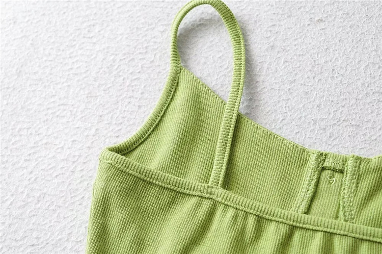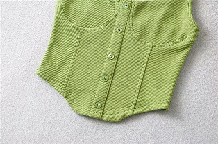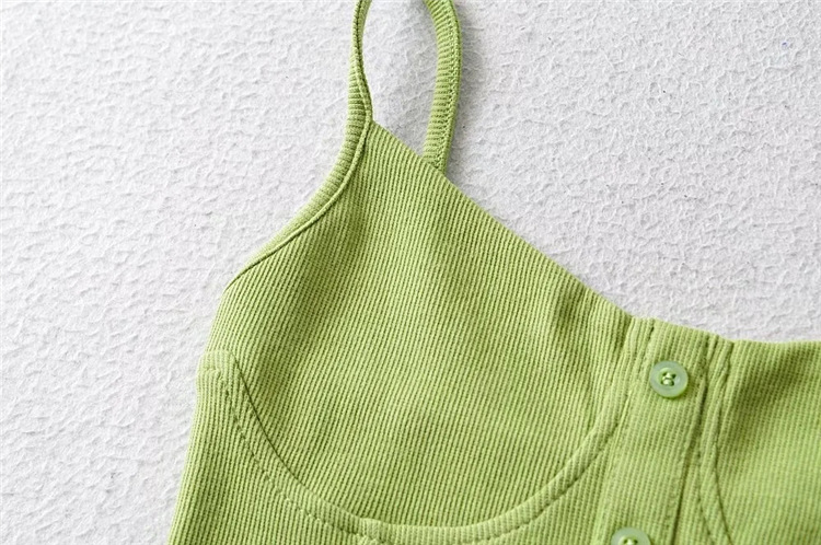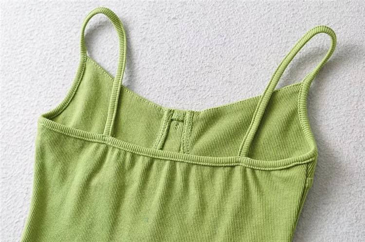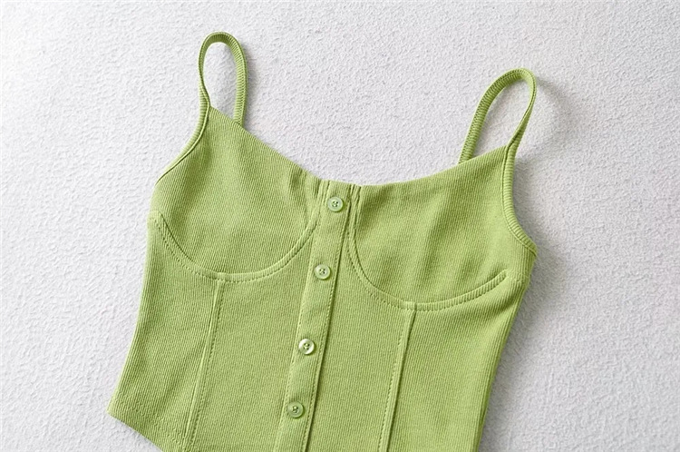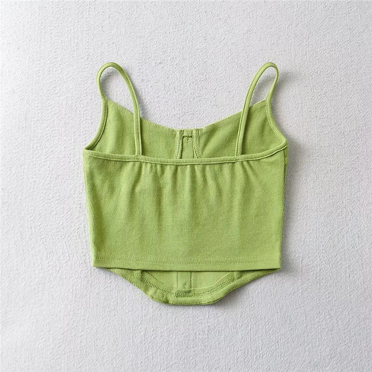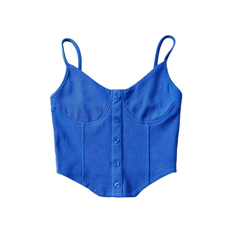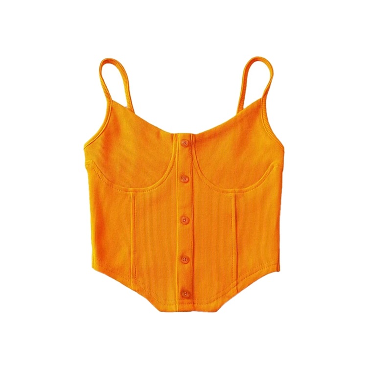 法式少女胸贴鱼骨单排纽扣装饰下摆不对称修身打底上衣吊带背心女