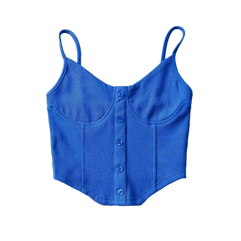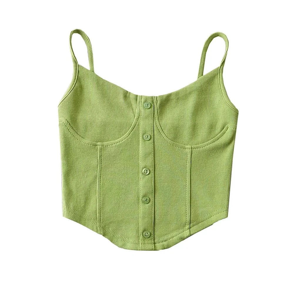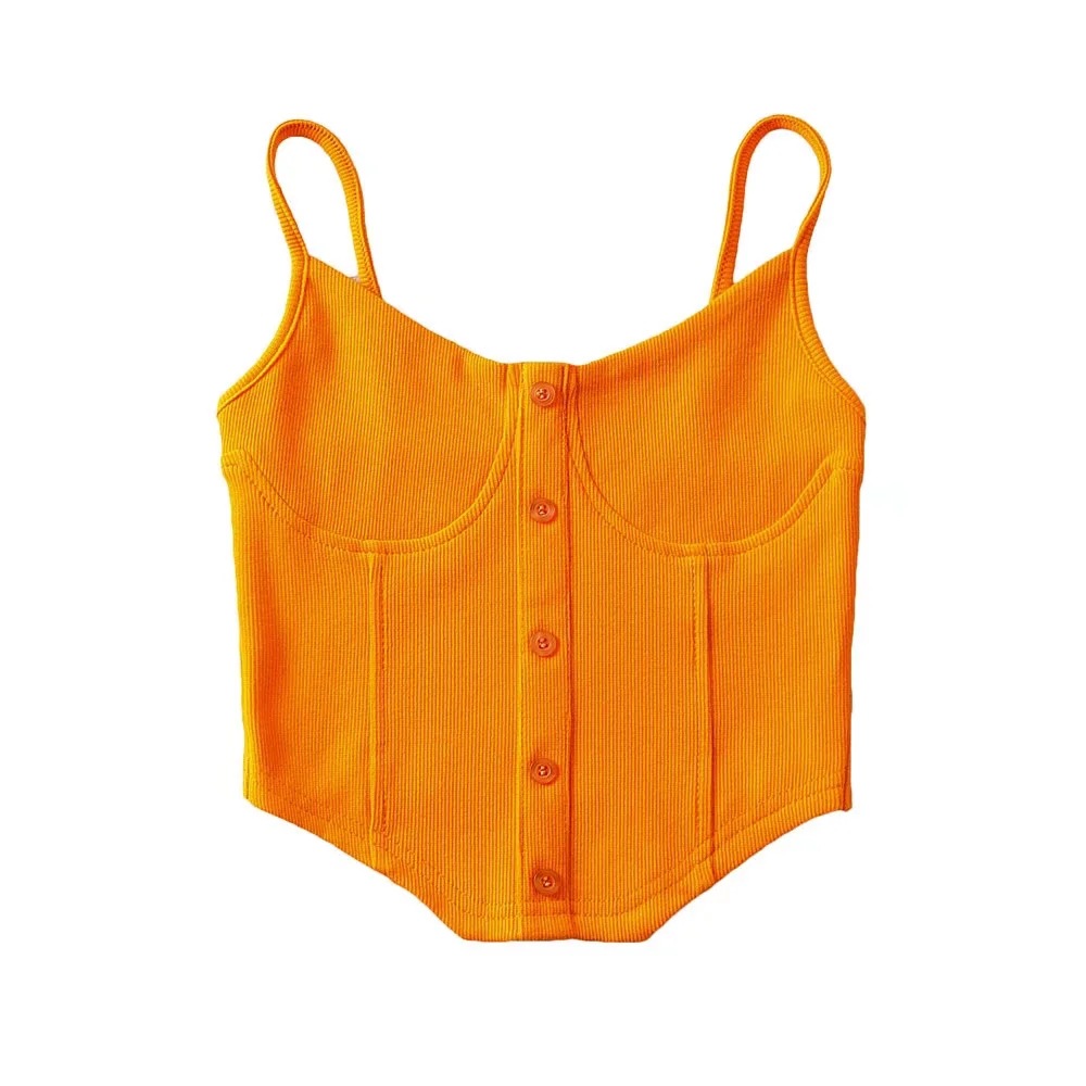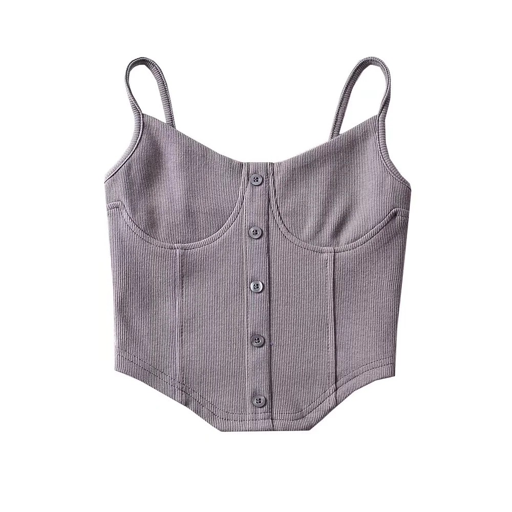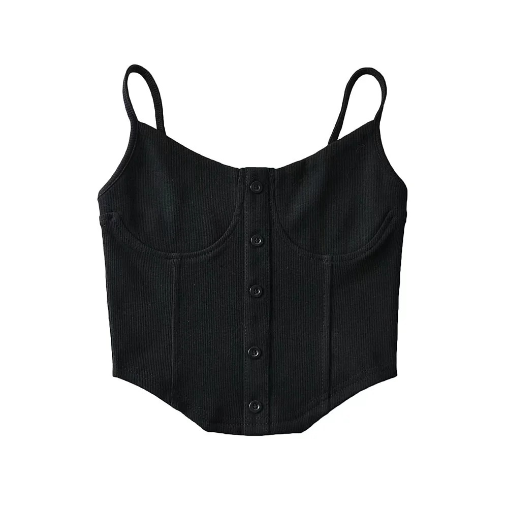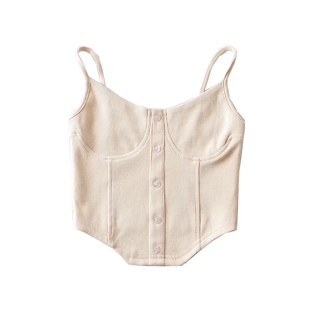 美式博主街拍性感胸贴鱼骨式纽扣吊带上衣女2022春夏新款外穿背心
