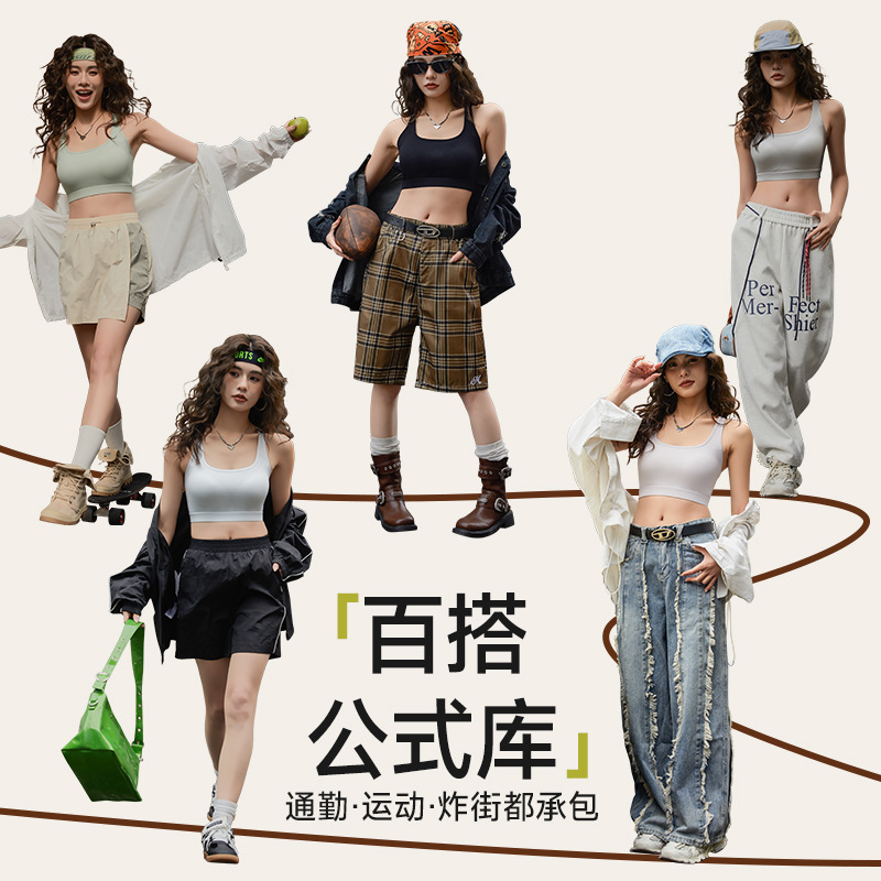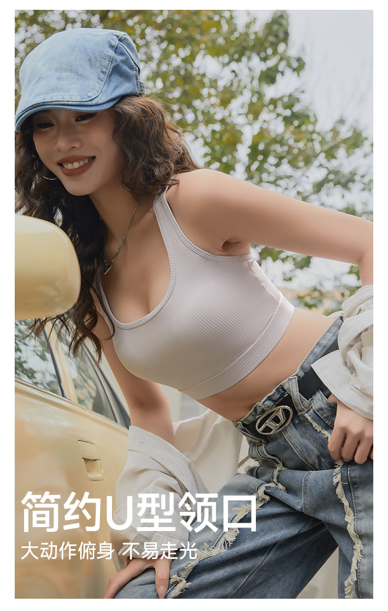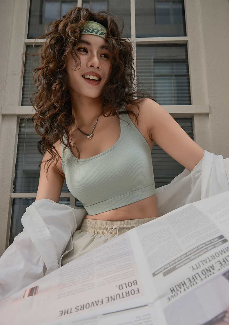 水滴美背吊带背心女内搭夏季外穿螺纹运动内衣高强度防震健身文胸