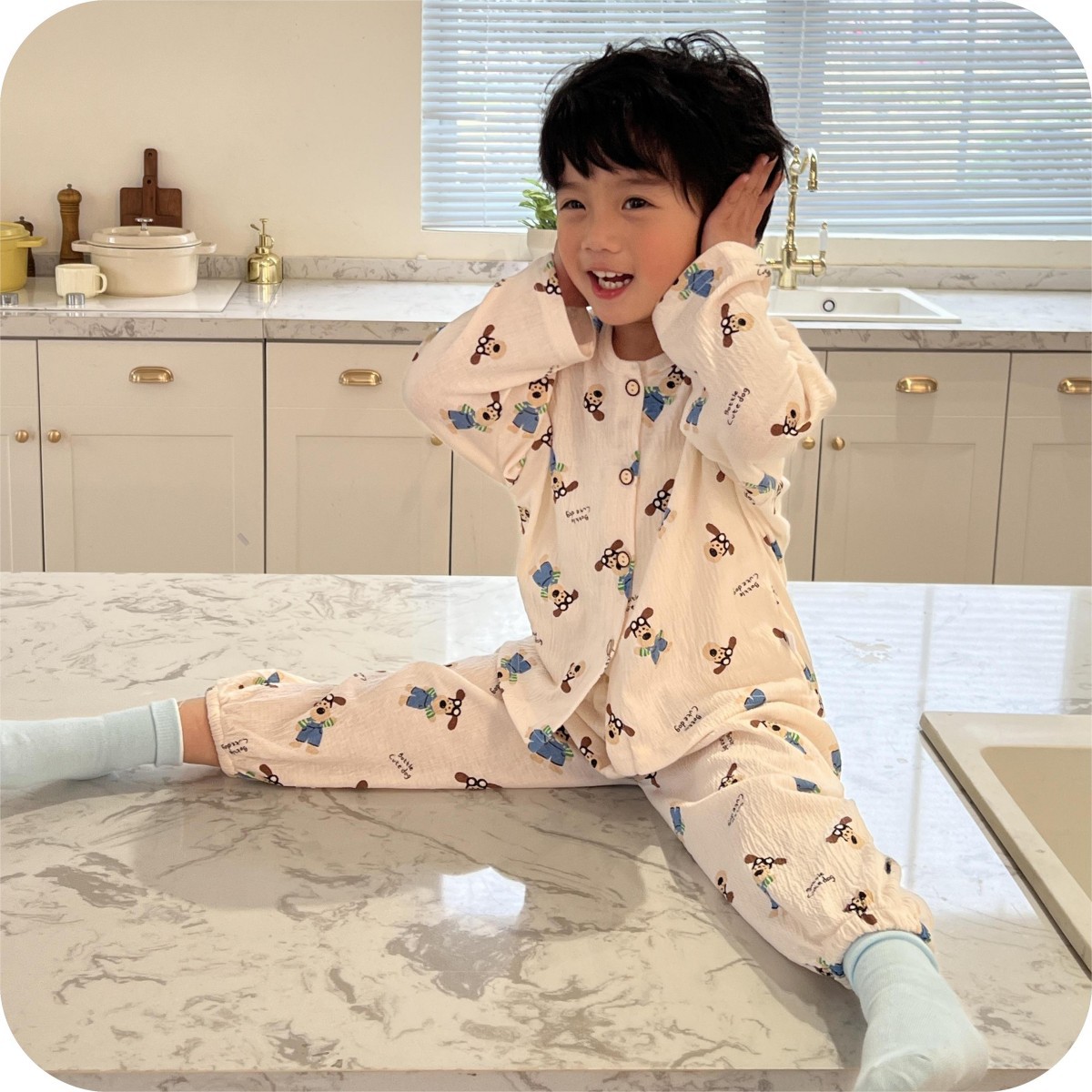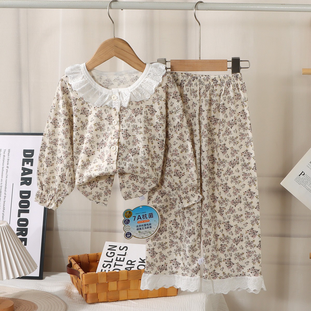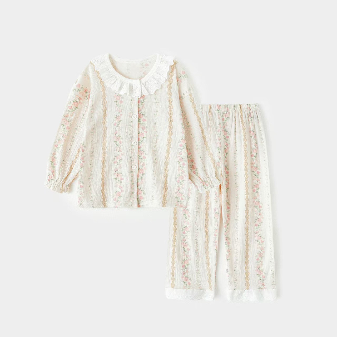 儿童弹力棉纱套装蕾丝花边宝宝春款开衫家居服韩版可爱空调服睡衣