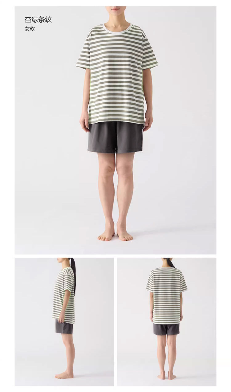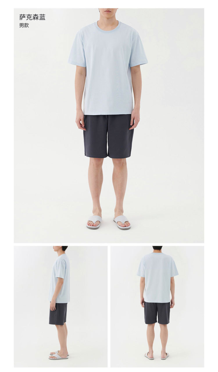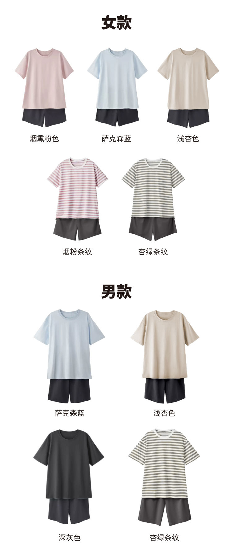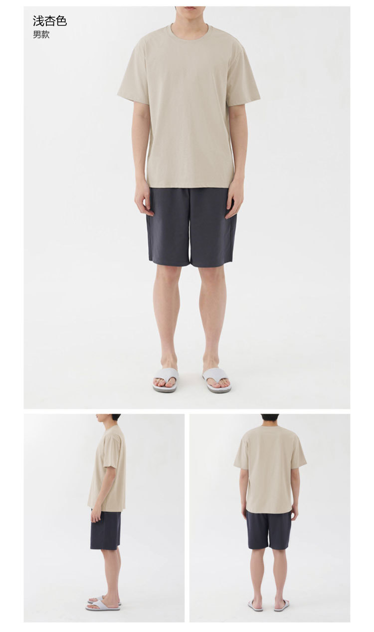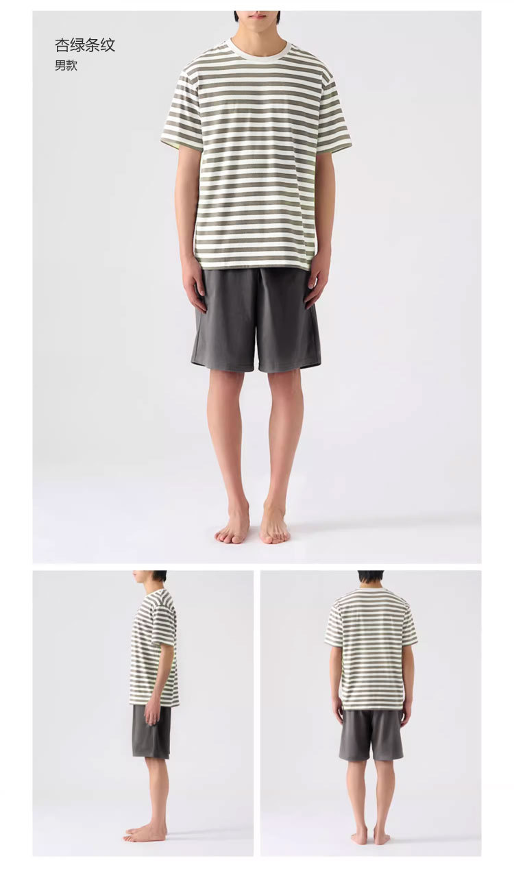 无印凉感天竺编织短袖家居睡衣套装针织棉短裤夏日良品情侣居家服