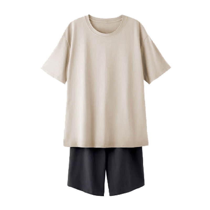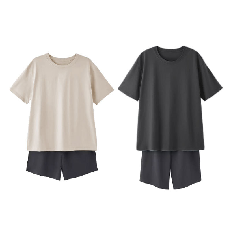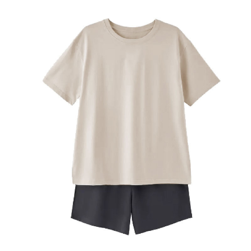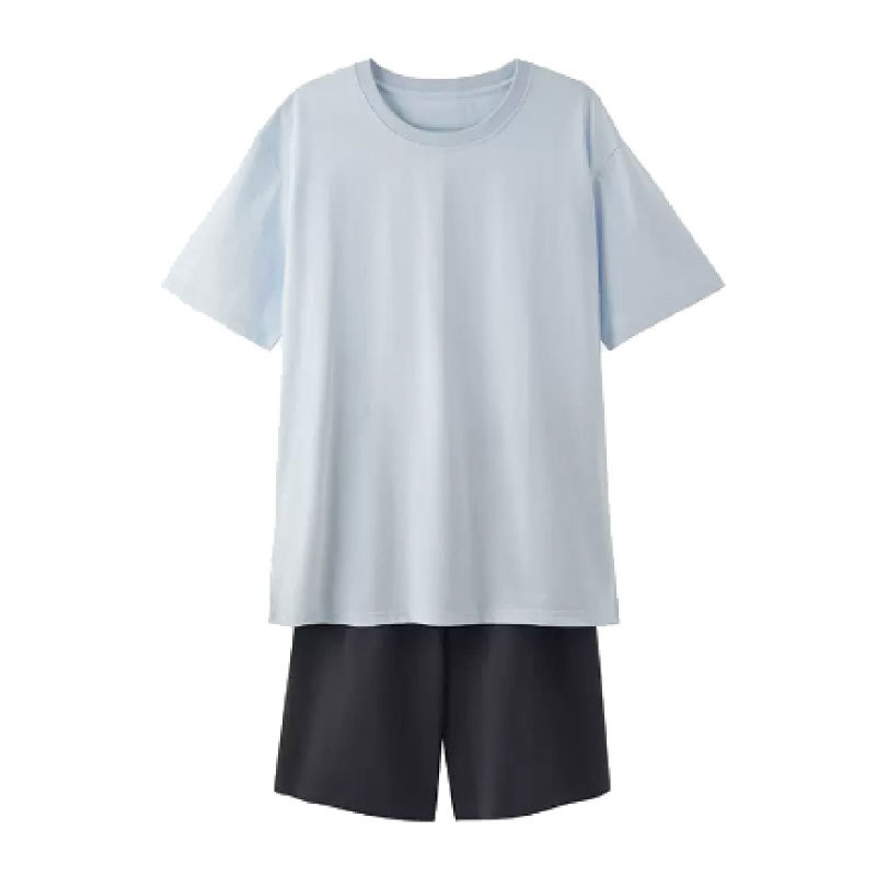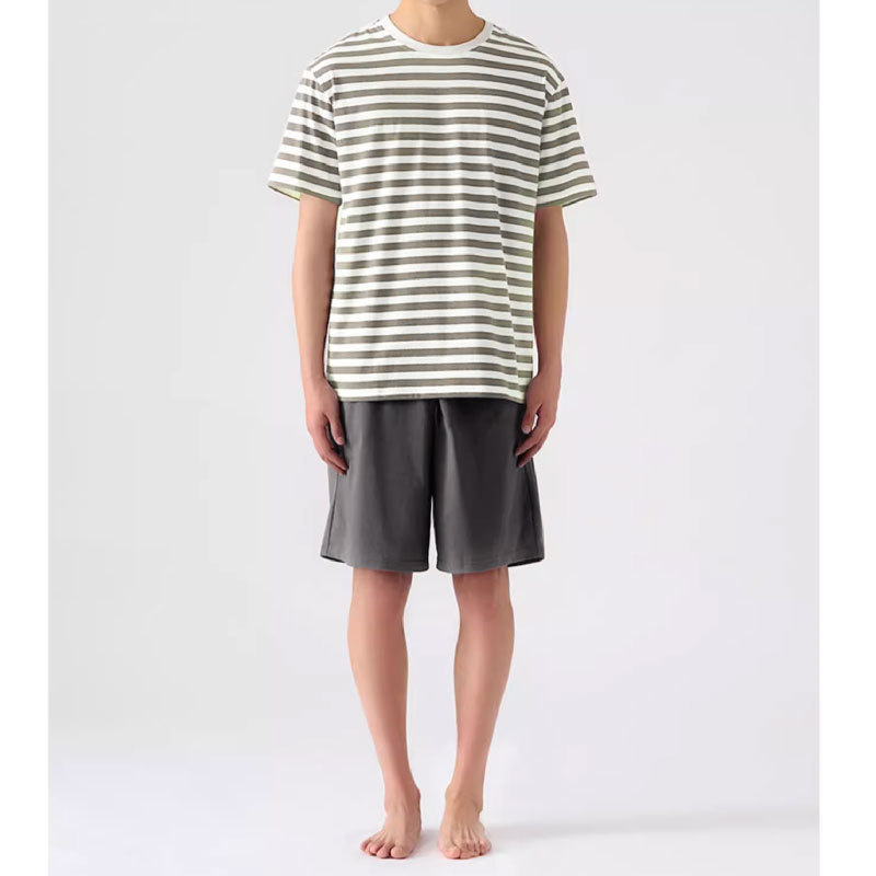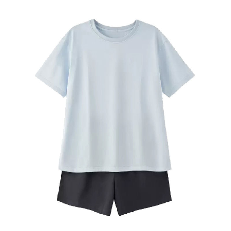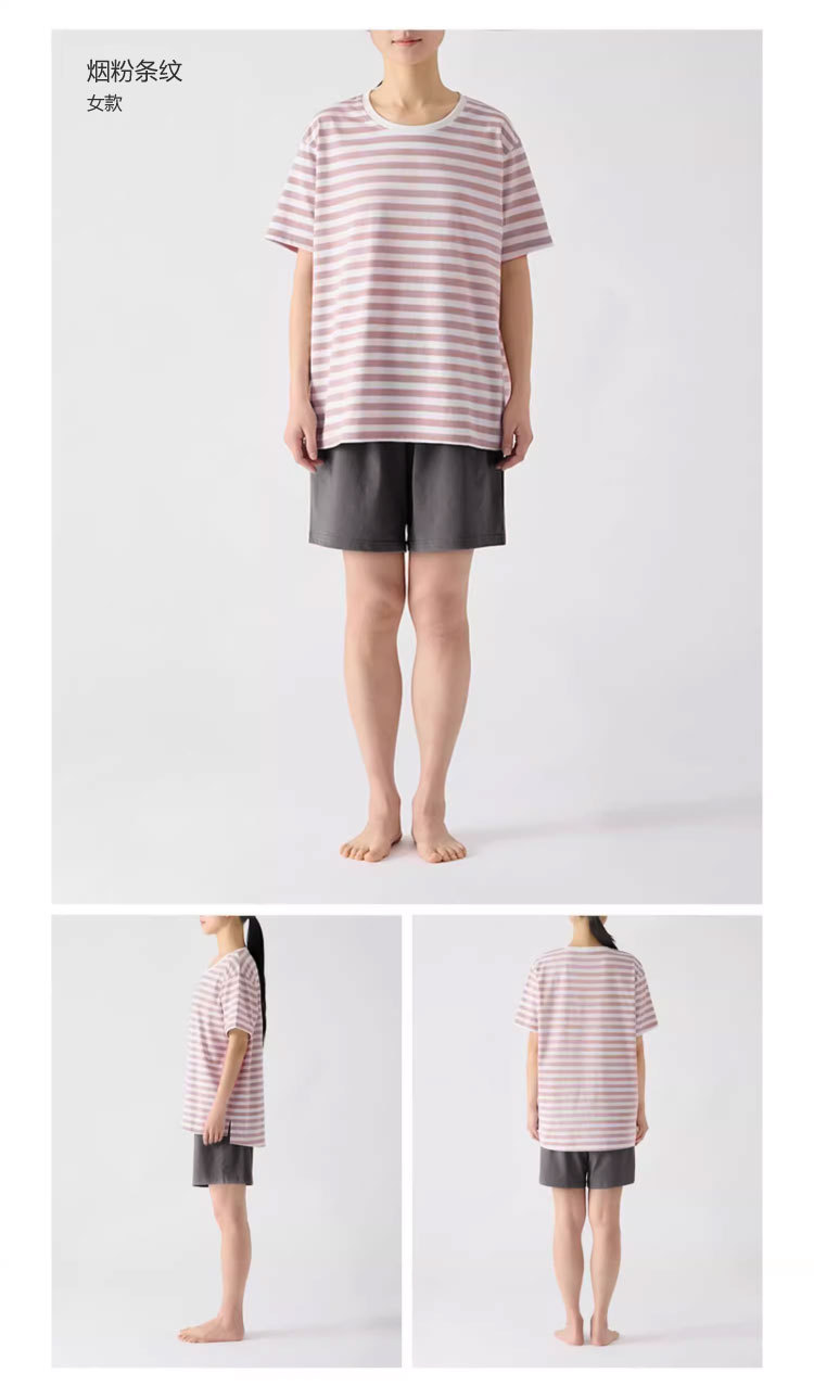 无印凉感天竺编织短袖家居睡衣套装针织棉短裤夏日良品情侣居家服