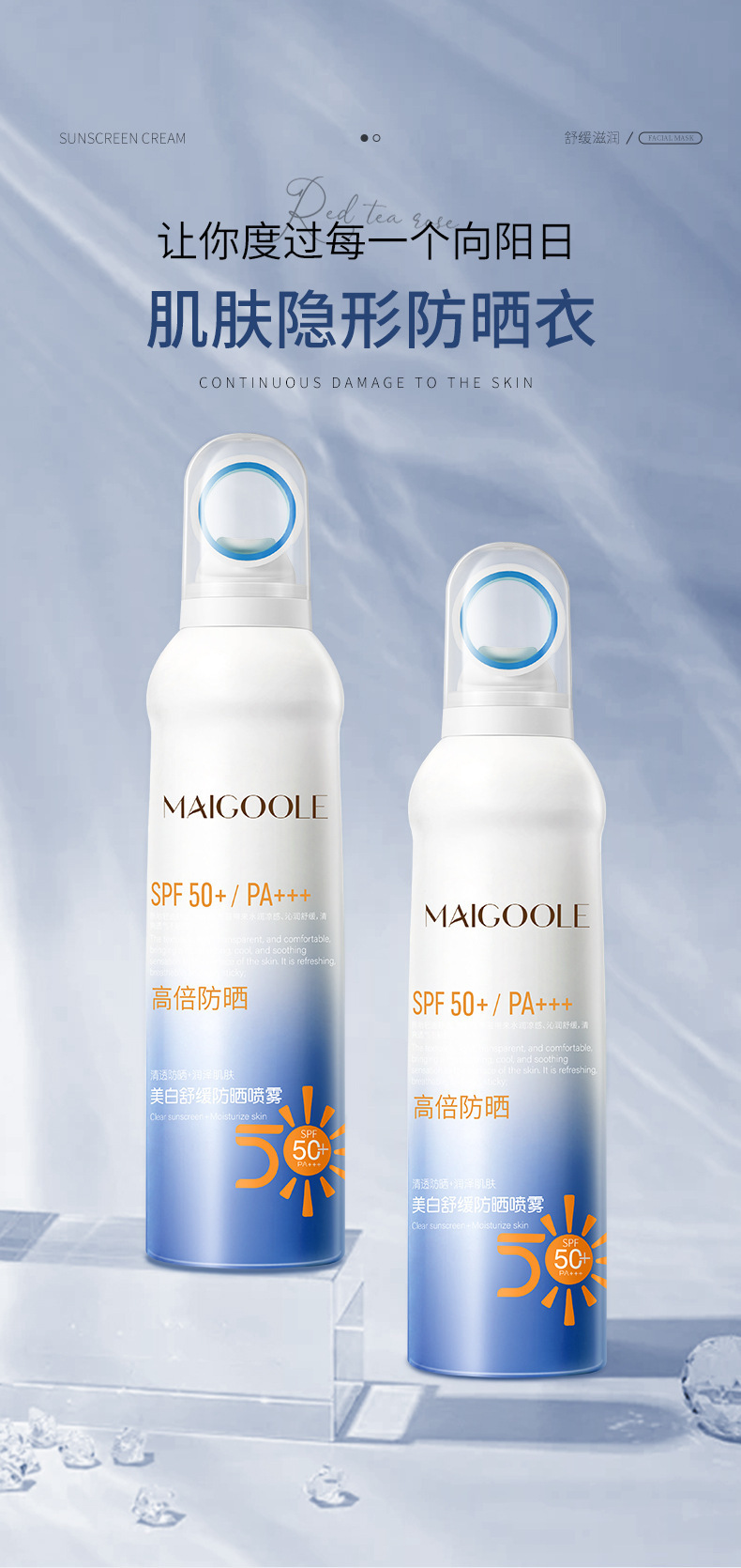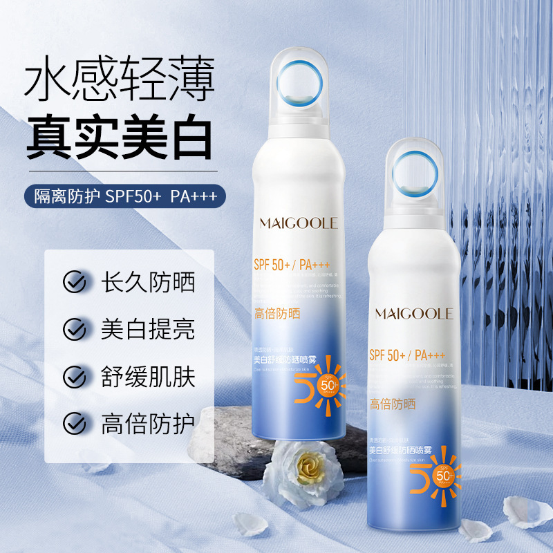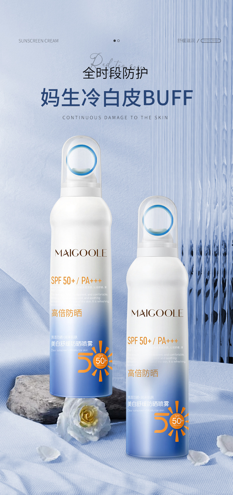 玫黛琳美白舒缓防晒喷雾快速成膜防水防汗防紫外线高倍防晒清爽