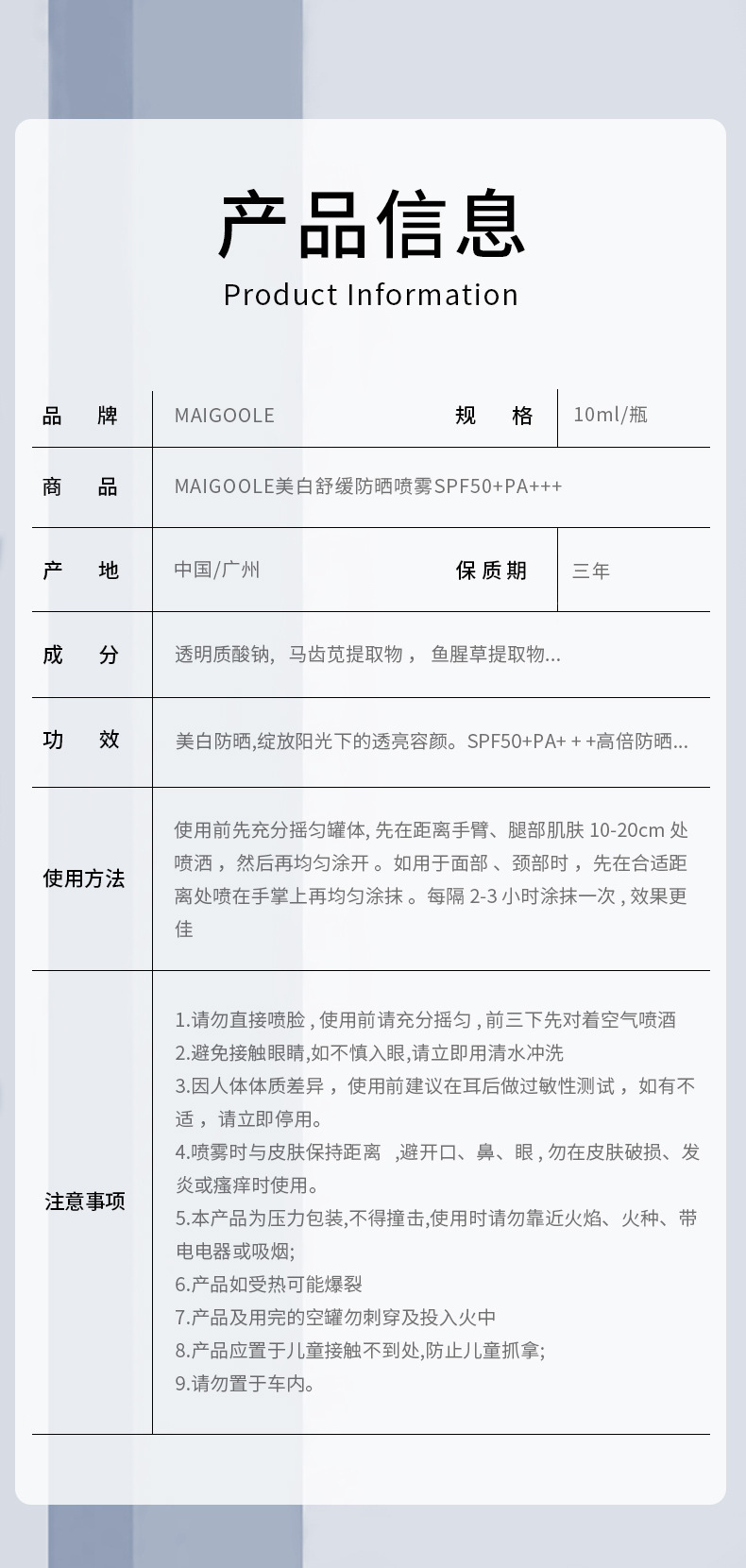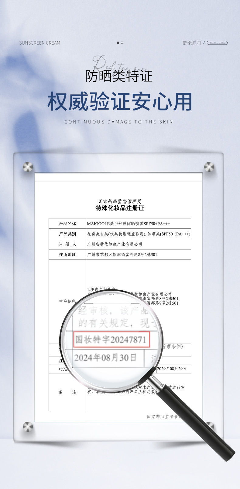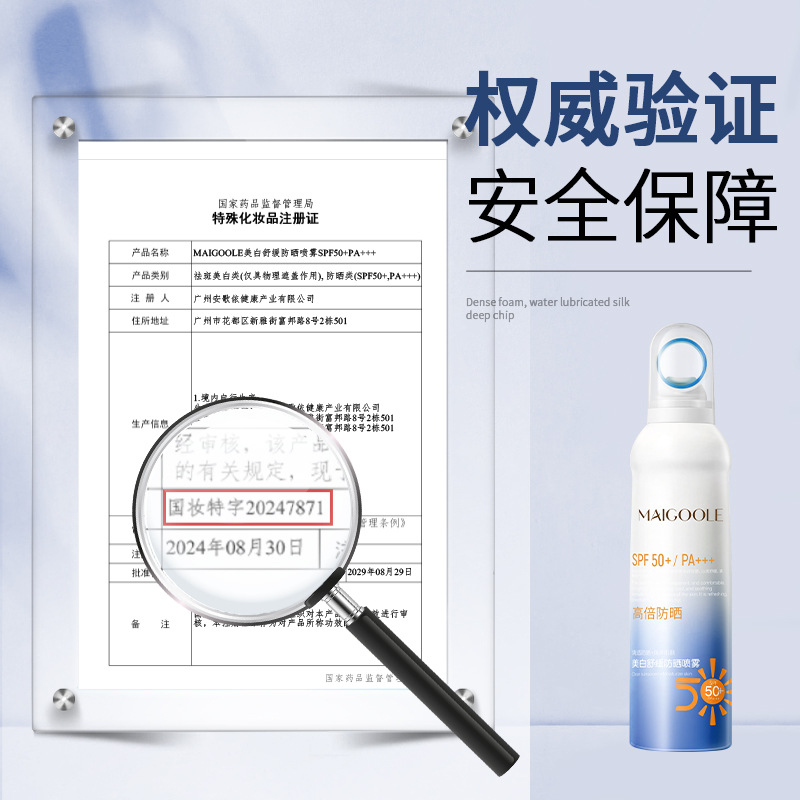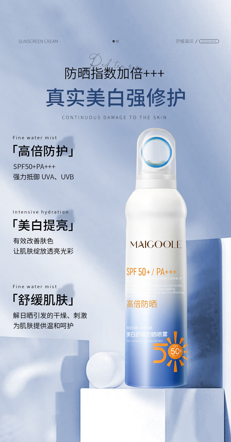 玫黛琳美白舒缓防晒喷雾快速成膜防水防汗防紫外线高倍防晒清爽
