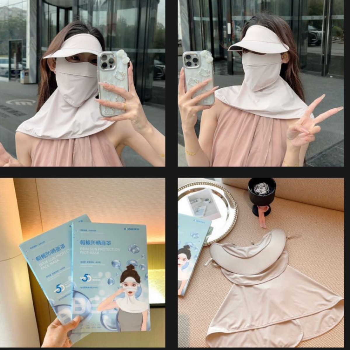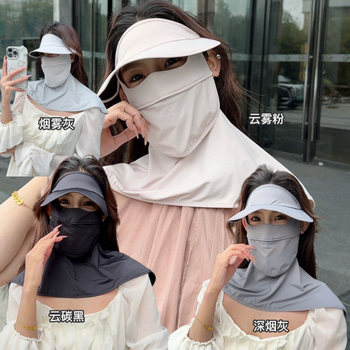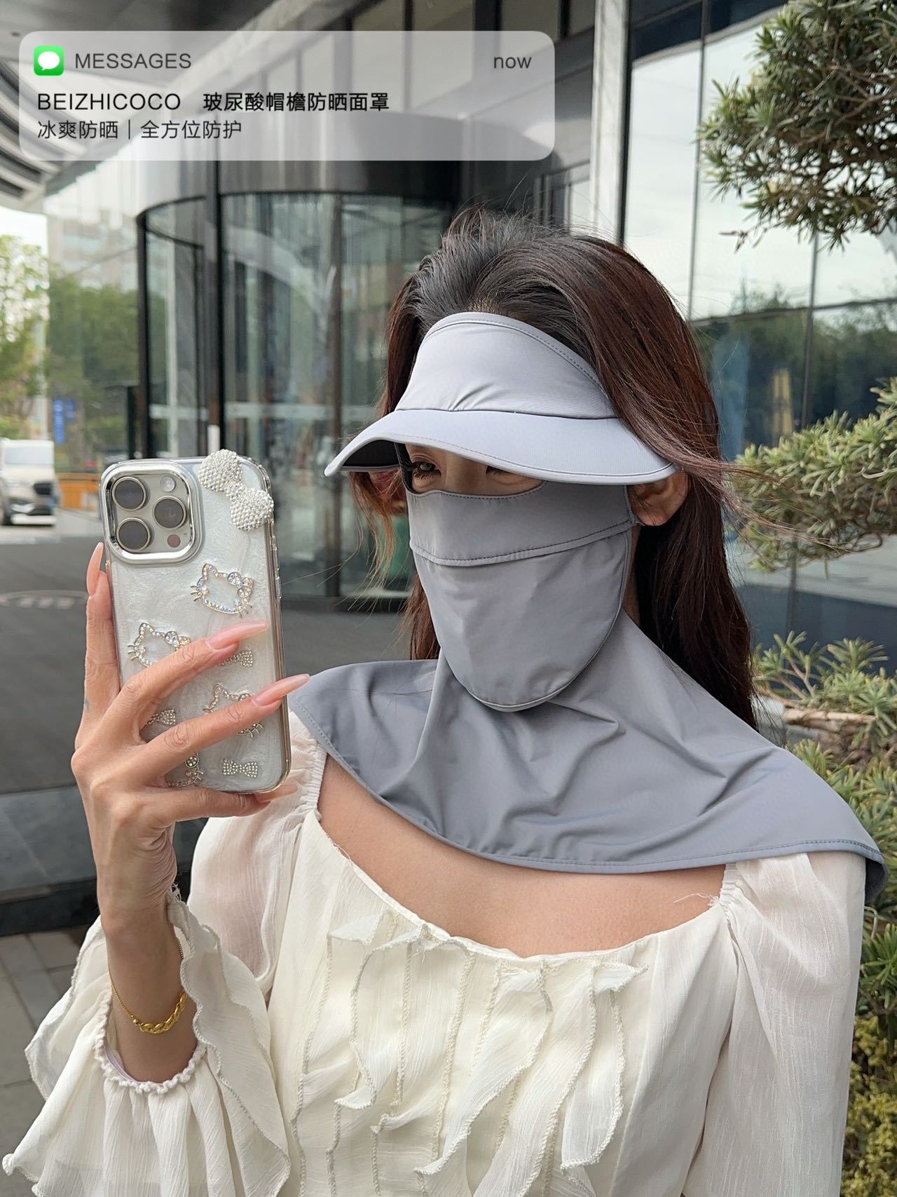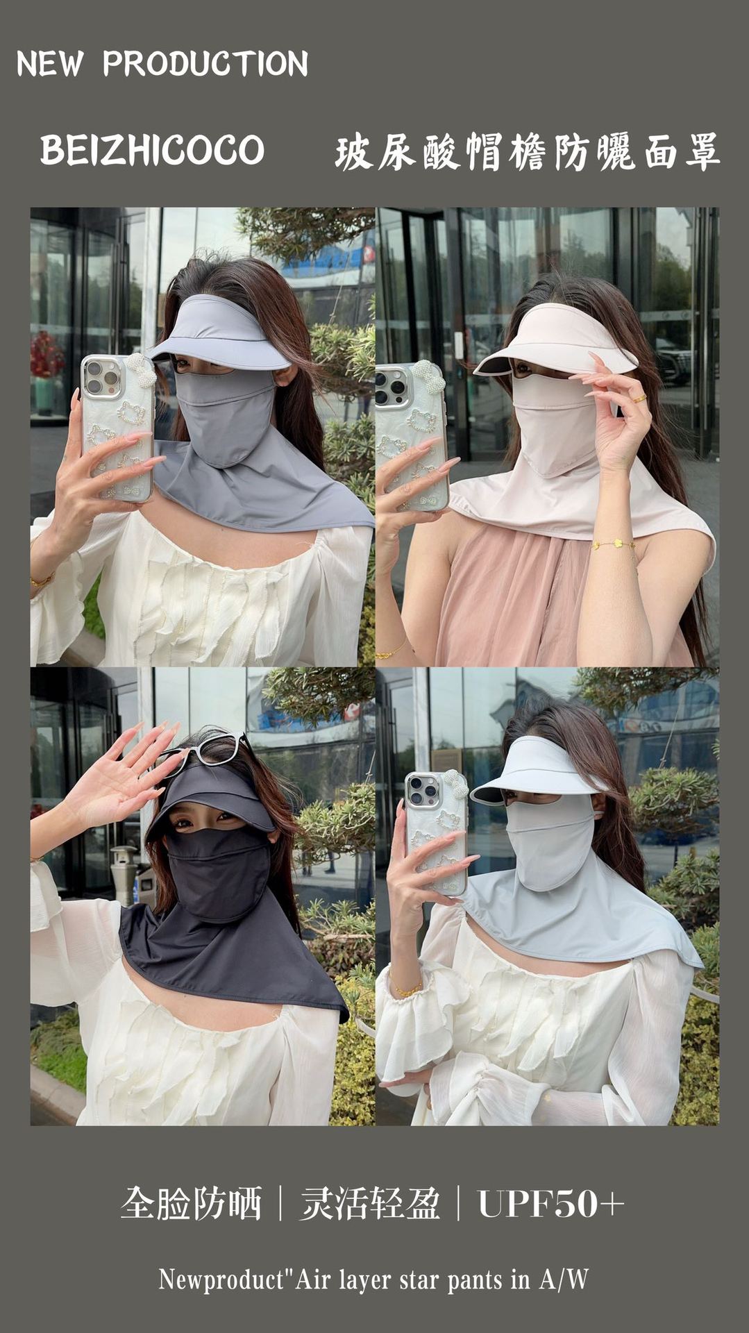 玻尿酸全脸遮阳防晒帽子口罩一体护颈女夏季防紫外线透气冰丝面罩