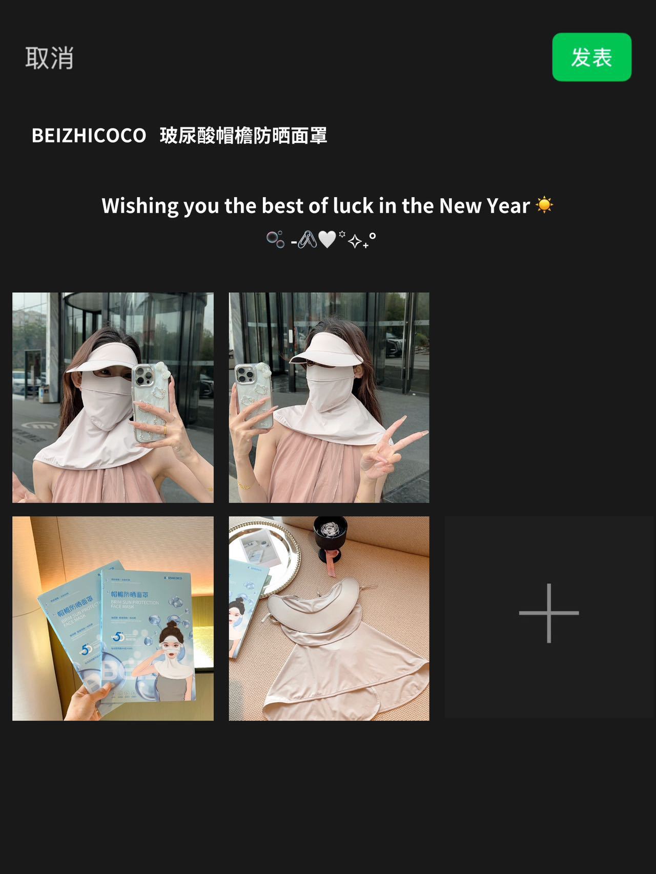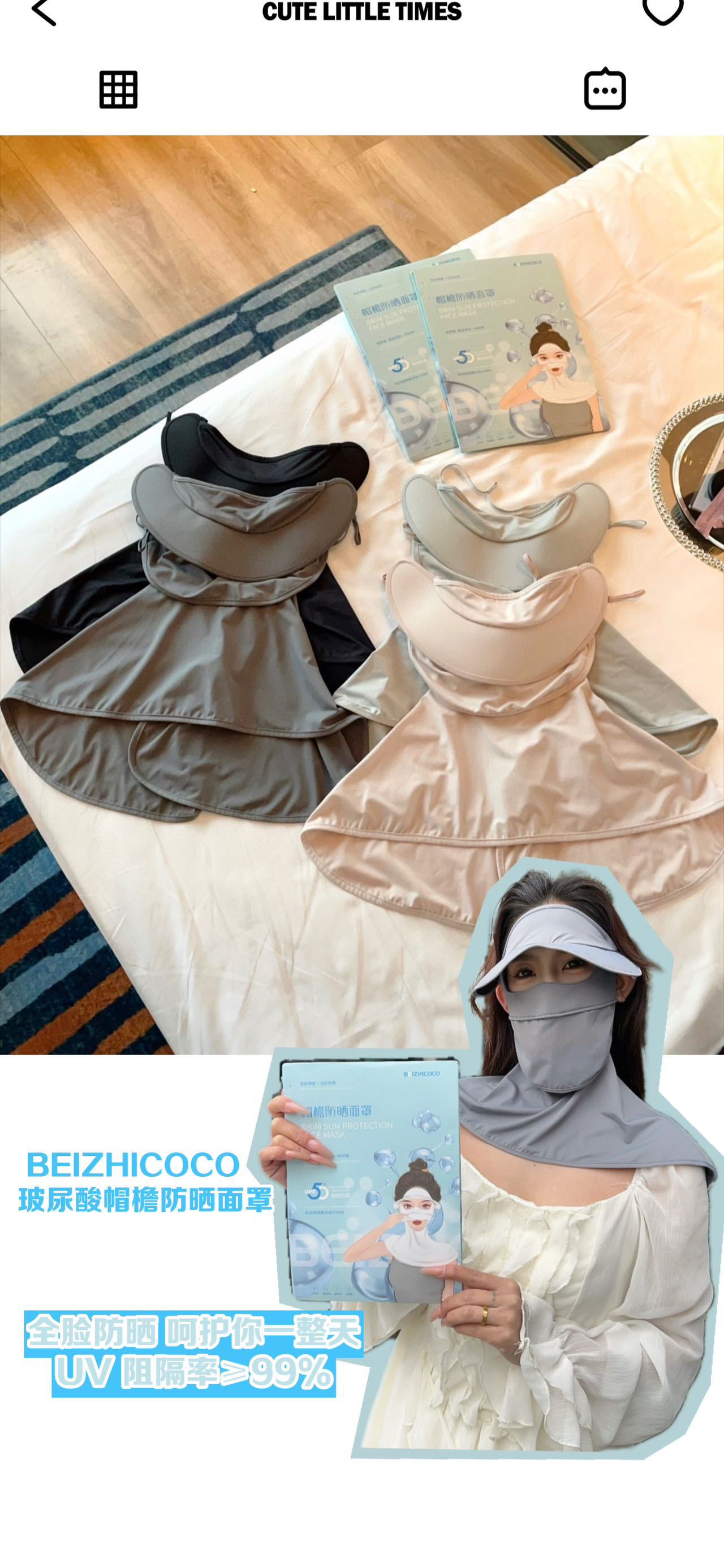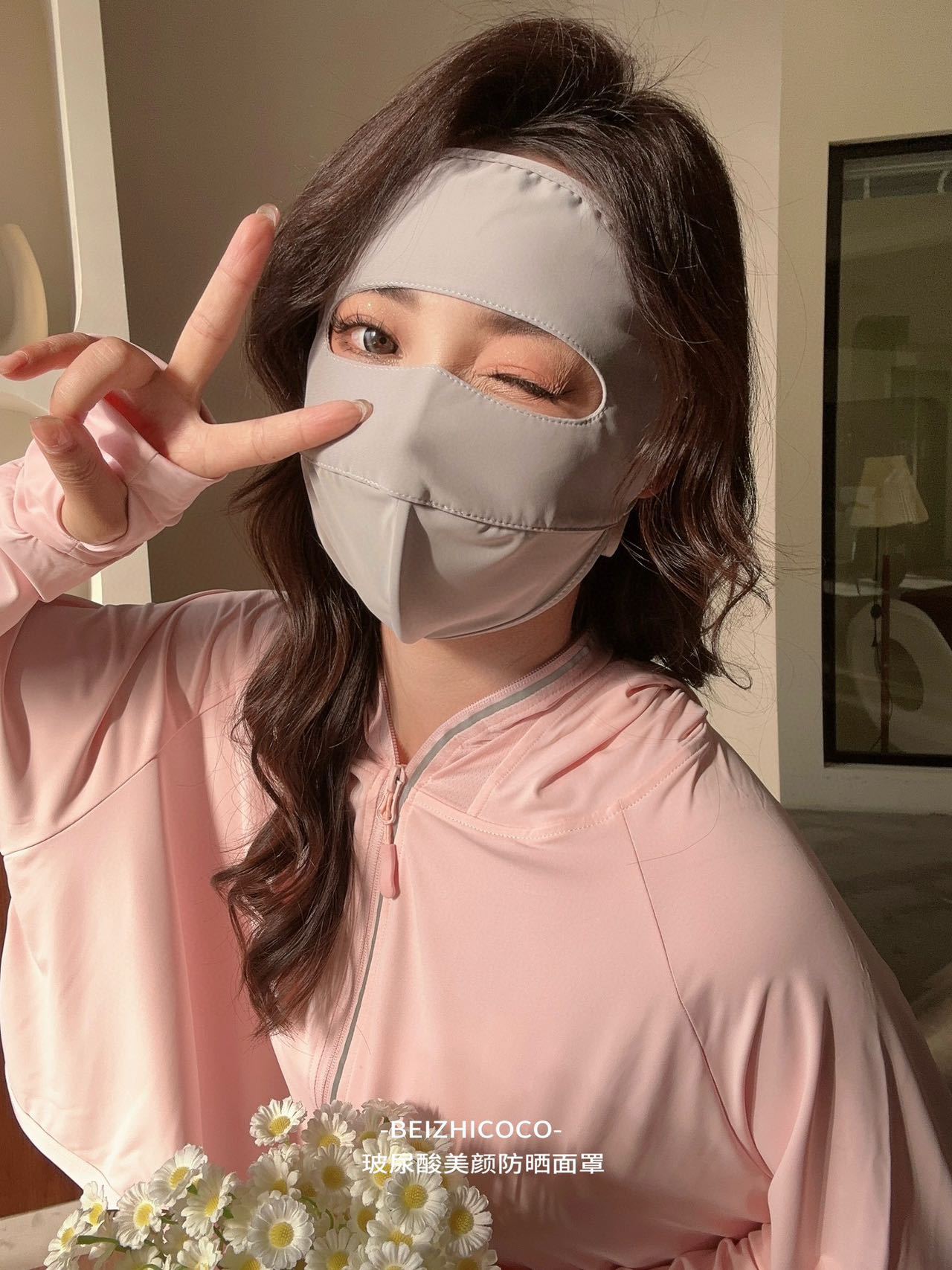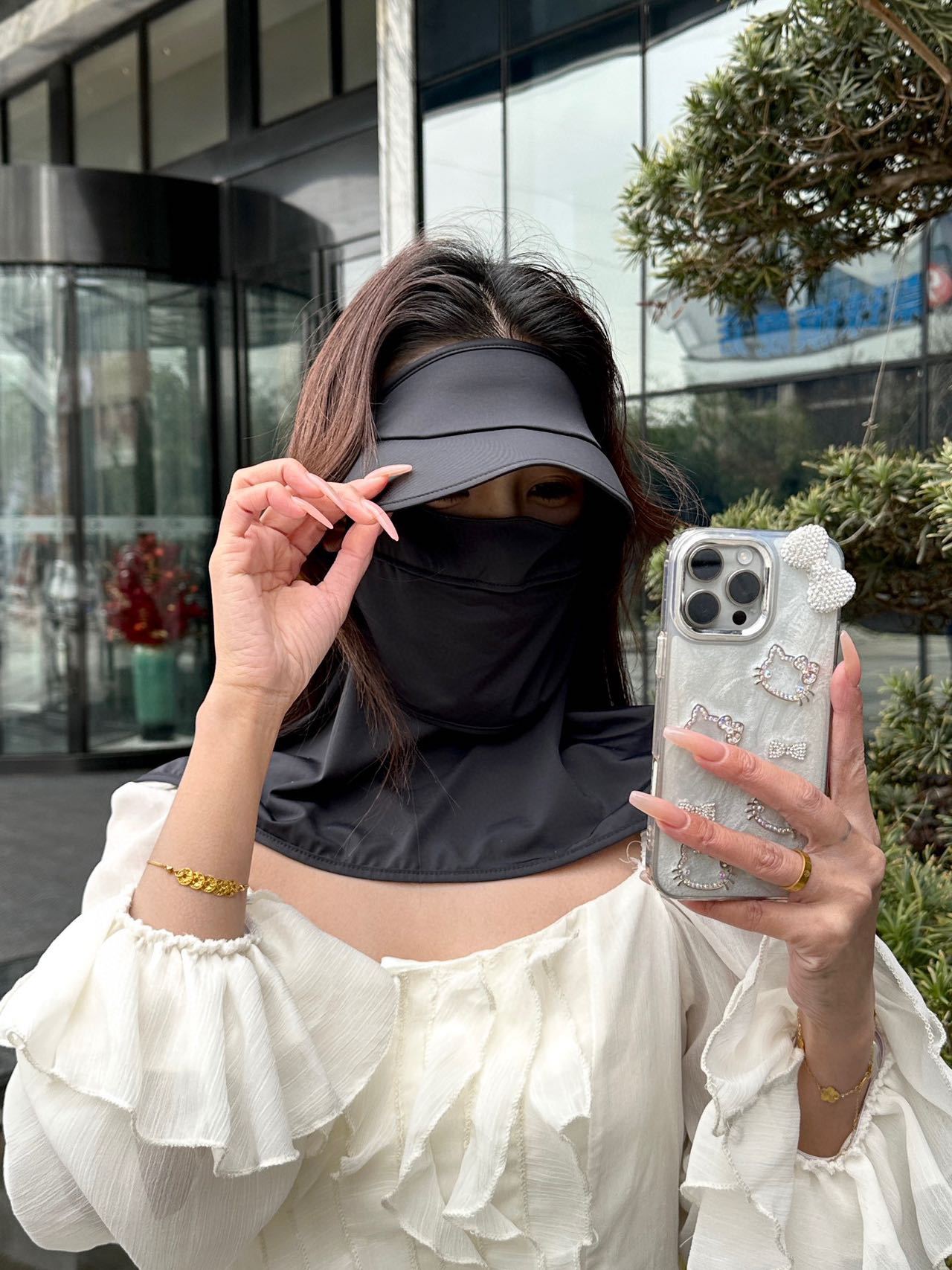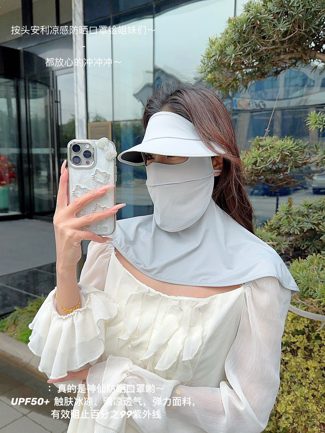 玻尿酸全脸遮阳防晒帽子口罩一体护颈女夏季防紫外线透气冰丝面罩