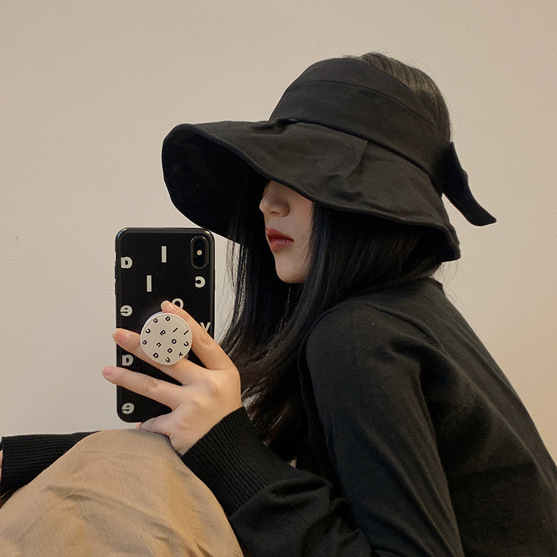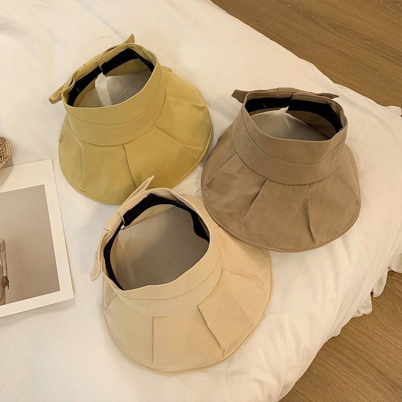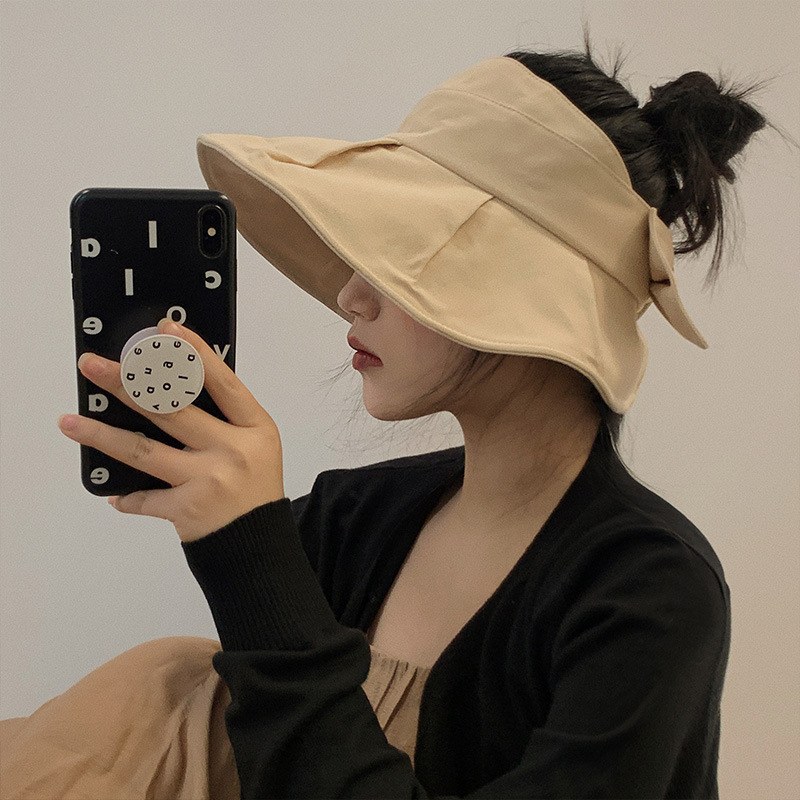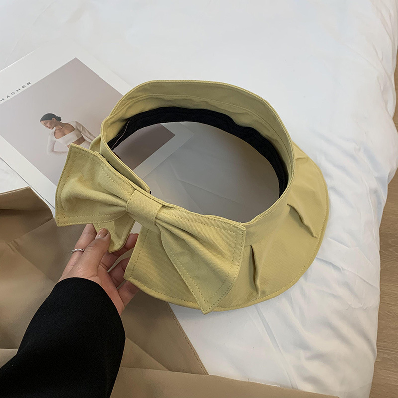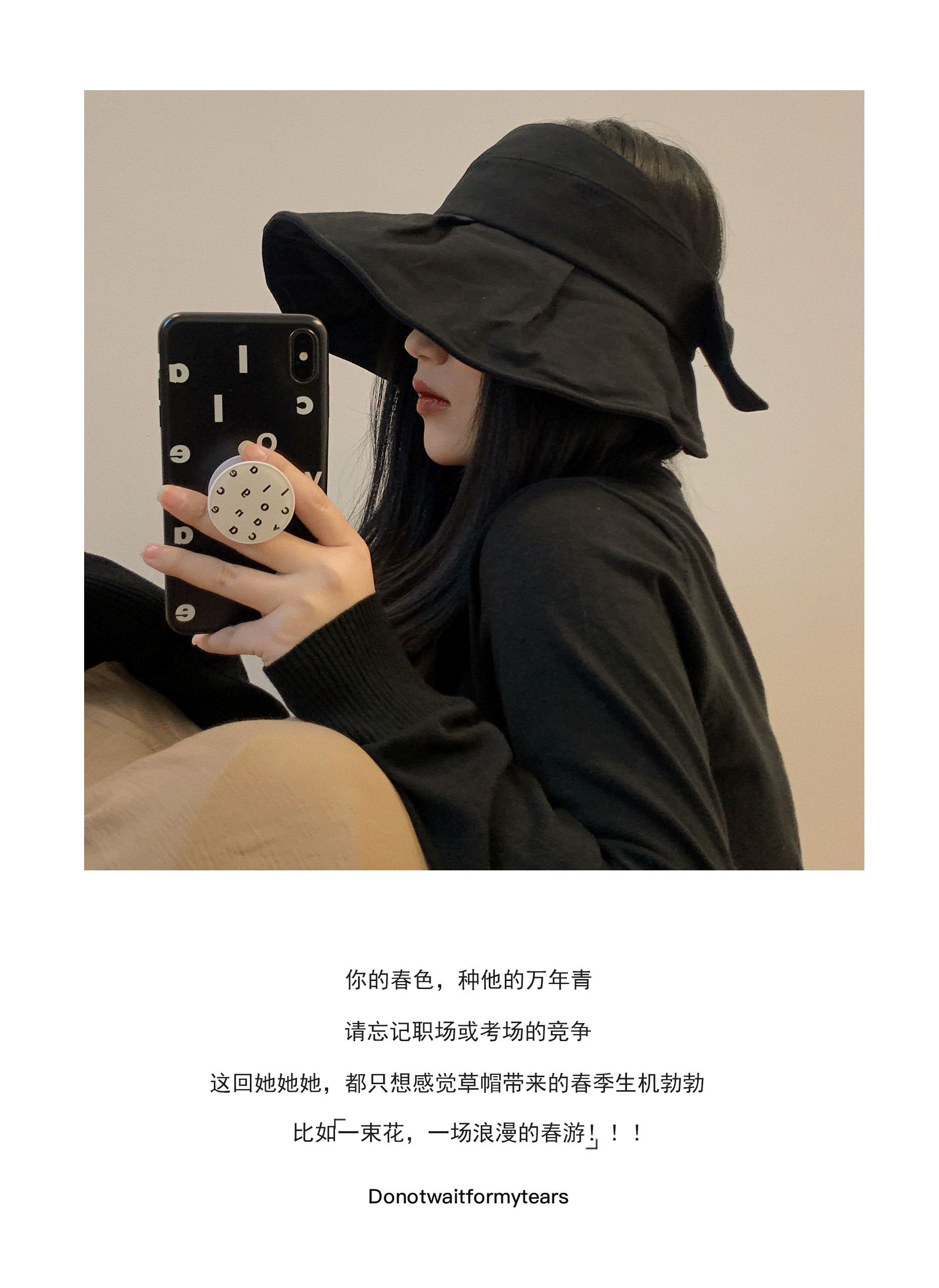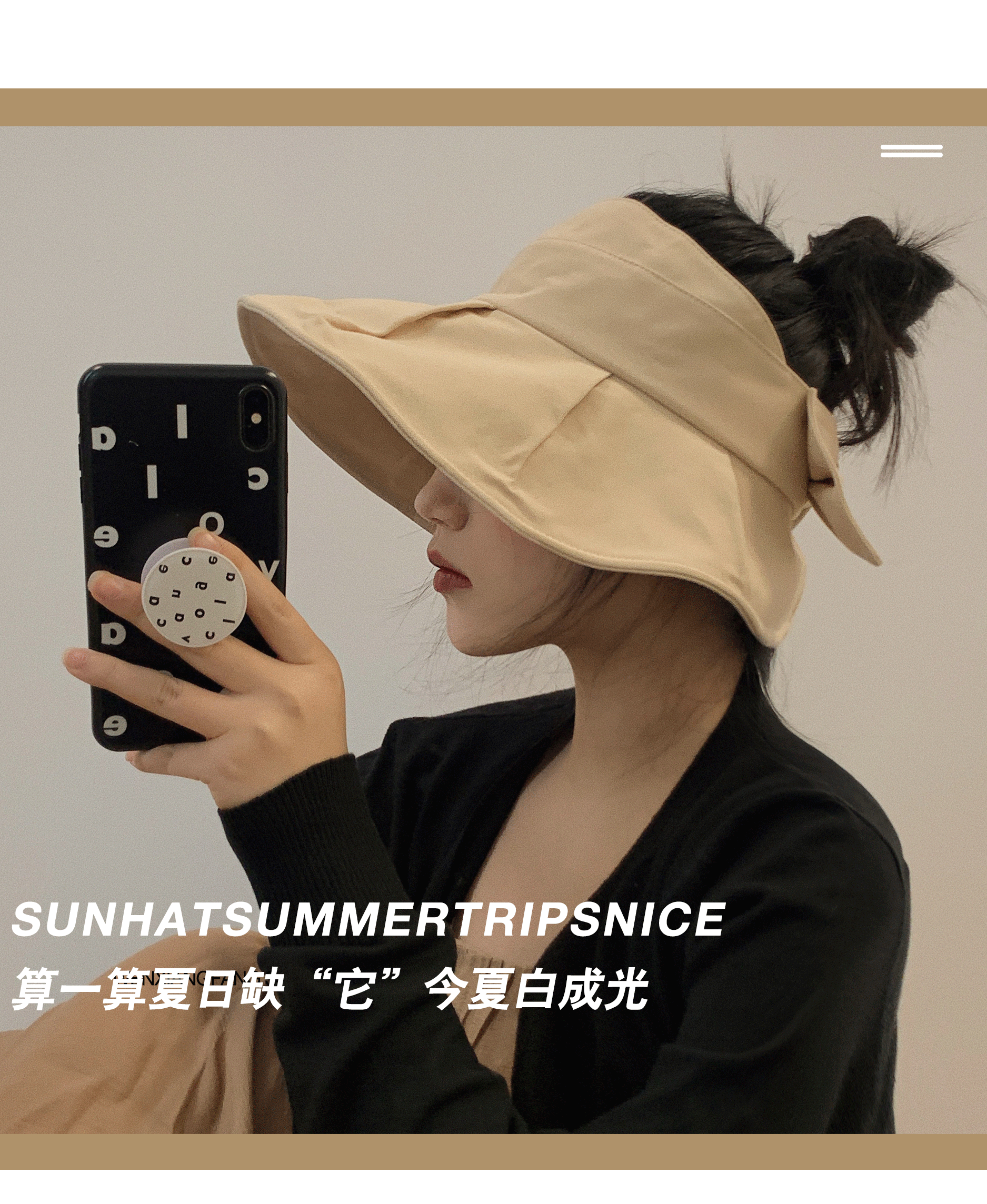蝴蝶结空顶帽女夏季防紫外线骑车遮阳防晒帽可折叠无顶太阳帽子潮