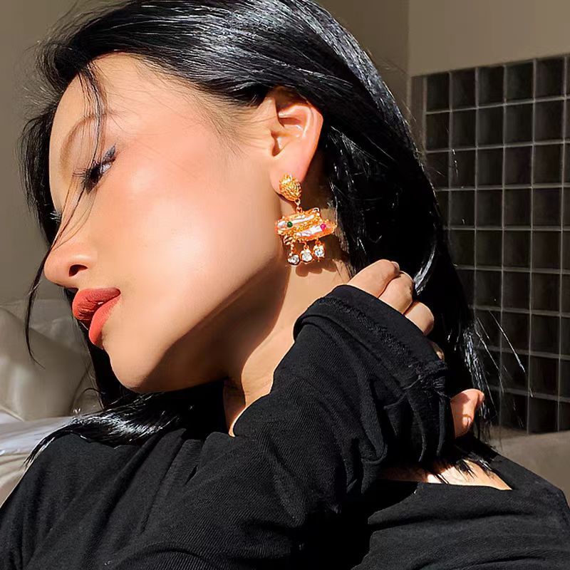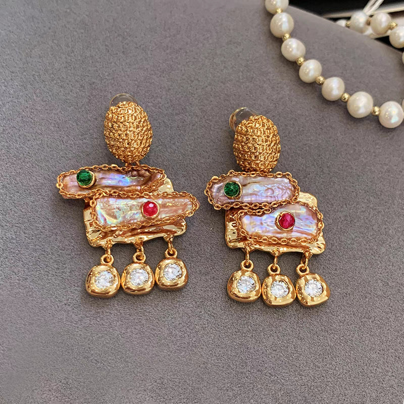 S925纯银针春夏爆款花朵耳钉耳饰真金电镀设计师款炫彩锆石耳环女
