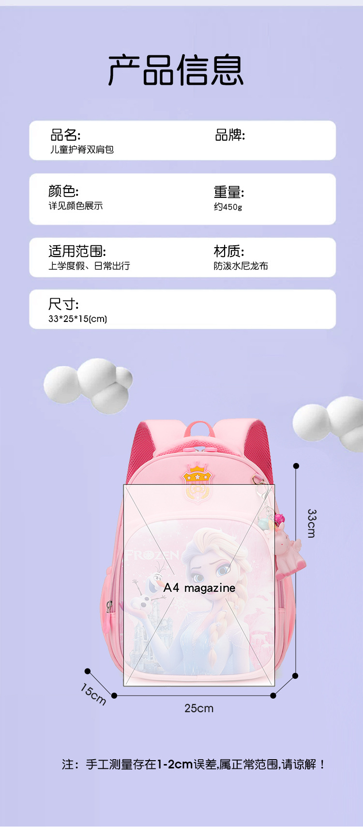 幼儿园书包女童大班学前班男童卡通爱莎蜘蛛侠儿童小背包双肩包