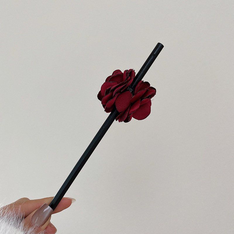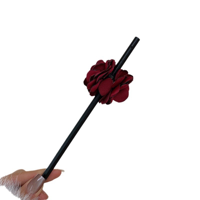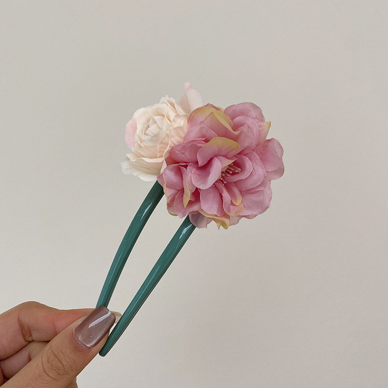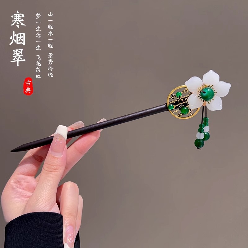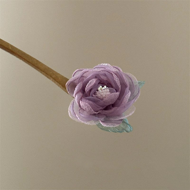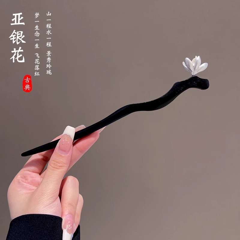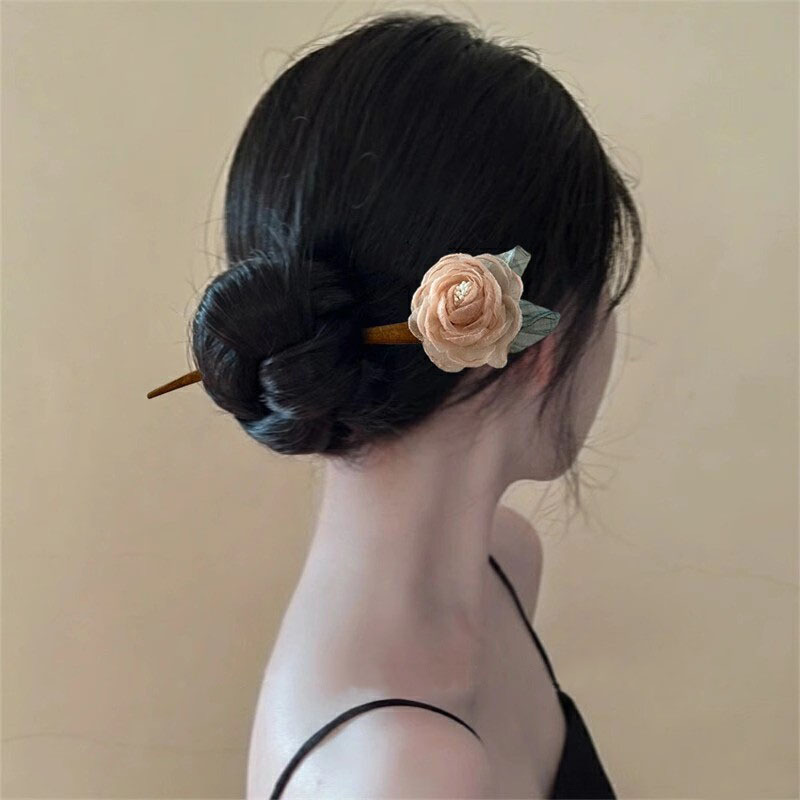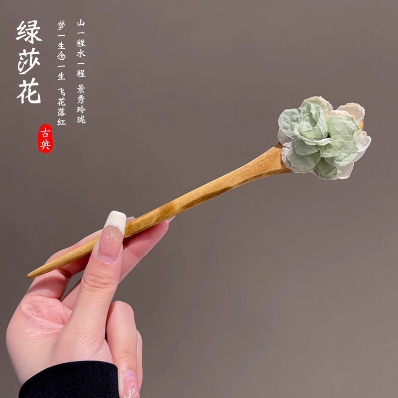 气质复古山茶花发簪古风高级感汉服头饰插梳新中式木头簪子配饰