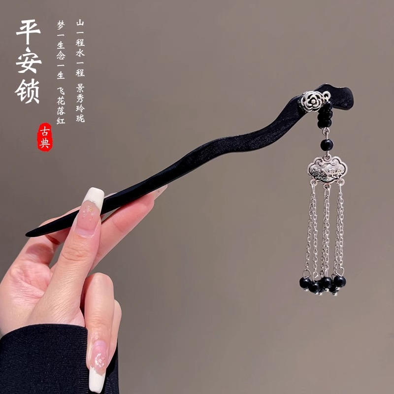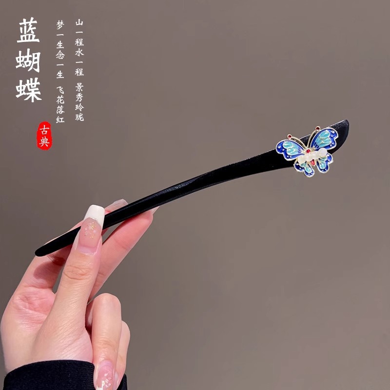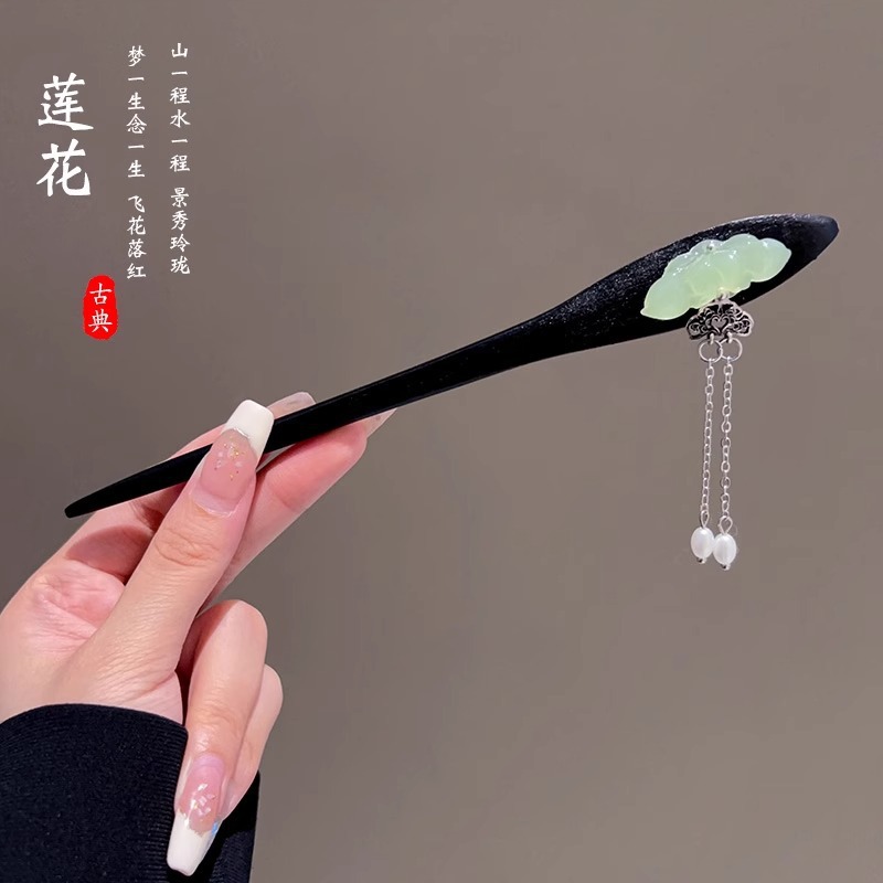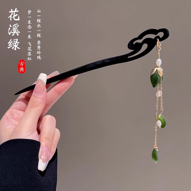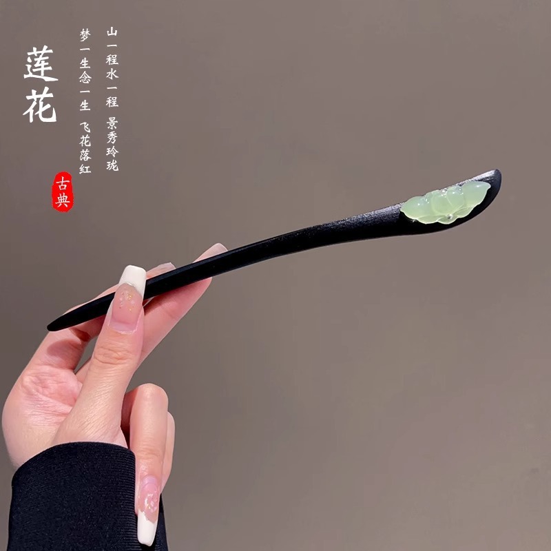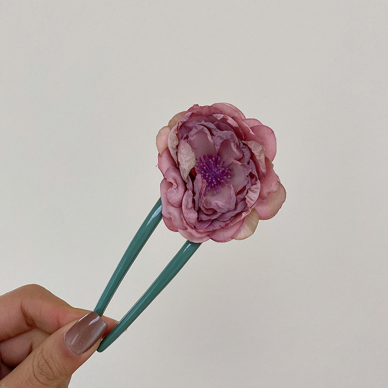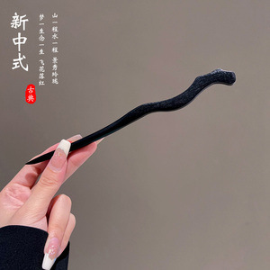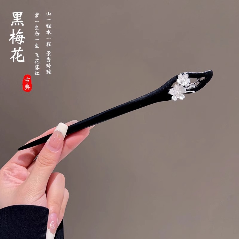 气质复古山茶花发簪古风高级感汉服头饰插梳新中式木头簪子配饰