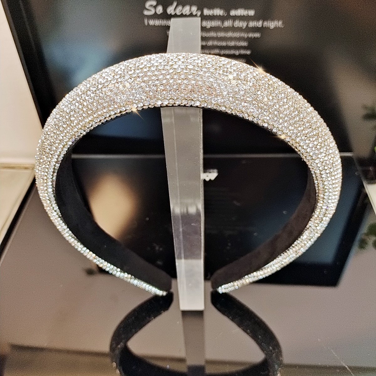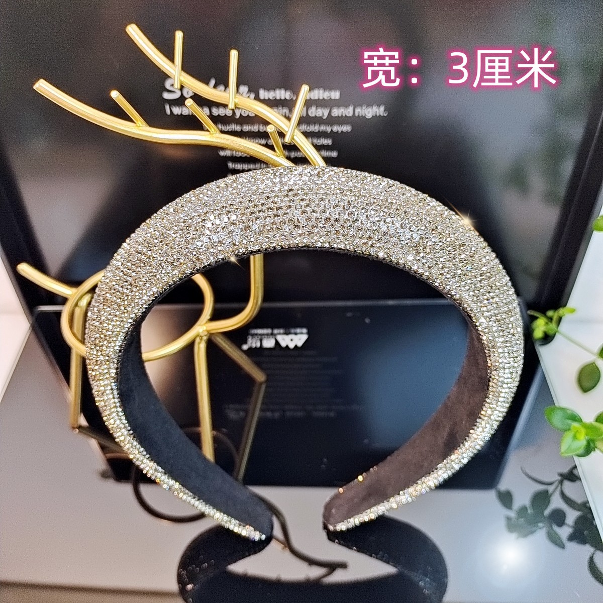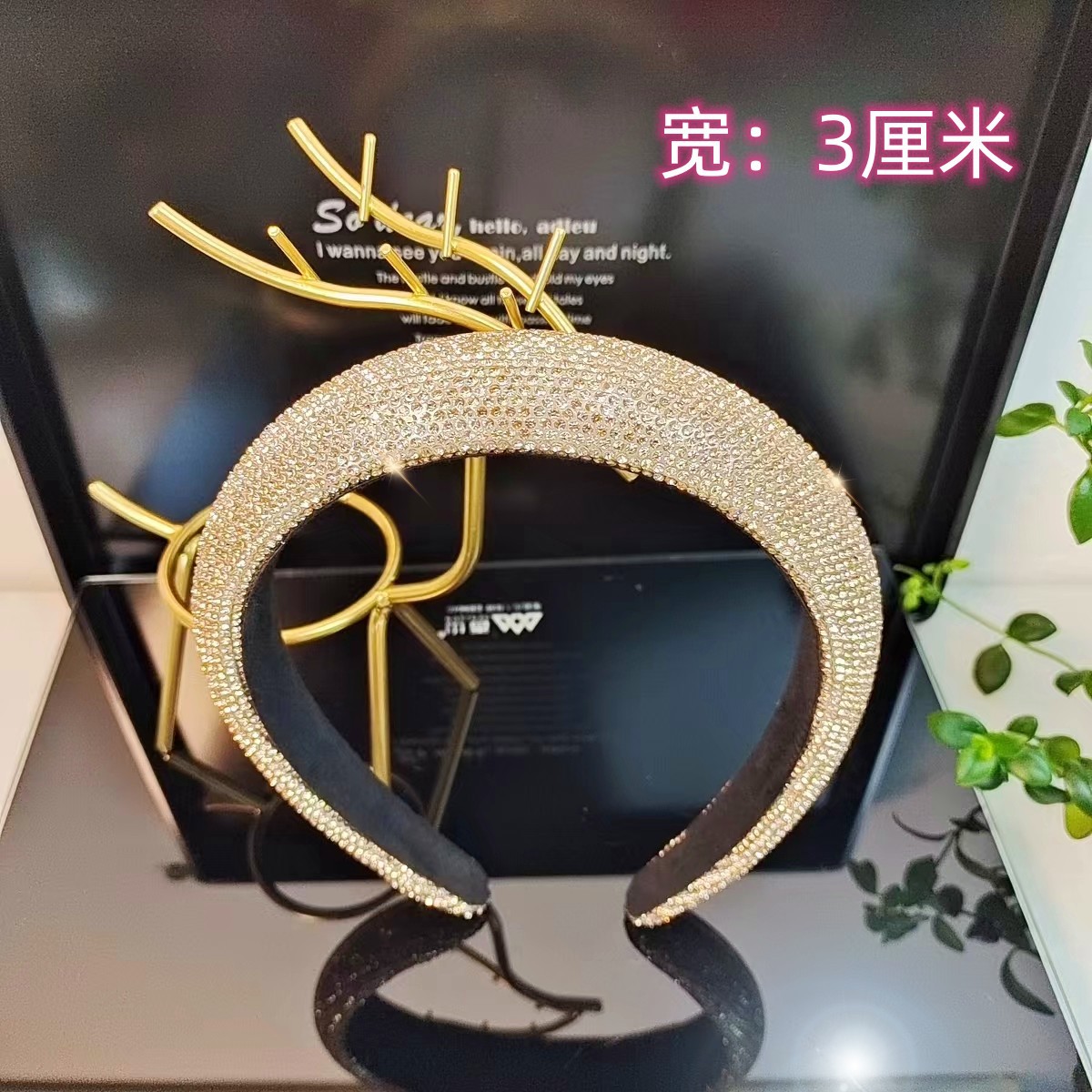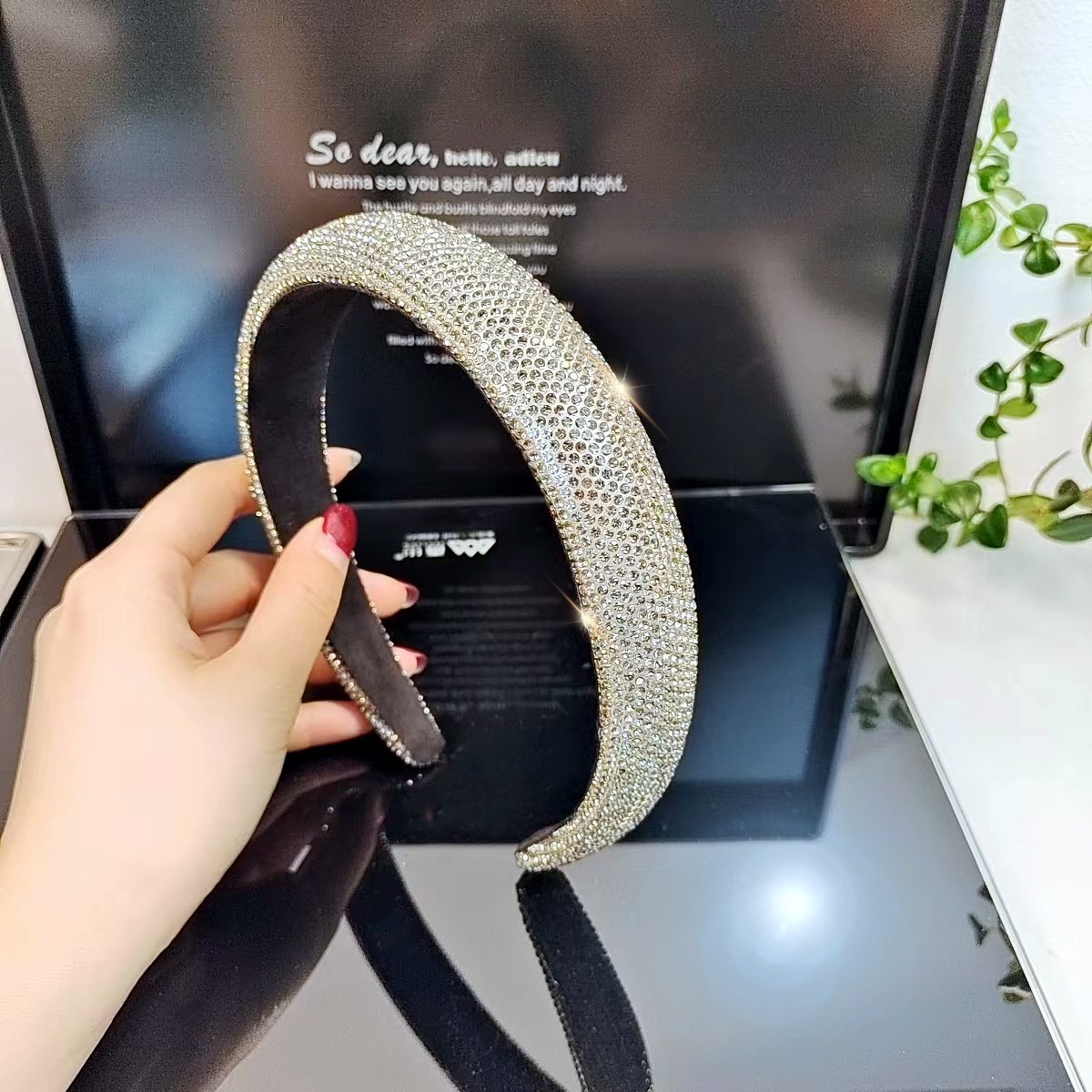 亚马逊跨境高级感钻闪发箍女简约时尚百搭高档高颅顶头箍发饰现货