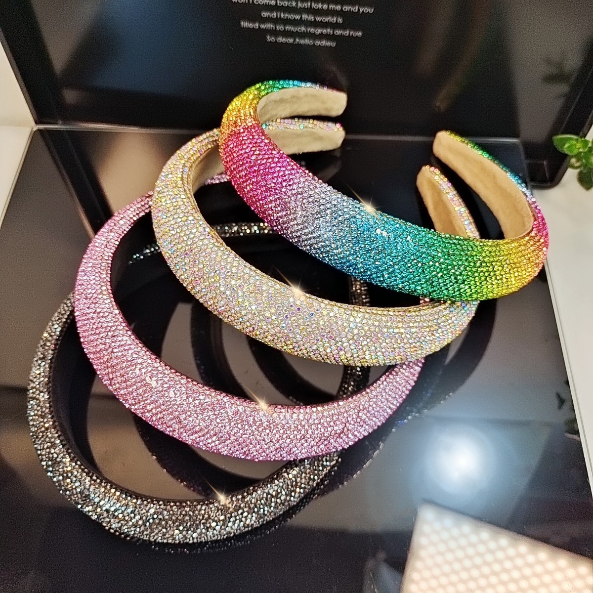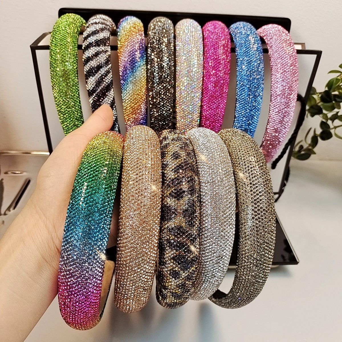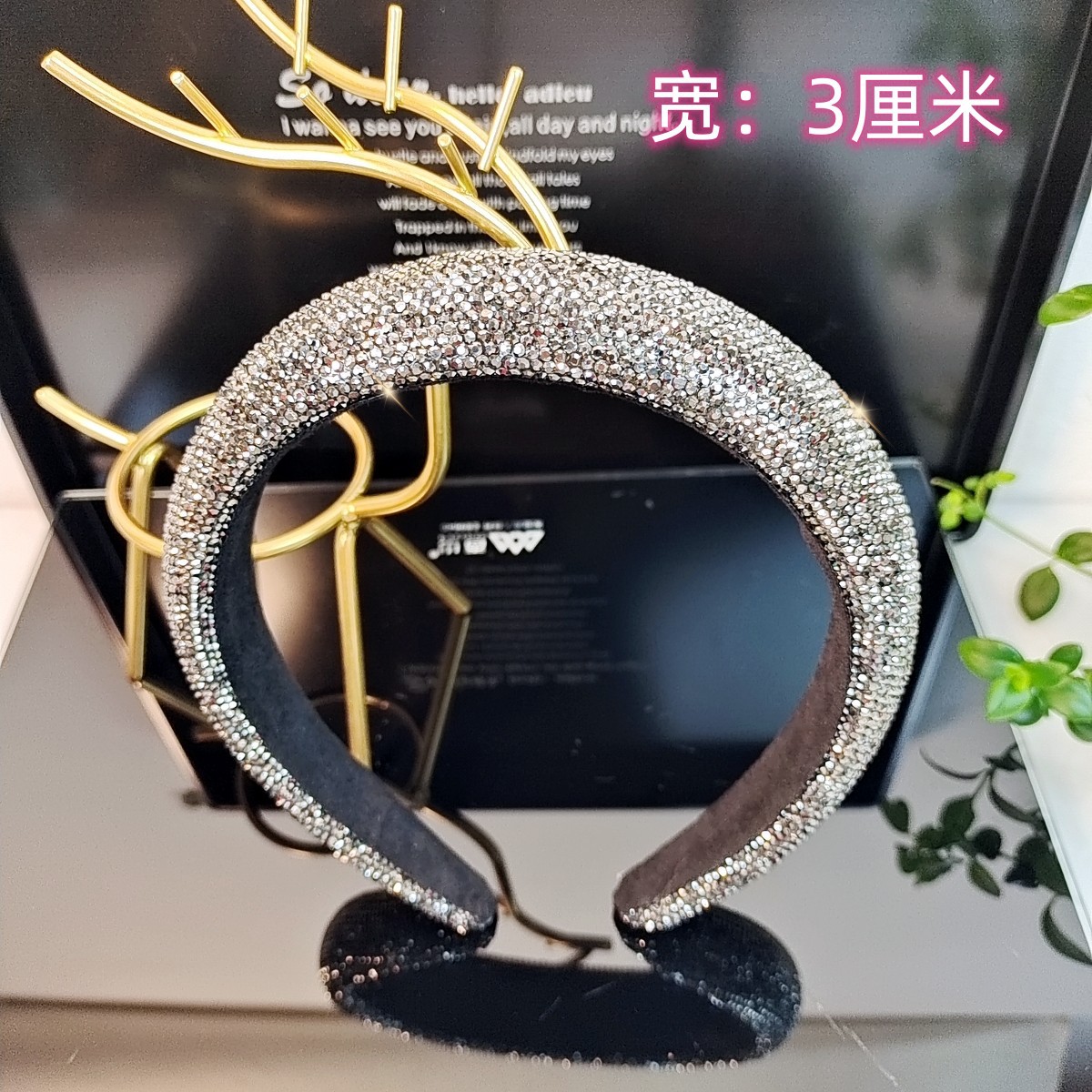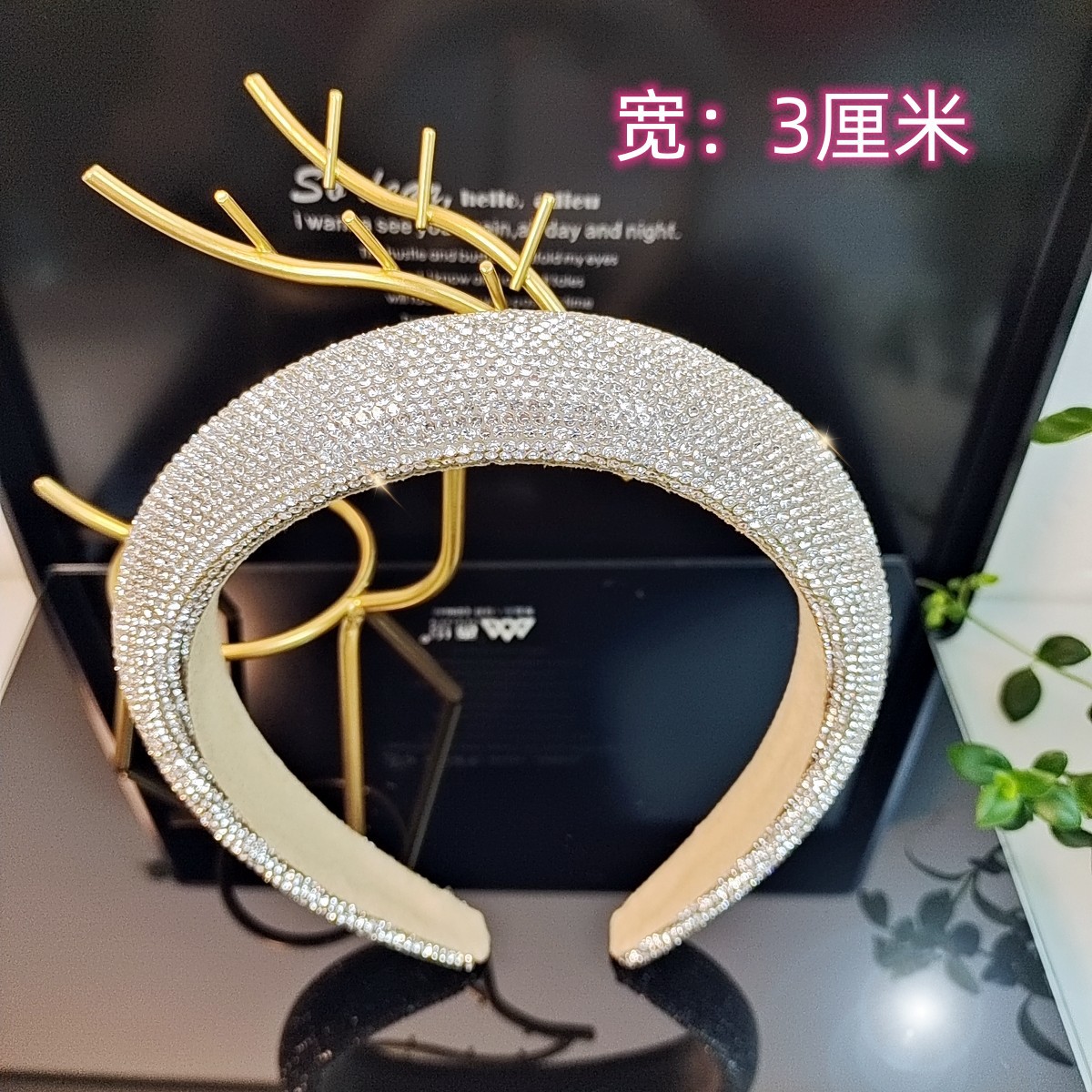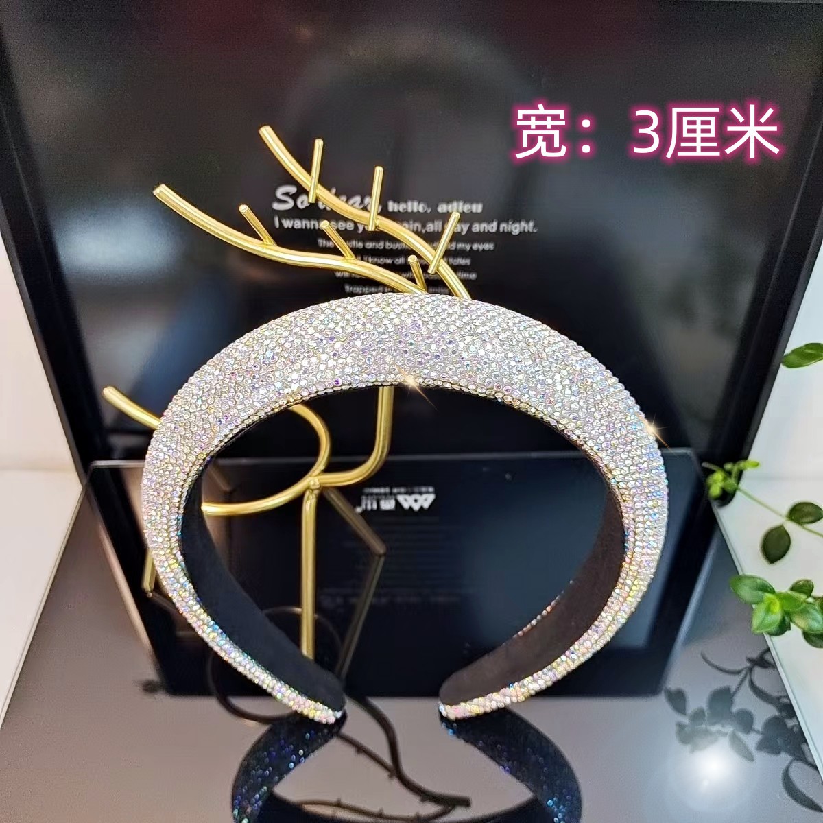 亚马逊跨境高级感钻闪发箍女简约时尚百搭高档高颅顶头箍发饰现货