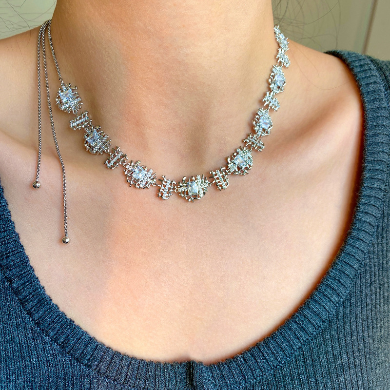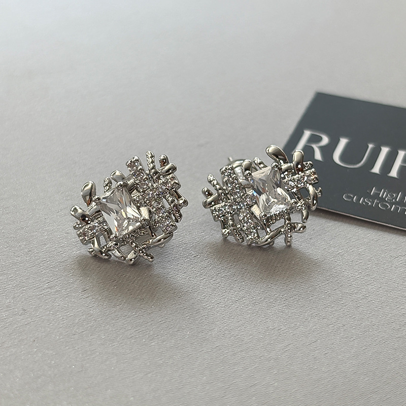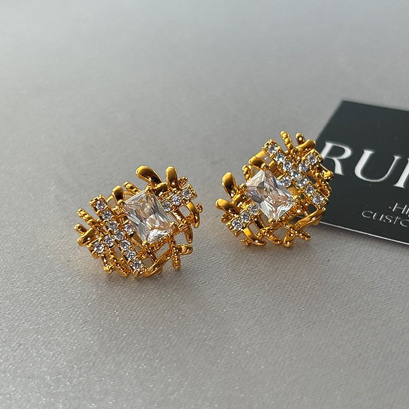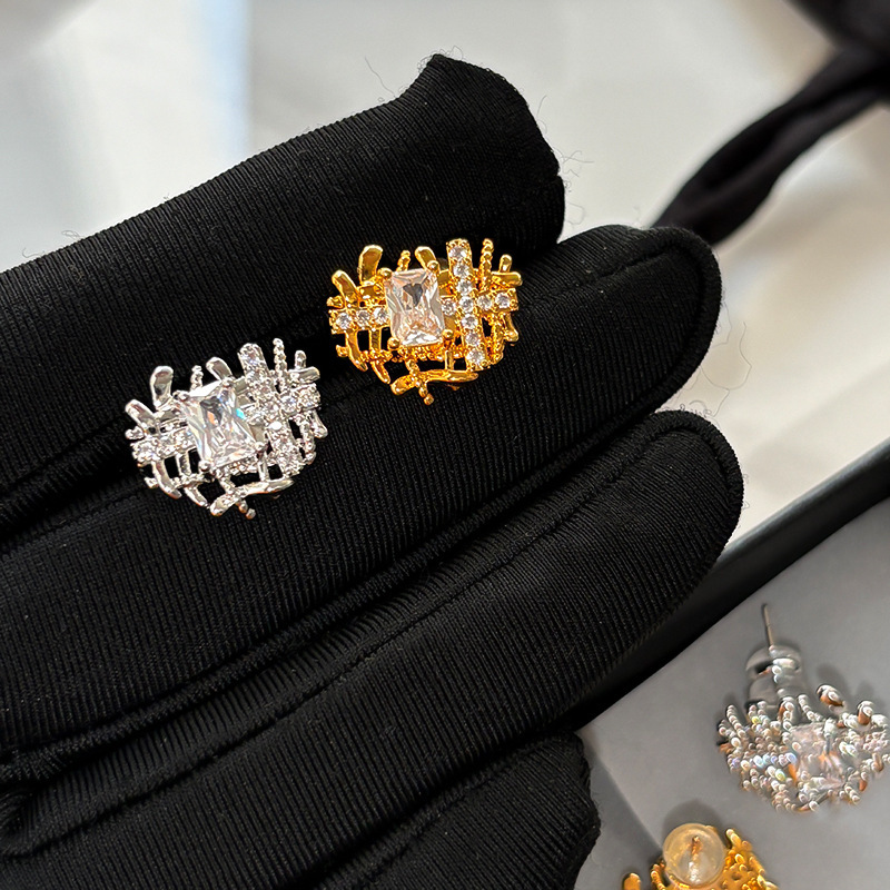 S925纯银针小众高级感锆石耳钉真金加厚电镀独特设计感几何形耳环