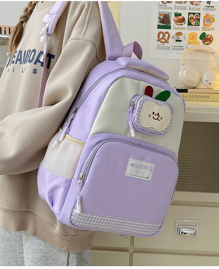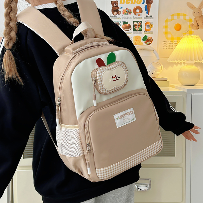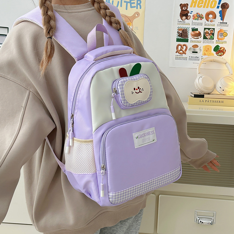 小学一年级书包新款儿童拼接撞色卡通轻便双肩包小学生可爱双肩包