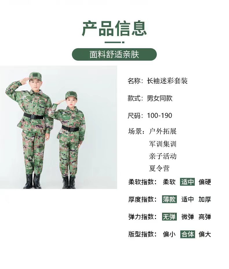 林霞新式迷彩服长袖套装中小学生军训迷彩服夏令营户外迷彩套装