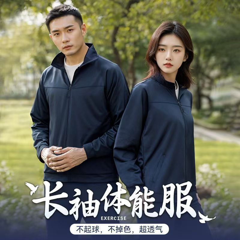 长袖体能服户外跑步训练套装春秋季立领休闲男女同款运动服