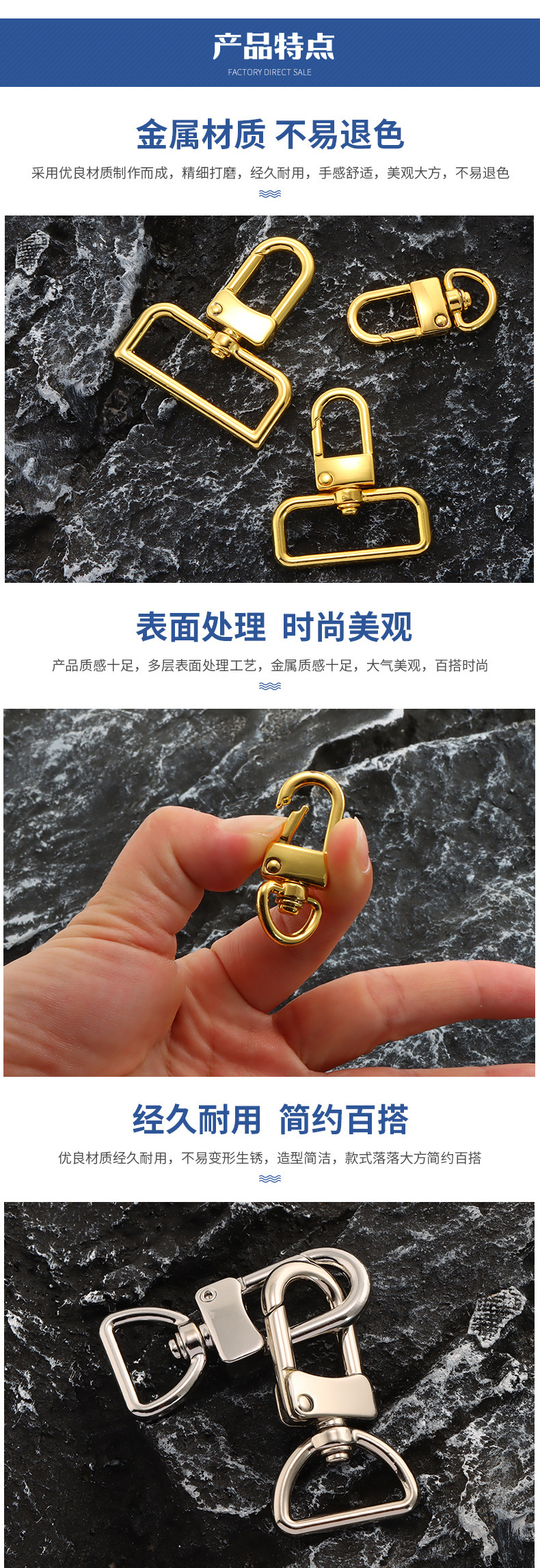 锌合金弹簧扣金色狗扣钩扣装饰链条链子连接扣头箱包五金扣子配件
