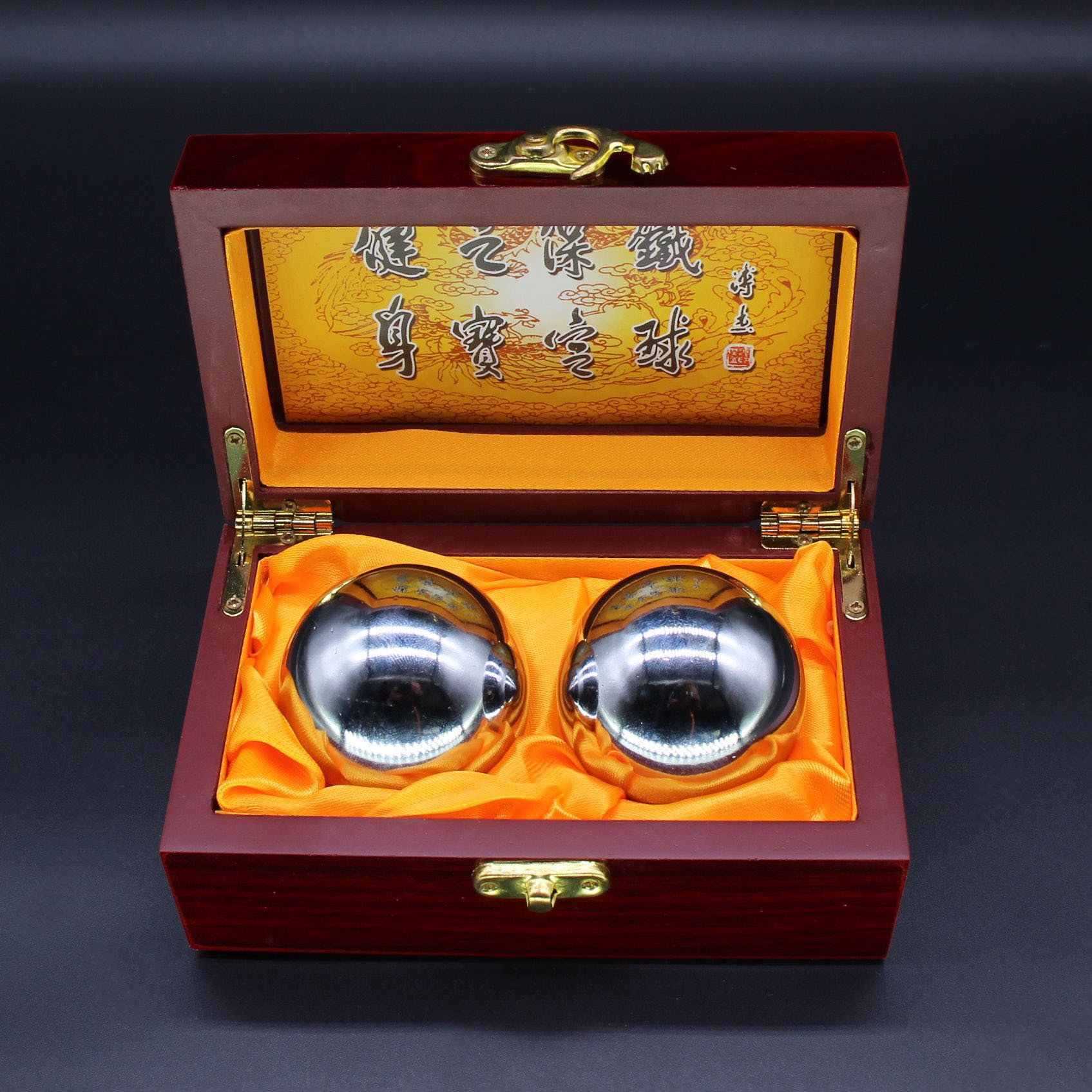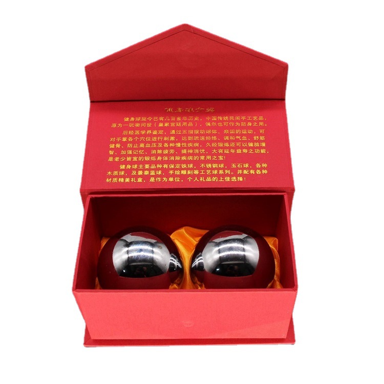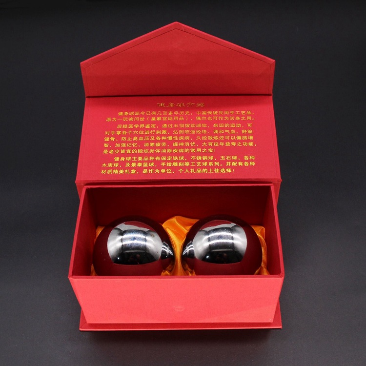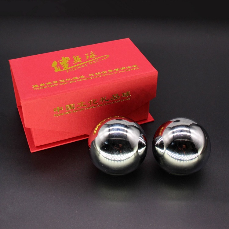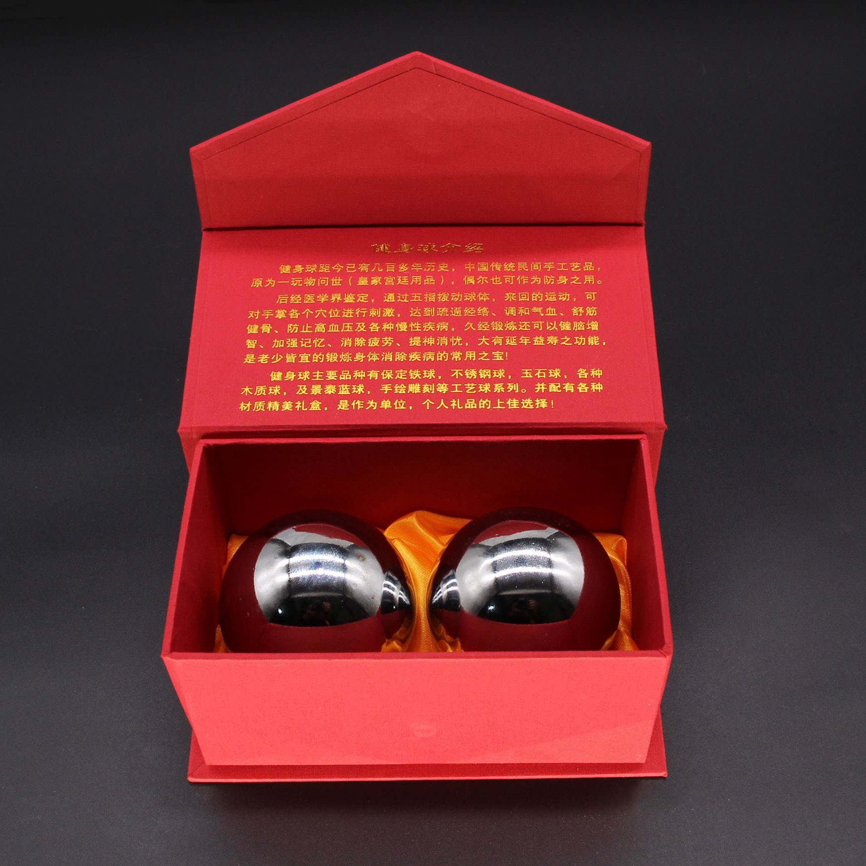 礼盒装保定铁球镀铬实心空心铃音中老年手运动礼品转按摩健身手球