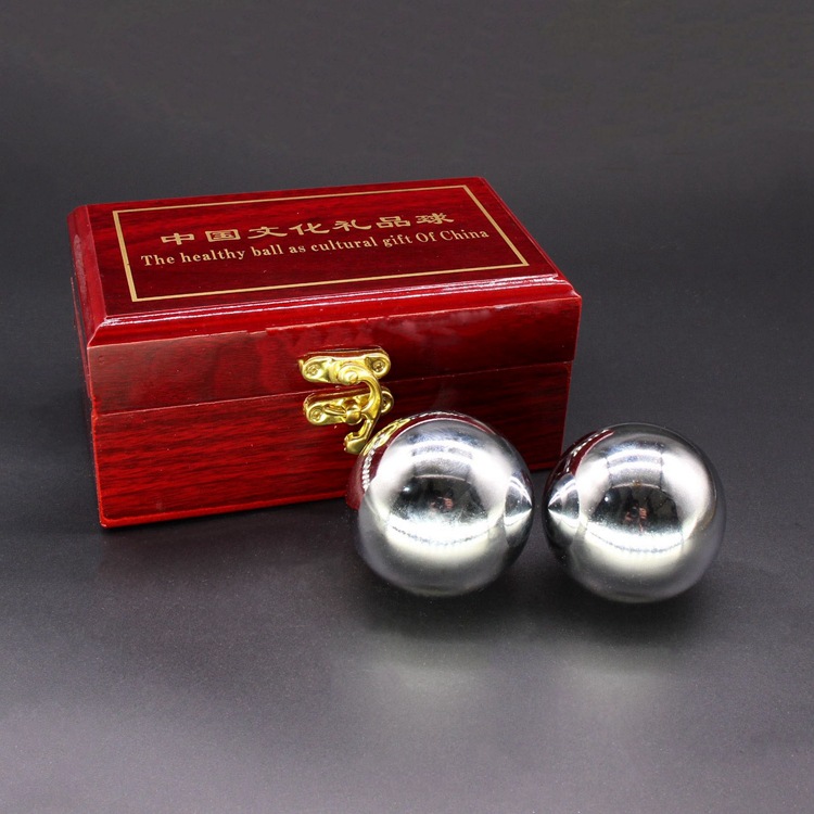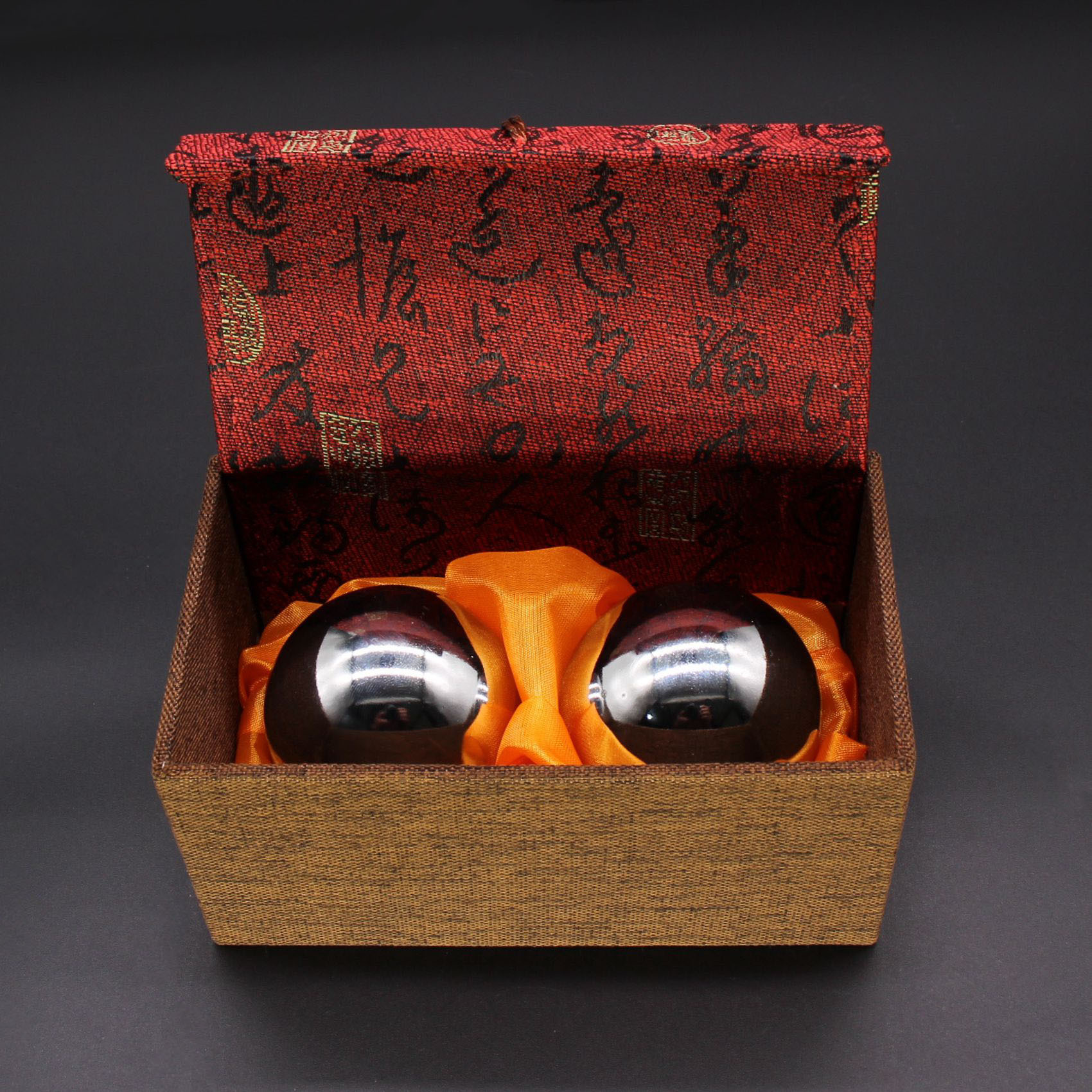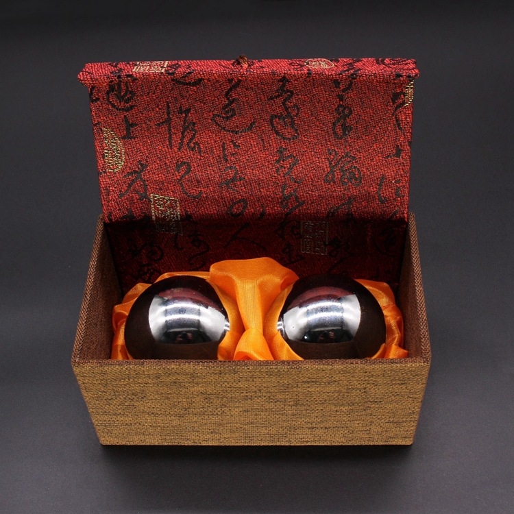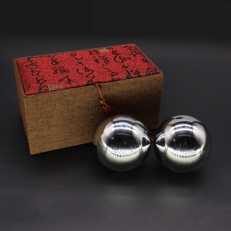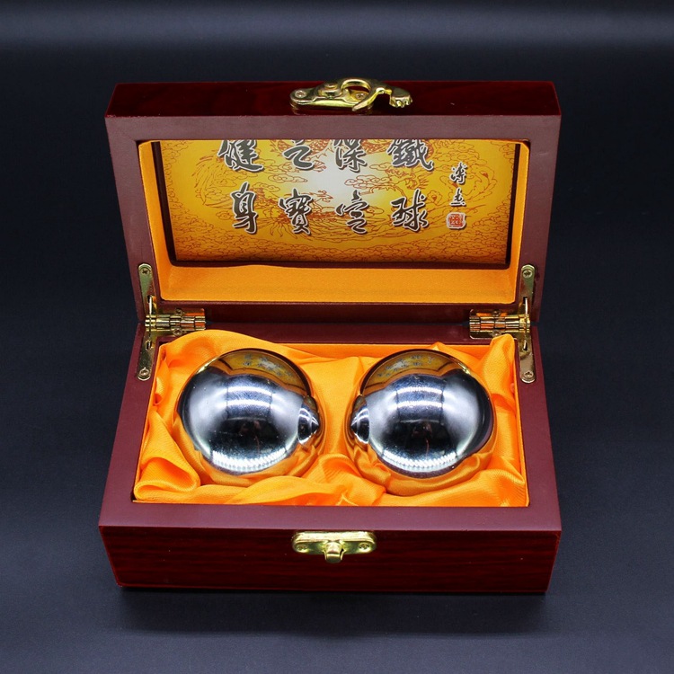 礼盒装保定铁球镀铬实心空心铃音中老年手运动礼品转按摩健身手球