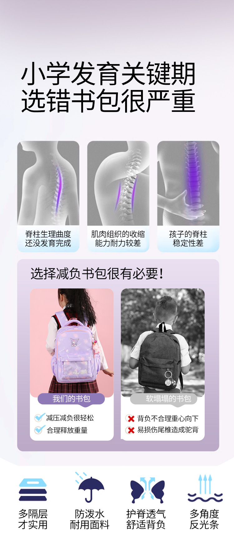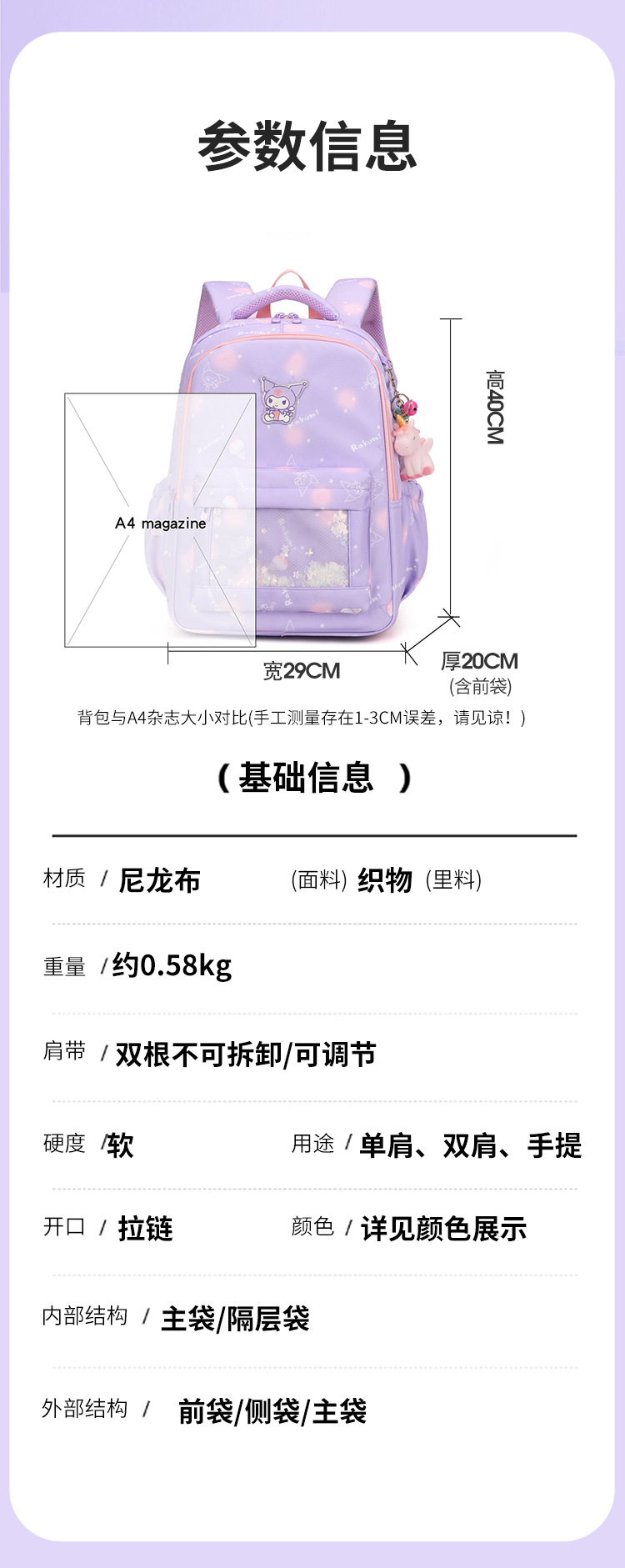 学生书包女孩可爱库洛米轻便儿童双肩背包