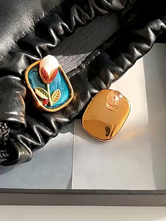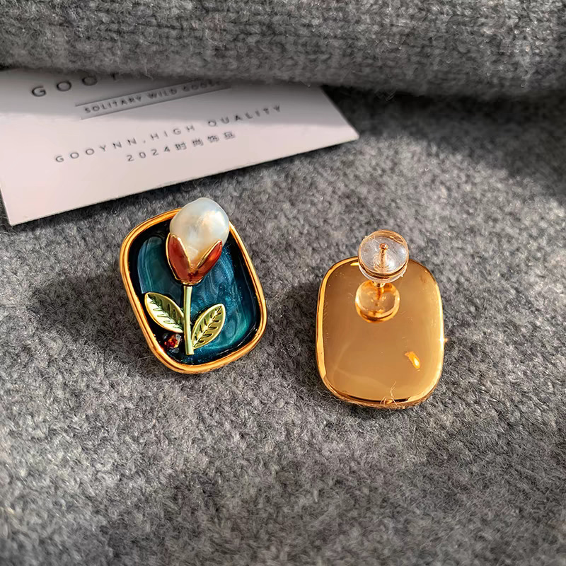 真金电镀巴洛克淡水珍珠耳钉S925银针中古风莫奈花园油画花朵耳环