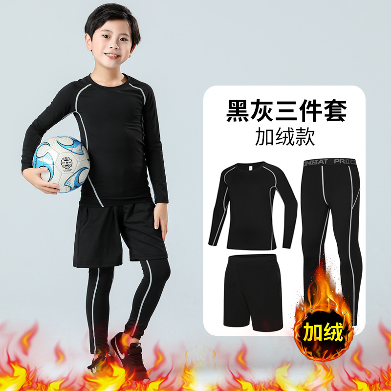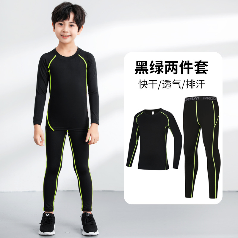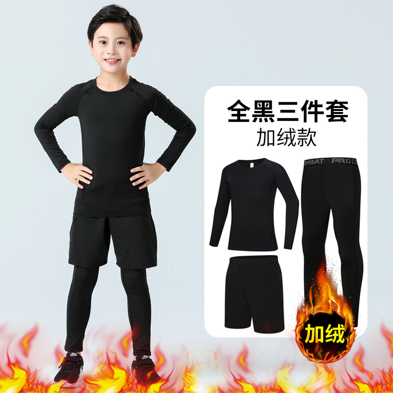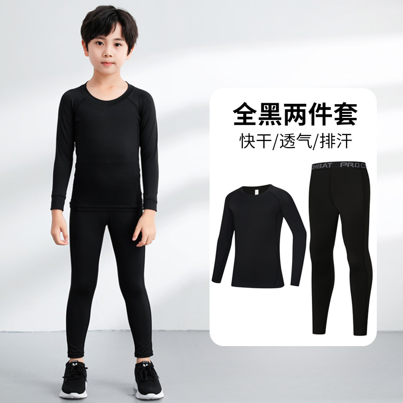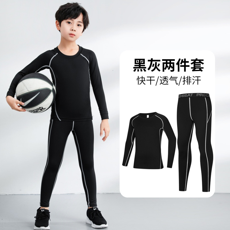 儿童紧身衣训练服男童健身服冬季长袖篮球运动打底速干衣足球上衣