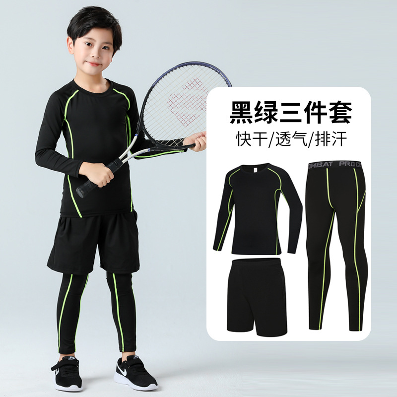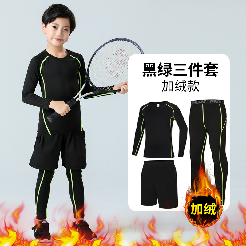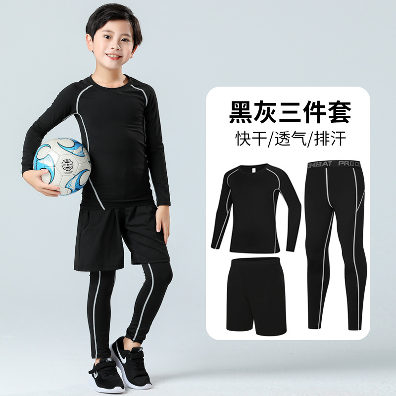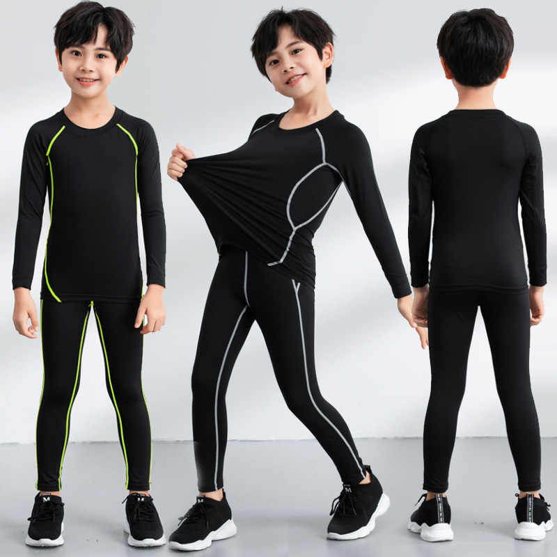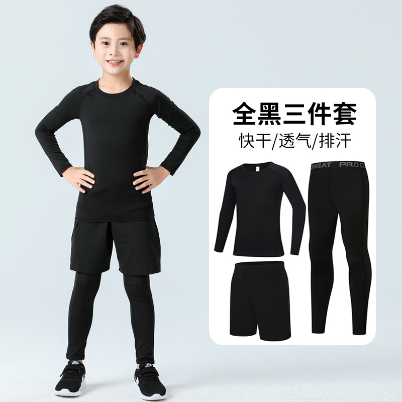 儿童紧身衣训练服男童健身服冬季长袖篮球运动打底速干衣足球上衣