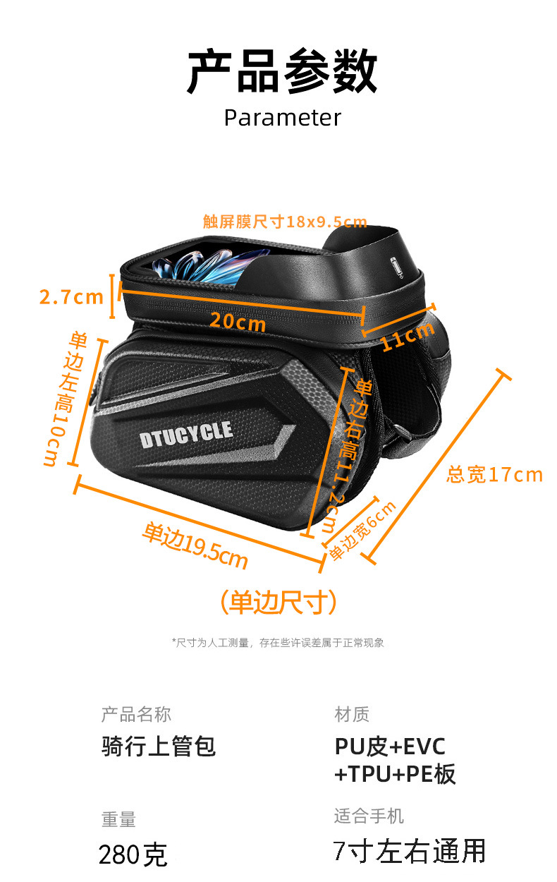 DTUCYCLE新款自行车硬壳双边包前梁山地单车手机触屏包上管包骑行