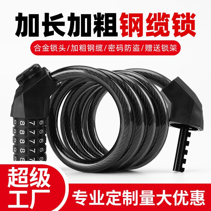 自行车锁骑行装备五位密码透明加粗钢缆防水防盗山地自行车密码锁