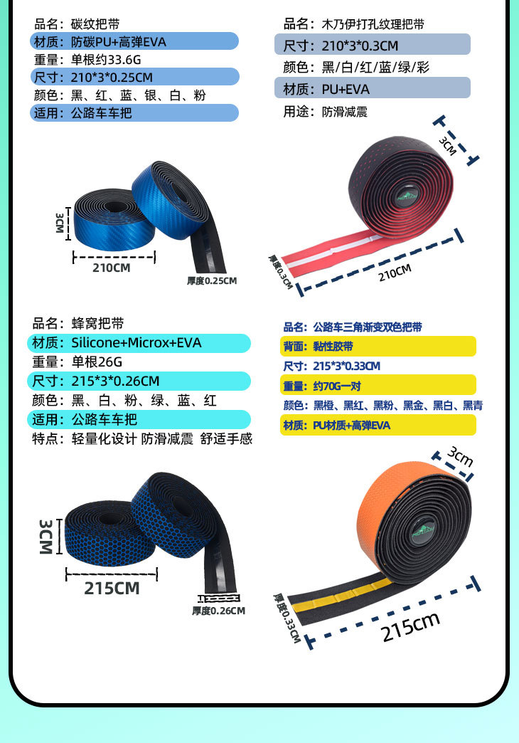 自行车弯把把带公路车把带木乃伊硅胶碳纤纹防滑吸汗绑带骑行配件